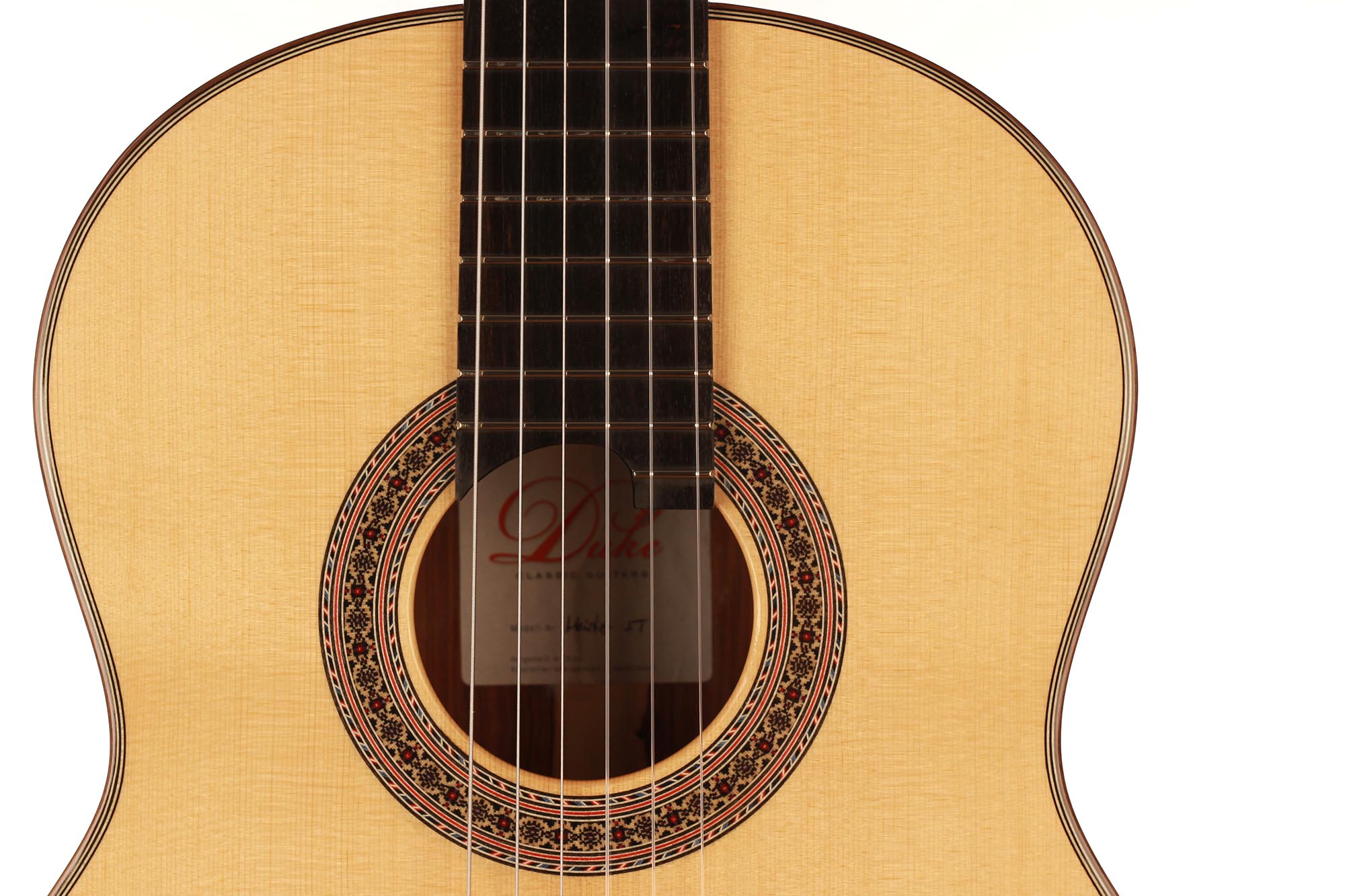 The Duke© Meister ST is made of solid wood and combines CITES-free tonewoods with an innovative thermal spruce top. The body is made of Santos rosewood and does, therefore, correspond to the regulation of the Washington Convention on International Trade in Endangered Species of Wild Fauna and Flora, which entered into force on 02.01.2017. This means that the owner does not need to prove the origin of the woods, which would be required, for example, when traveling to non-EU countries such as Switzerland. In addition, Santos rosewood is an excellent tonewood with an exciting wood structure that fits brilliantly into the Duke© Meister line.