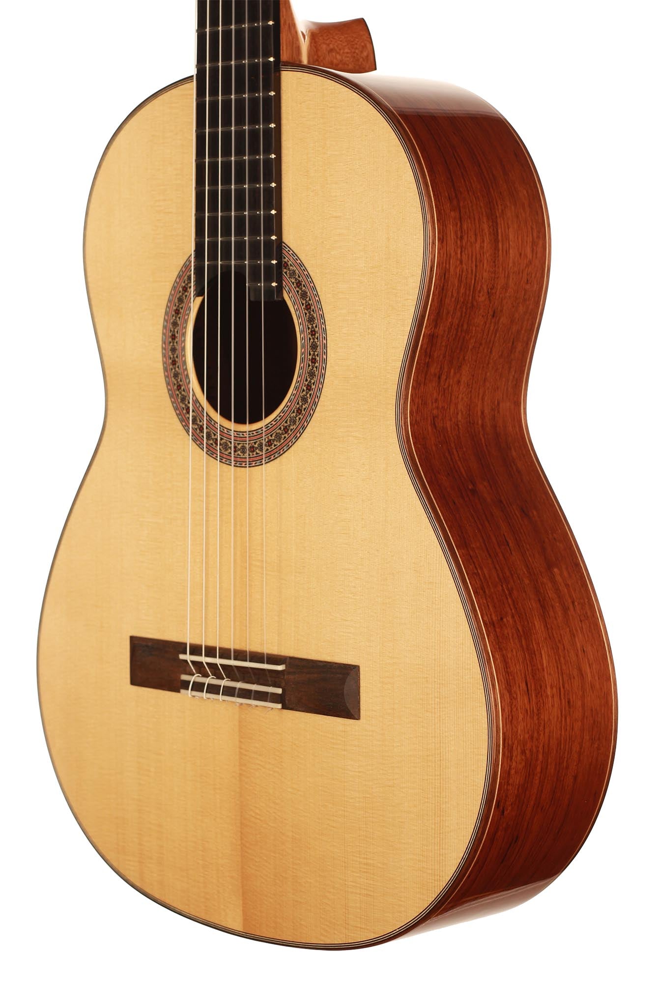 Die klassische Gitarre mit ihren weichen Nylonsaiten und ihrem charakteristischen Timbre ist zum Symbol der Kammermusik, der spanischen Tradition und des Konzertrepertoires geworden. Ihre moderne Form prägte Antonio de Torres im 19. Jahrhundert, indem er den Standard für Korpus, Fächerbeleistung und die 65-Zentimeter-Mensur setzte, die bis heute verwendet werden. Instrumente dieser Kategorie eröffnen eine reiche Palette von den feinen romantischen Miniaturen Tárregas bis zu den majestätischen Konzerten Rodrigos. Hier finden Sie Gitarren, die historische Kontinuität bewahren und zugleich zu neuen Interpretationen anregen.Alle Gitarren der Kollektion ansehen -