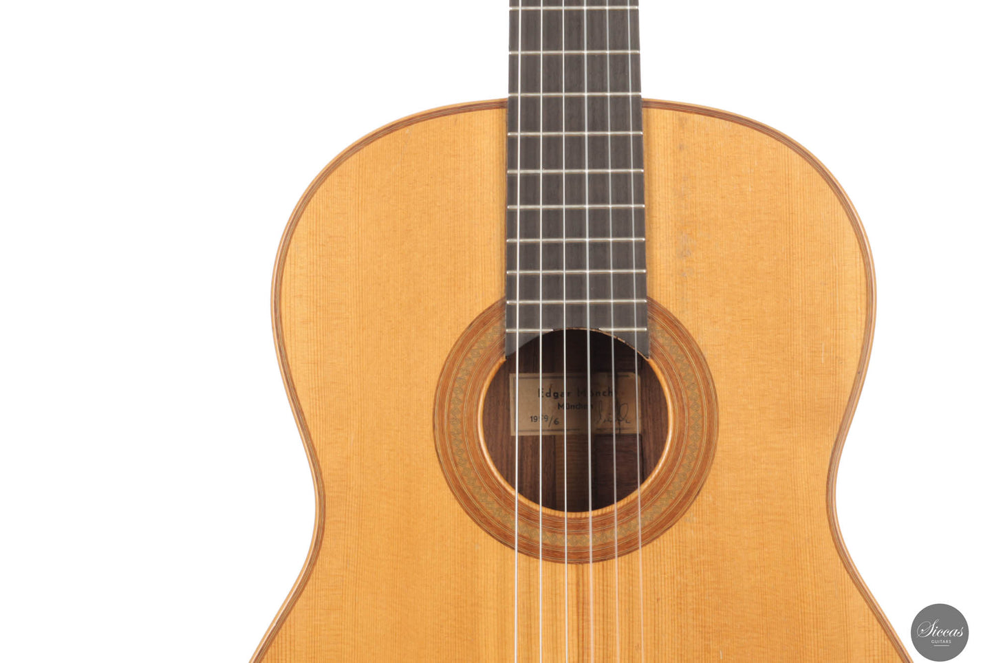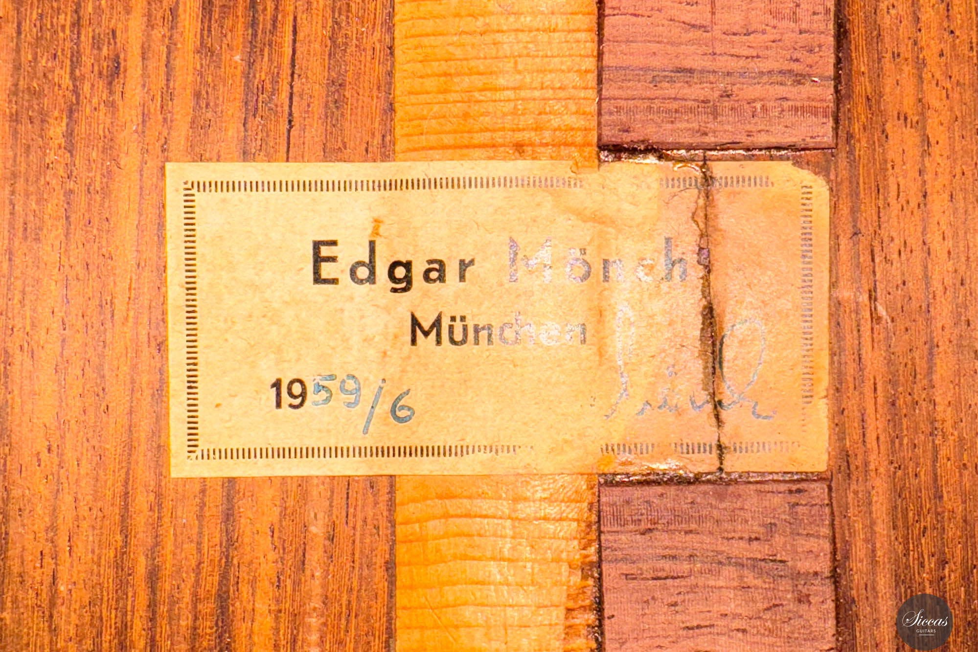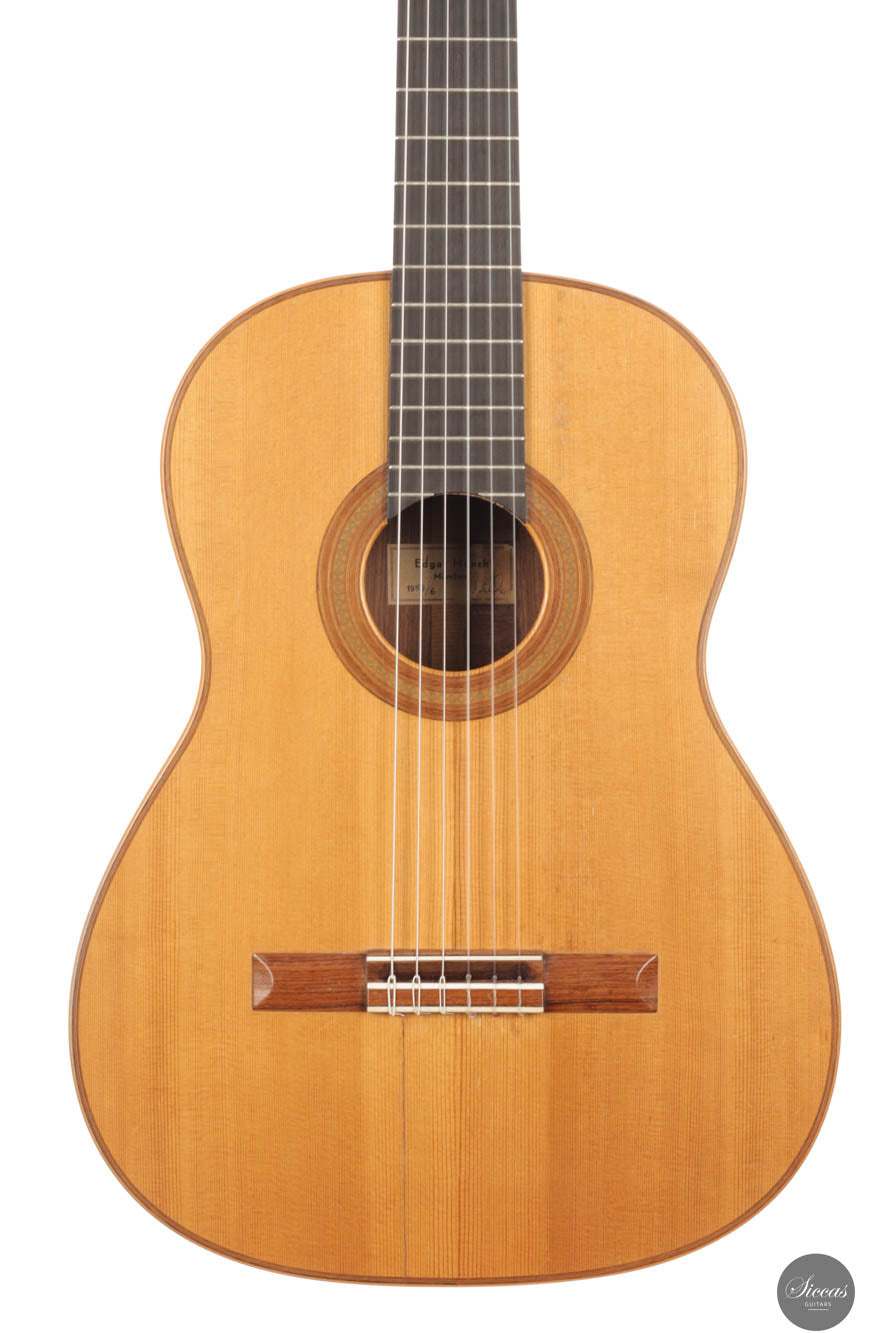 Der Gitarrenbauer Edgar Mönch, geboren am 29. Oktober 1907 in Leipzig entstammte einer Musikerfamilie. Die russische Mutter war Pianistin, der Vater Geiger und Kapellmeister. Seine Kindheit verbrachte Edgar Mönch in Russland, besuchte dort die Schule und studierte später in Danzig an der Technischen Hochschule Maschinenbau. Als technischer Dolmetscher arbeitete er bei den Skodawerken in Prag. Dort studierte er auch Geige am Konservatorium. Zum Gitarrenbau kam er als deutscher Kriegsgefangener in einem englischen POW Camp. Dort traf er einen Breslauer Geigenbauer, der ihn zeigte, wie man eine Gitarre baut. 1947 aus der Kriegsgefangenschaft entlassen, begann Edgar Mönch als Gitarrenbauer zu arbeiten. Er vervollkommnete sein Wissen im Gitarrenbau durch Studien in Spanien bei dem befreundeten Gitarrenbauer Marcelo Barbero in Madrid. Edgar Mönchs Geschicklichkeit und sein Hang zur Perfektion verschafften ihm eine weltweite Anerkennung. Er arbeitete sehr genau und selbstkritisch wie selten ein anderer Deutscher Gitarrenbauer zuvor. Sein Wissen gab er bereitwillig an seine Schüler weiter und aus seiner Werkstatt ensprangen weltweit bekannte Gitarrenbauer wie John Larrivee, Kolya Panhuyzen, Ken Bowen und Joseph Kurek. Zwei Monate nach dem Tod seines Sohnes ist Edgar Mönch am 16. Februar 1977 gestorben. Segovia, Julian Bream, John Williams, Vicente Gomez und viele andere Gitarristen auf der ganzen Welt spielten und spielen eine Mönch-Gitarre.