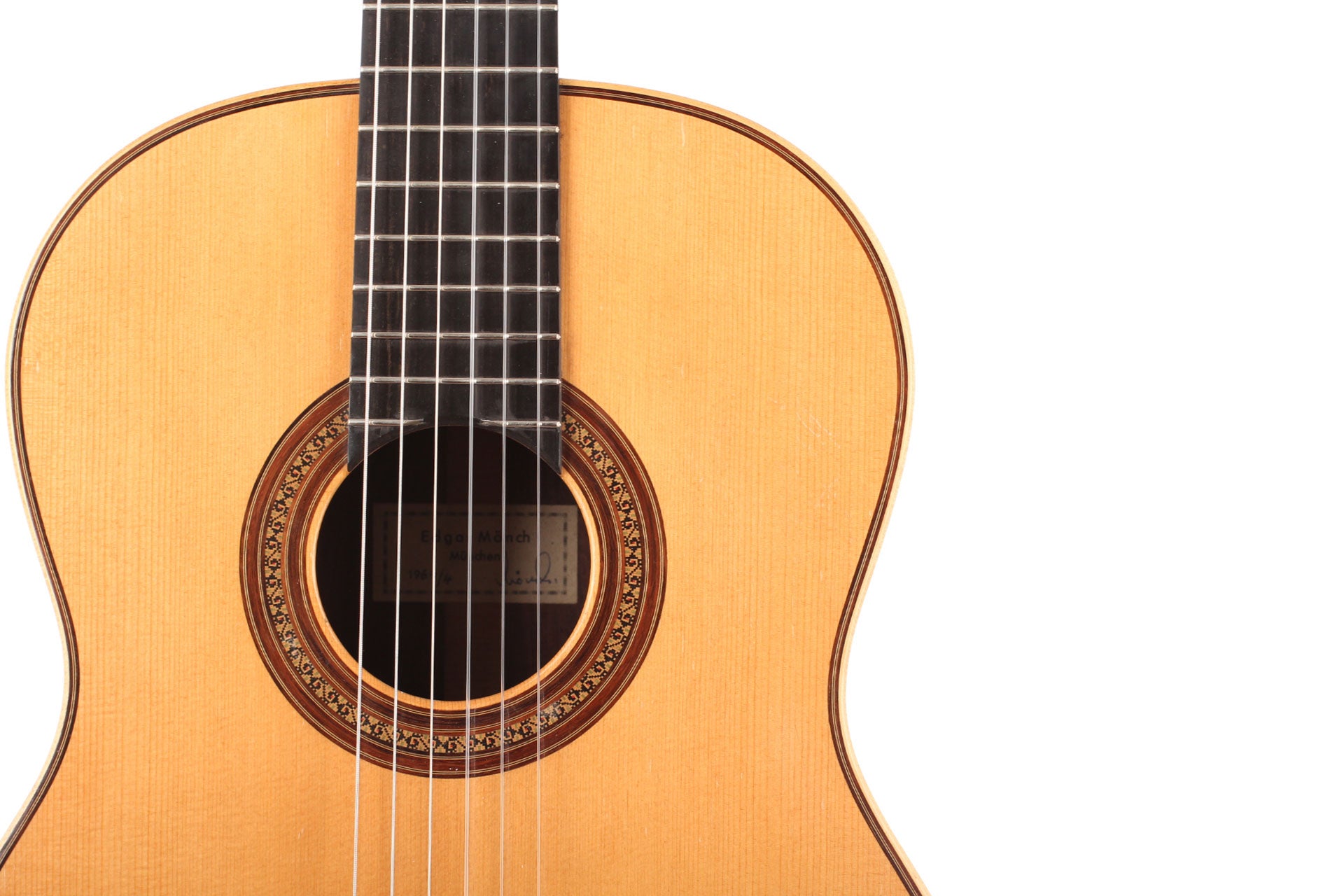 This guitar was built in 1964 in Munich has a very fine spruce top. The back and sides are made of Indian rosewood. The tuning machines are made by Landstorfer. The guitar has nor cracks or repairs and is in remarkable condition. A hardshell case is included.