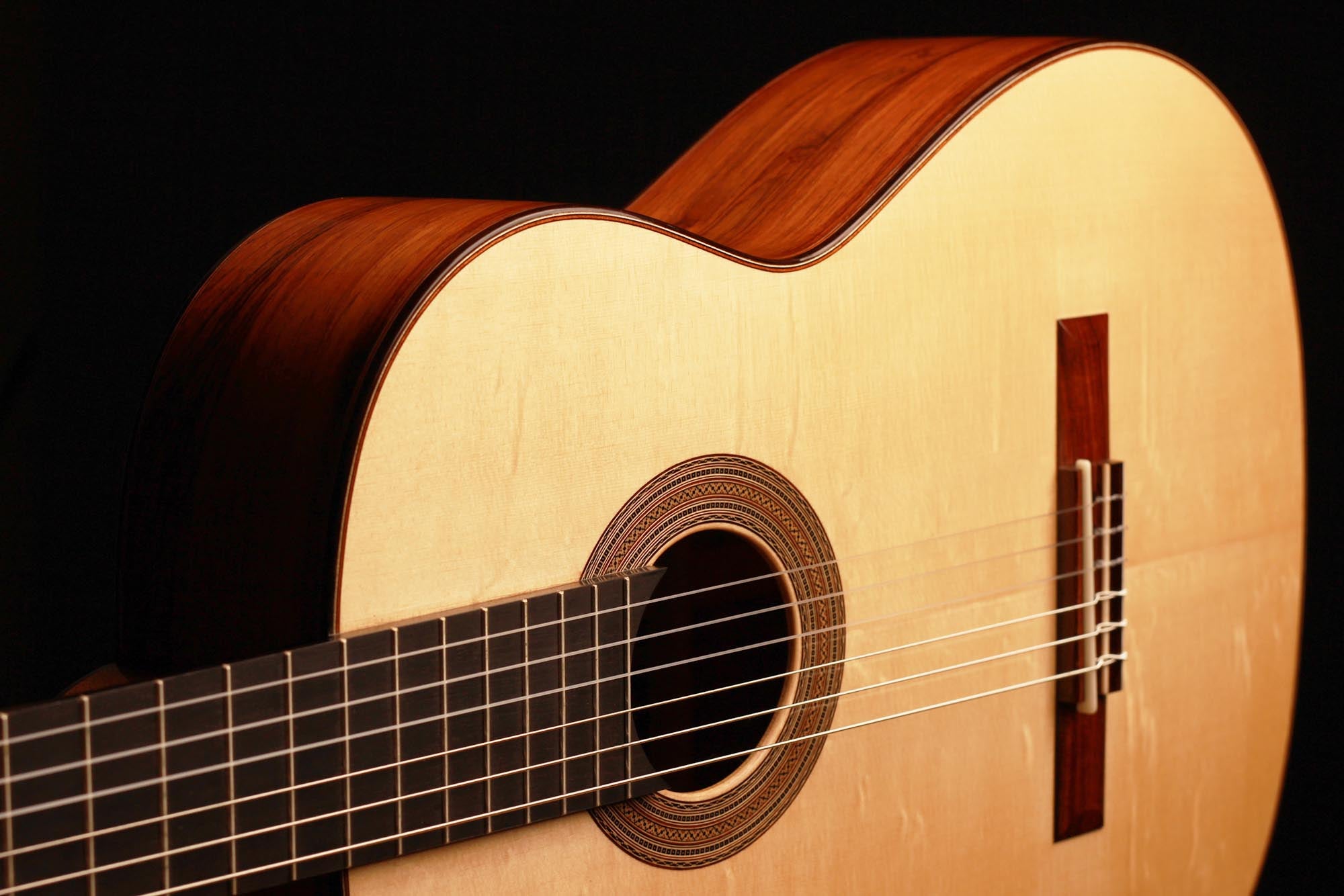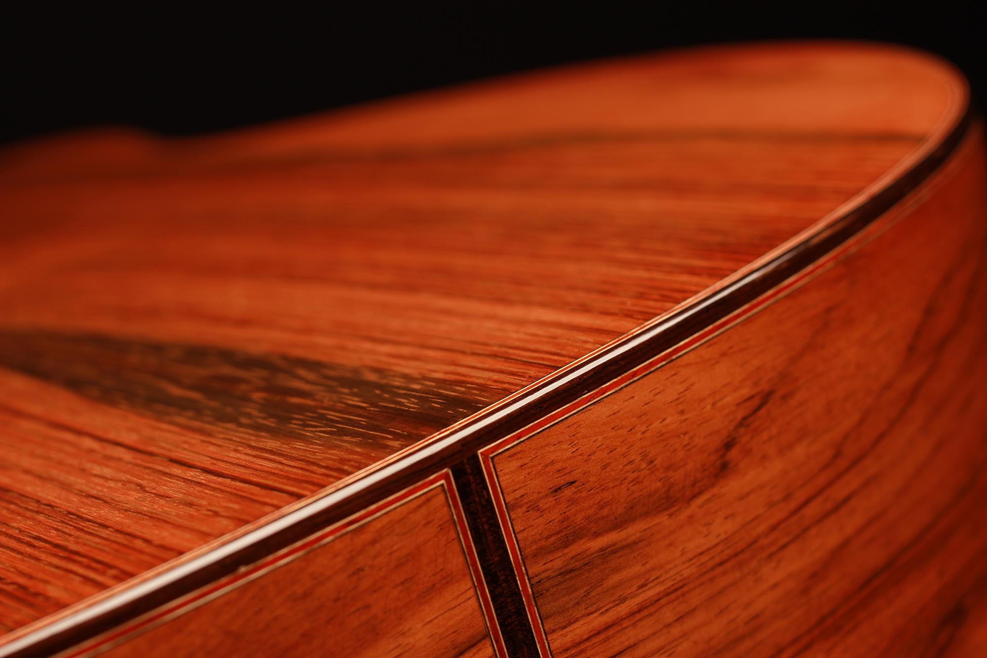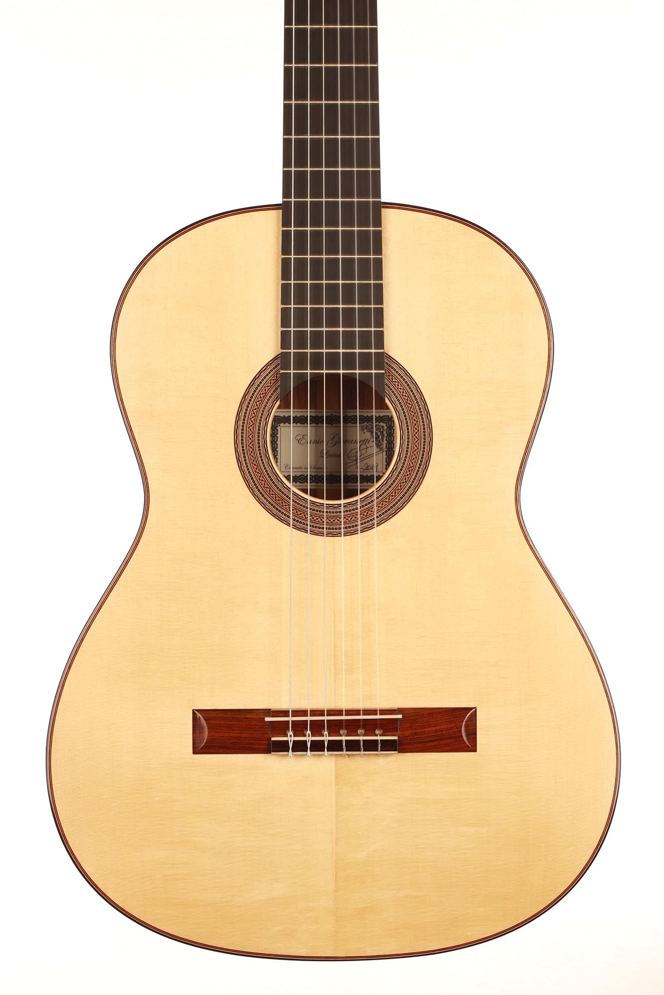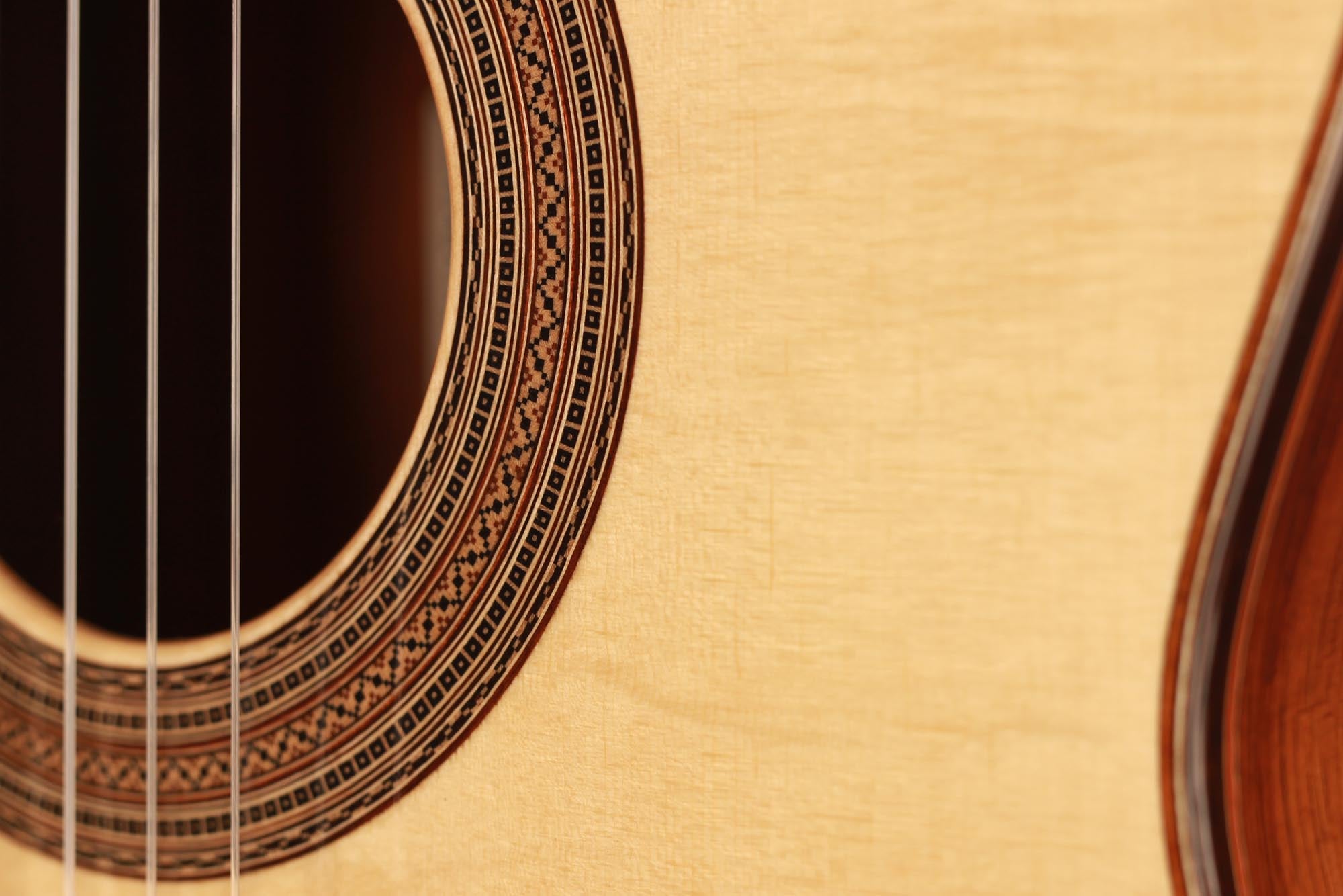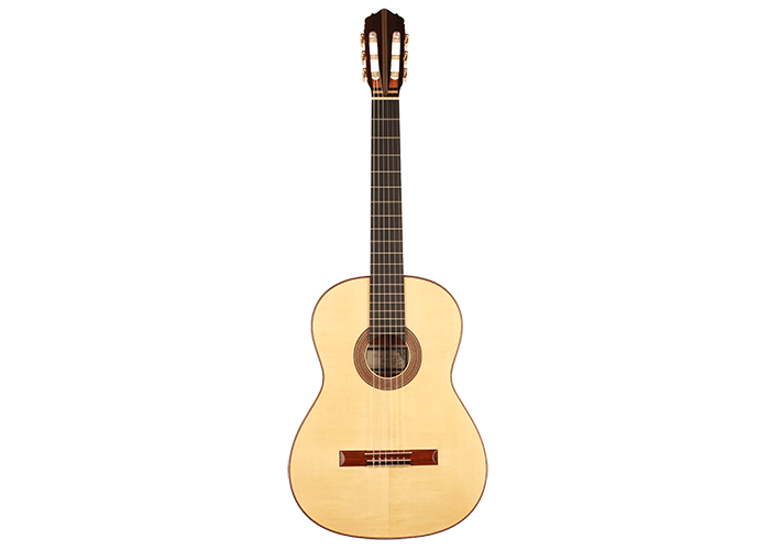 Diese hervorragende Gitarre ist ein Sonderauftrag von uns, der eine sehr exklusive Auswahl an Holz beinhaltet: CITES-zertifizierter brasilianischer Palisanderboden und -seiten sowie eine wunderschöne Decke aus Haselfichte von höchster Qualität. Das Instrument besitzt eine wunderbare Eleganz in Ton und Optik sowie eine berührende Klangklarheit. Durch die komplexe Klangfarben, das lange Sustain und die beeindruckende Homogenität der Register eignet sich diese Gitarre für ein breites Spektrum an Repertoires.