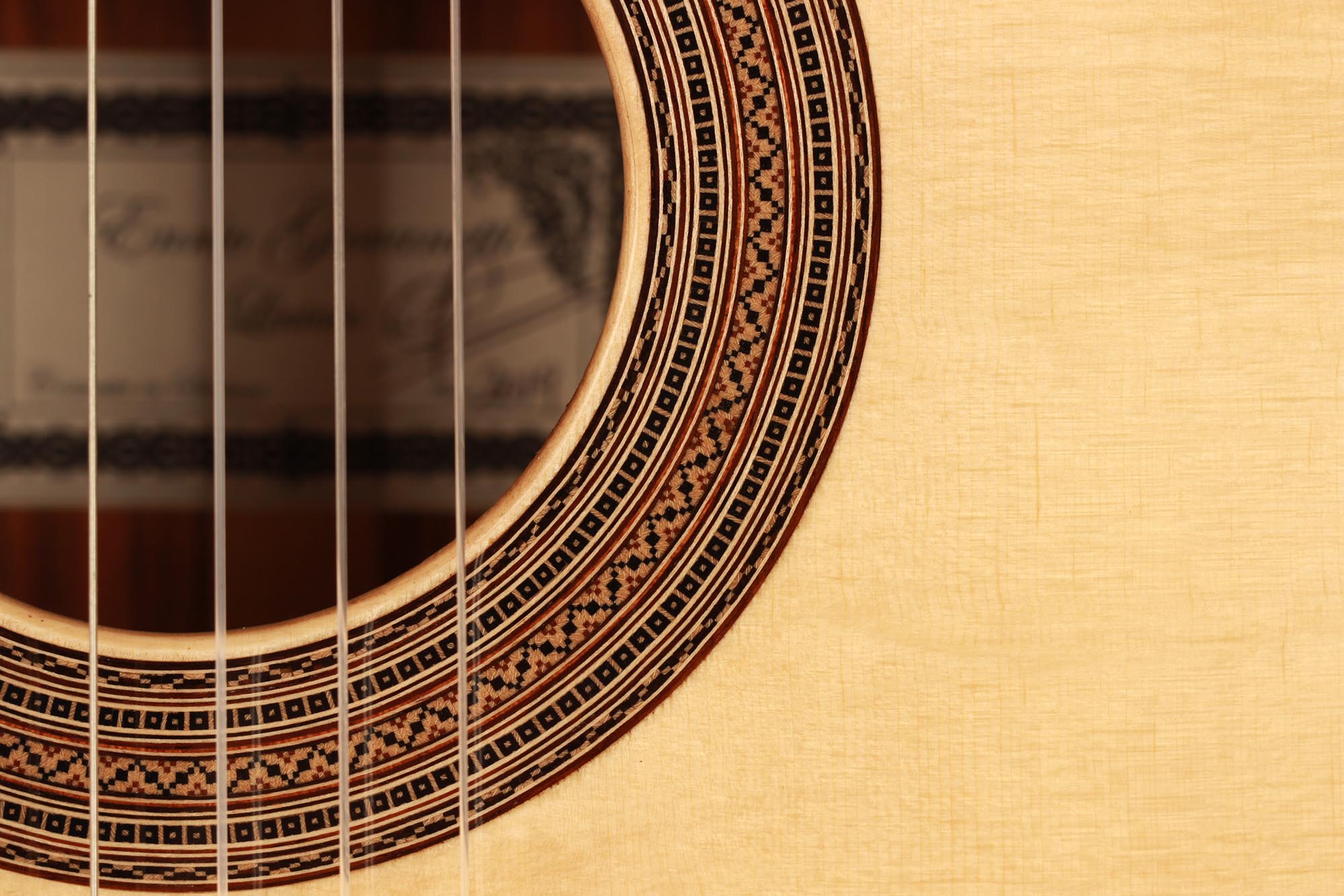 Ennio Giovanetti baut seit 1998 Gitarren in seiner Werkstatt in Sariano di Gropparello, nahe Piacenza (Italien). Er studierte Gitarrenbau in Mailand bei Enrico Bottelli, wo er die Möglichkeit hatte, viele Gitarren von Antonio de Torres, Simplicio, Garcia und vielen anderen kennenzulernen. Seine Gitarren sind nach traditioneller Art gebaut, aber durch ihre eigenen Elemente gut erkennbar. So wurde beispielsweise hinter dem Ankerblock ein Teil oder die Brücke ausgehoben, um den Winkel der Saiten zu optimieren und damit Vibrationen zu unterstützen.