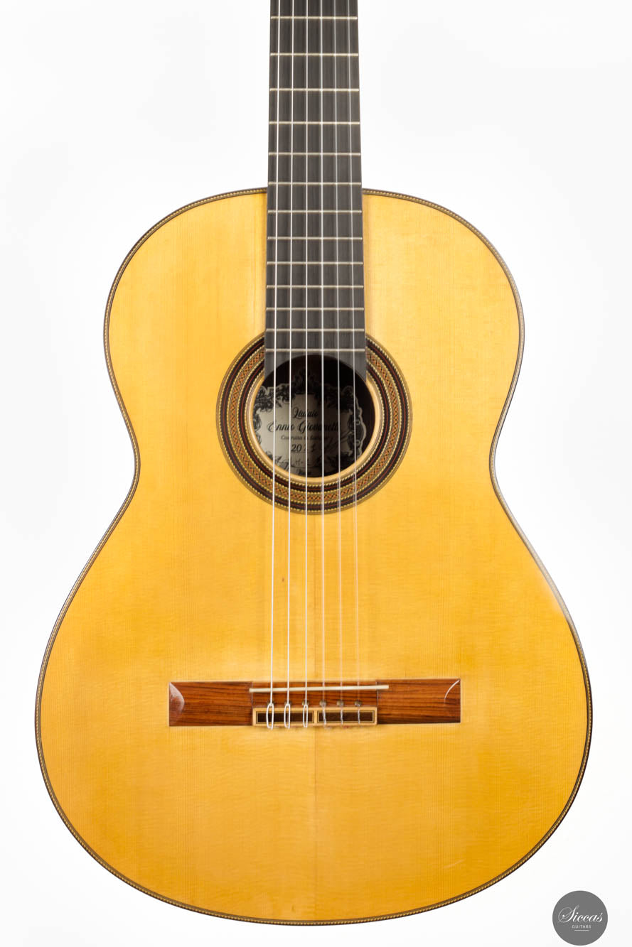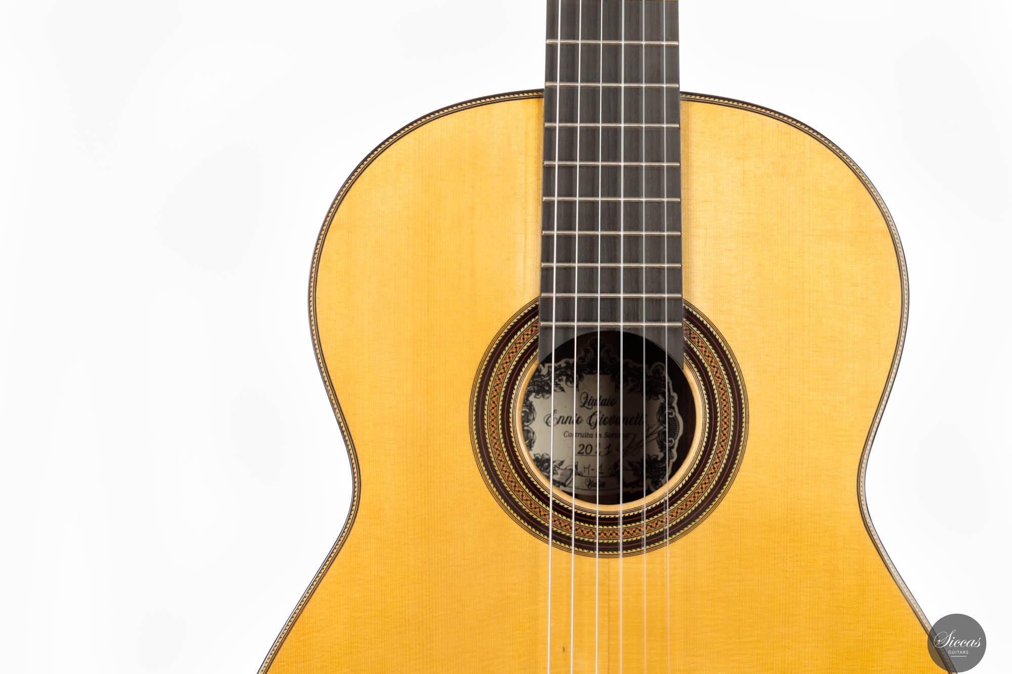 Ennio Giovanetti baut seit 1998 Gitarren in seiner Werkstatt in Sariano di Gropparello, nahe Piacenza (Italien). Er studierte Gitarrenbau in Mailand bei Enrico Bottelli, wo er die Möglichkeit hatte, viele Gitarren von Antonio de Torres, Simplicio, Garcia und vielen anderen kennenzulernen. Seine Gitarren sind nach traditioneller Art gebaut, aber durch eigene Elemente ergänzt. So wurde beispielsweise hinter dem Knüpfblock ein Teil des Steges freigelegt, um den Winkel der Saiten zu optimieren und damit Schwingungen zu fördern.