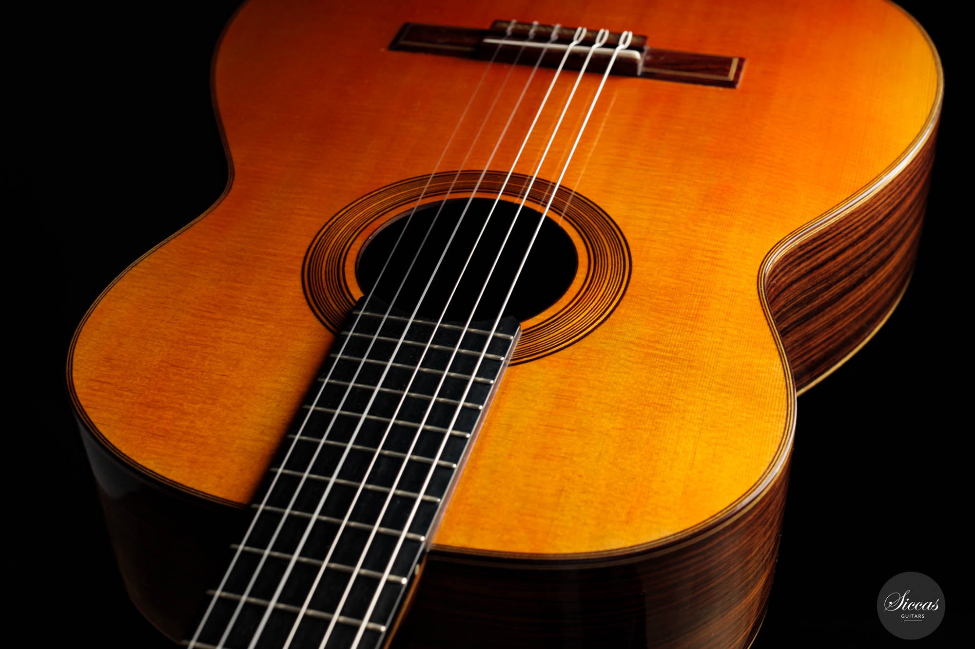 Die klassische Gitarre mit ihren weichen Nylonsaiten und ihrem charakteristischen Timbre ist zum Symbol der Kammermusik, der spanischen Tradition und des Konzertrepertoires geworden. Ihre moderne Form prägte Antonio de Torres im 19. Jahrhundert, indem er den Standard für Korpus, Fächerbeleistung und die 65-Zentimeter-Mensur setzte, die bis heute verwendet werden. Instrumente dieser Kategorie eröffnen eine reiche Palette von den feinen romantischen Miniaturen Tárregas bis zu den majestätischen Konzerten Rodrigos. Hier finden Sie Gitarren, die historische Kontinuität bewahren und zugleich zu neuen Interpretationen anregen.