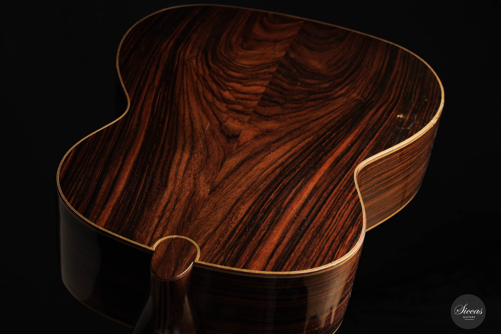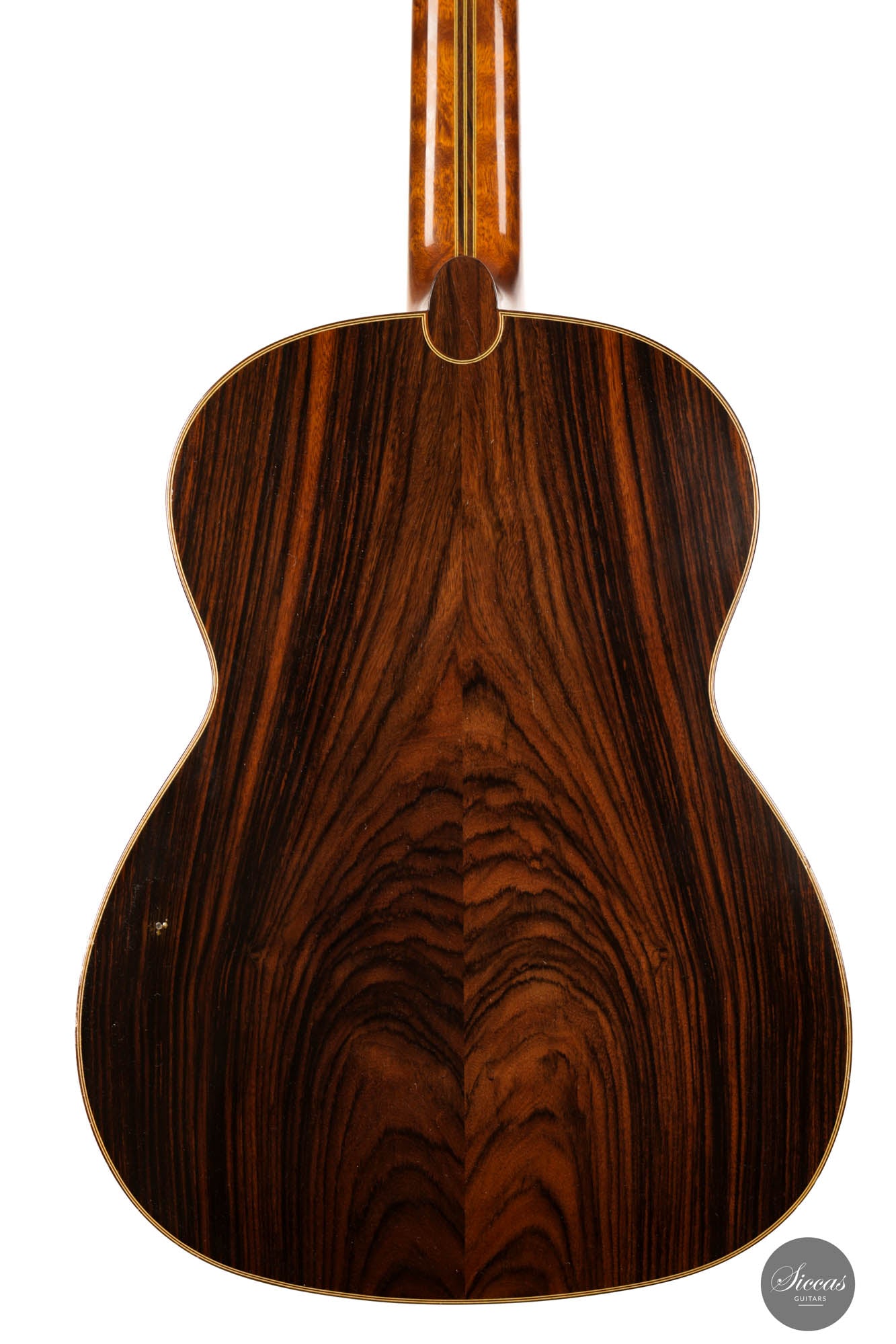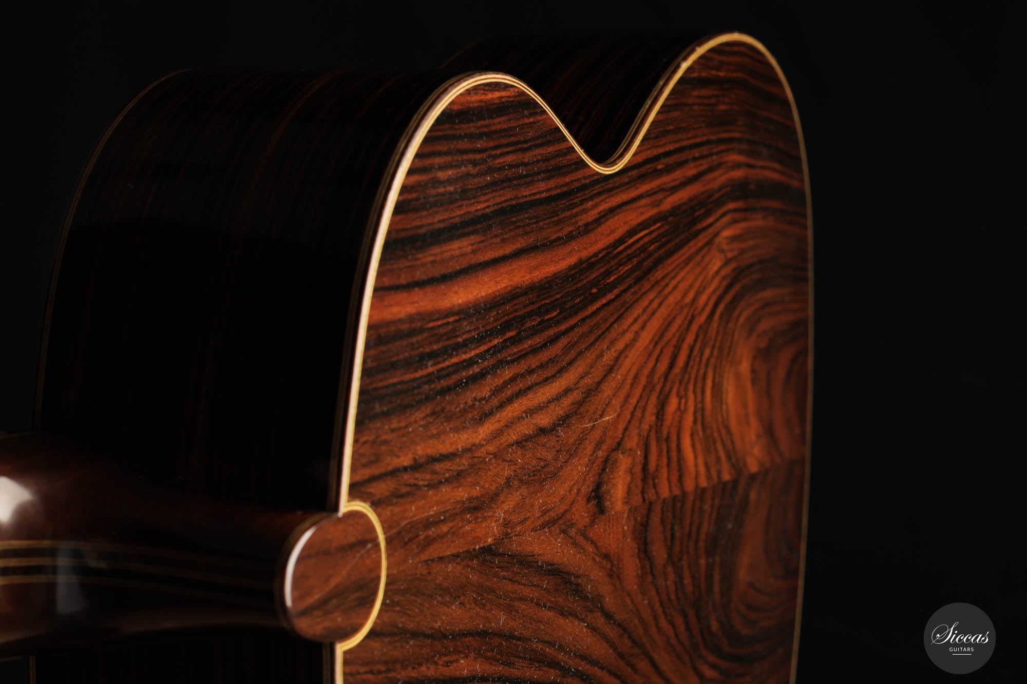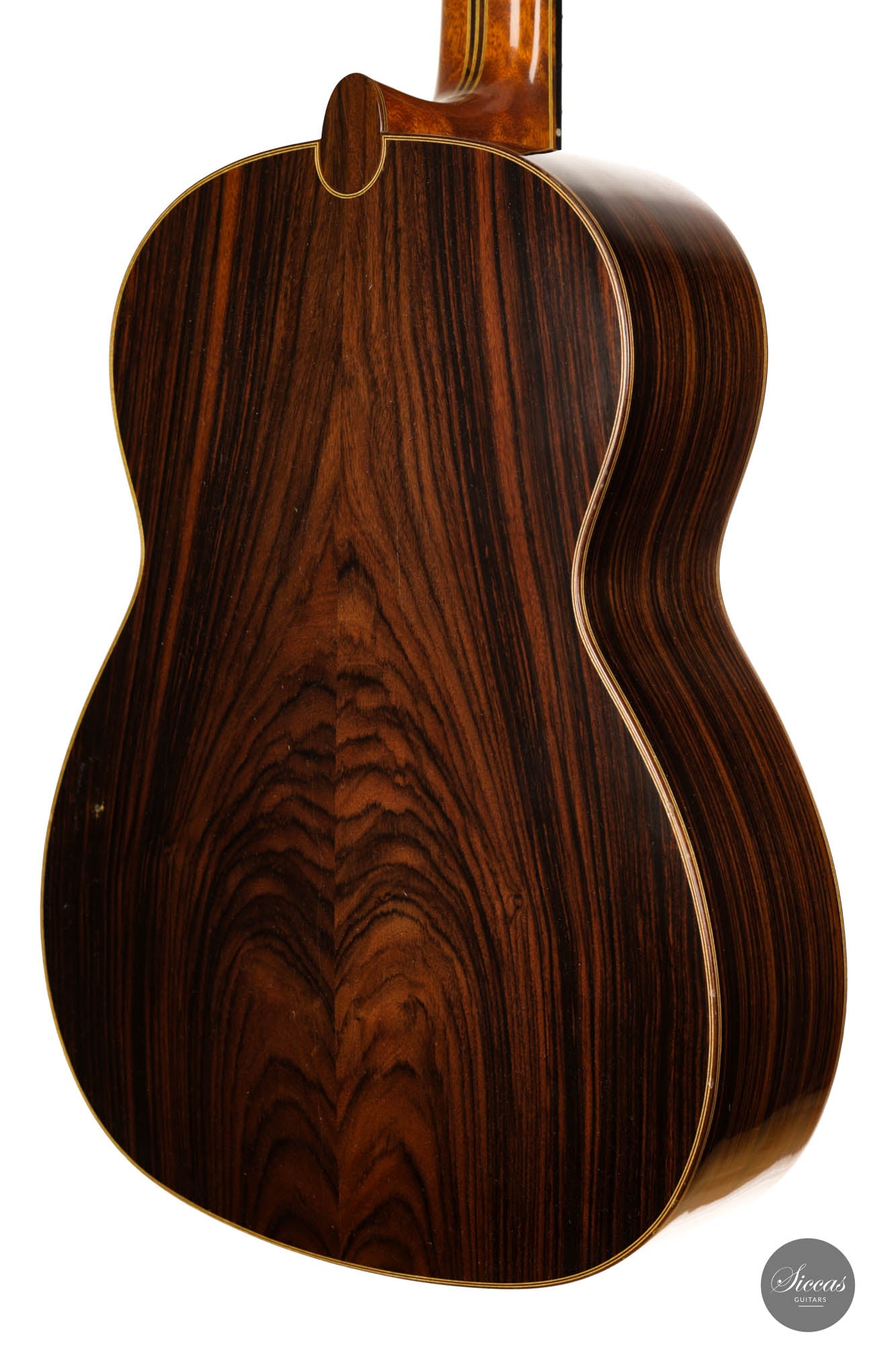 While the guitar boasts an exquisite design and outstanding build quality, it also tells a life story. Minor playing wears are visible on the soundboard, giving it character and authenticity. The Indian rosewood back reveals three superficial cracks, which are strictly surface level and remain stable, bearing witness to the guitar's journey through time.