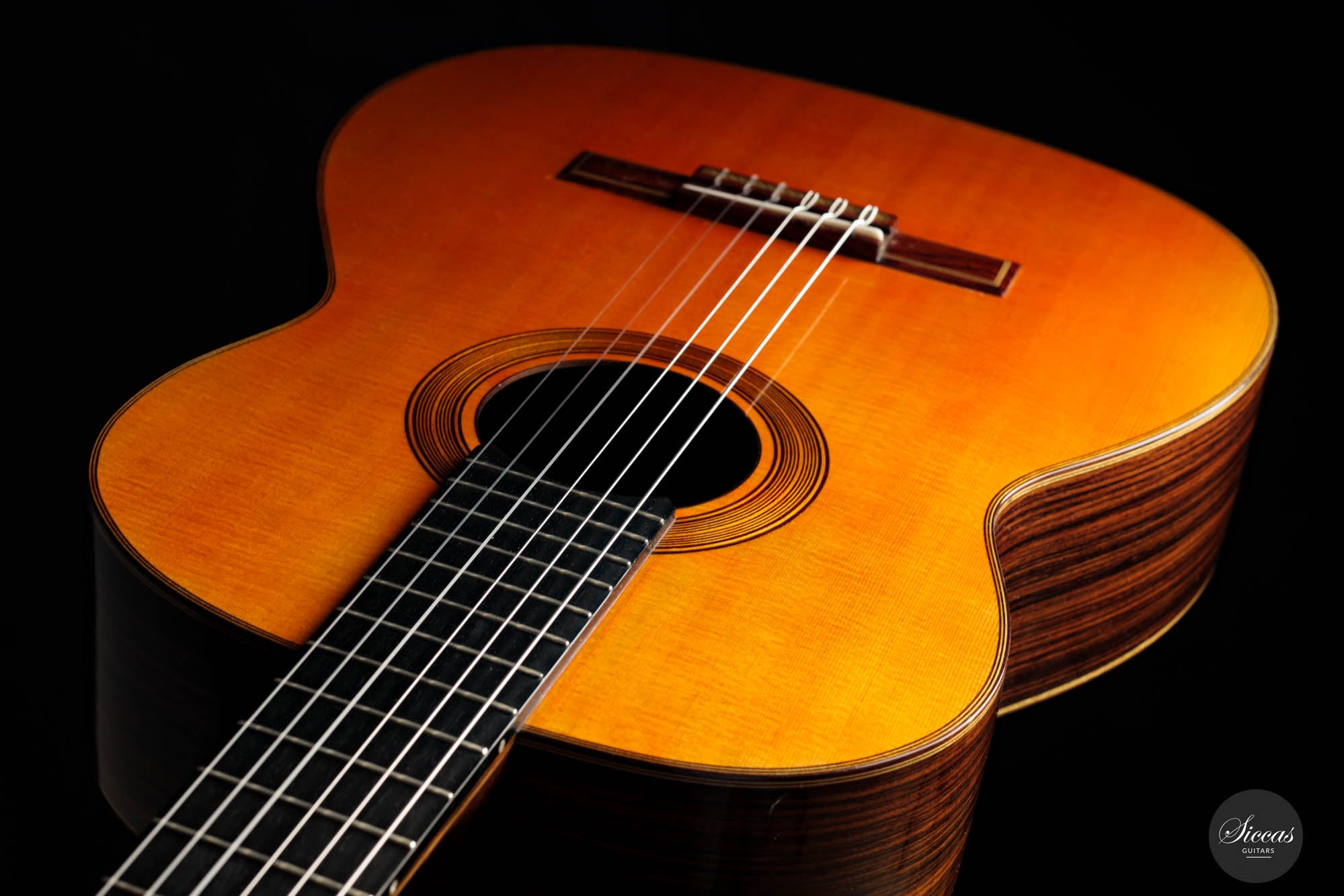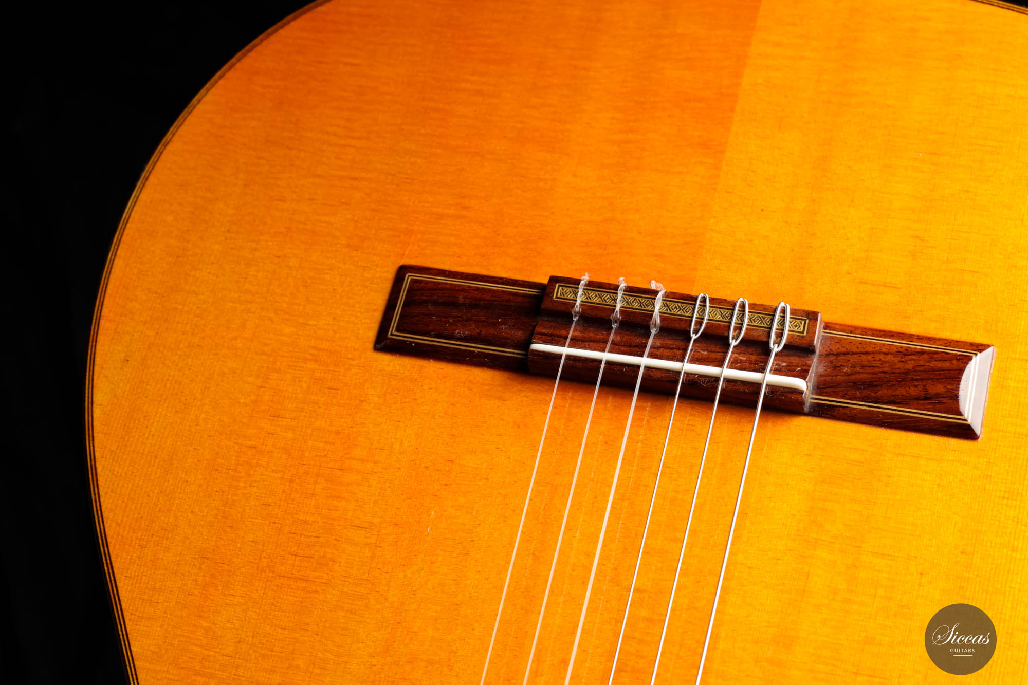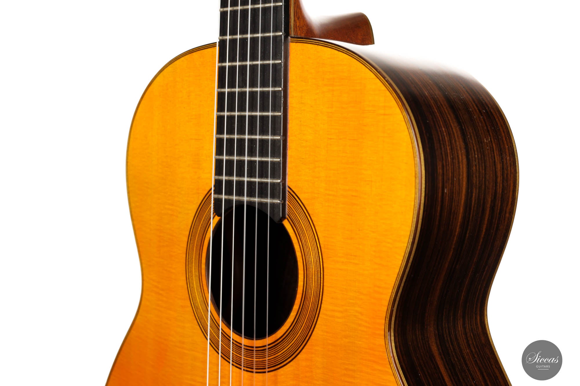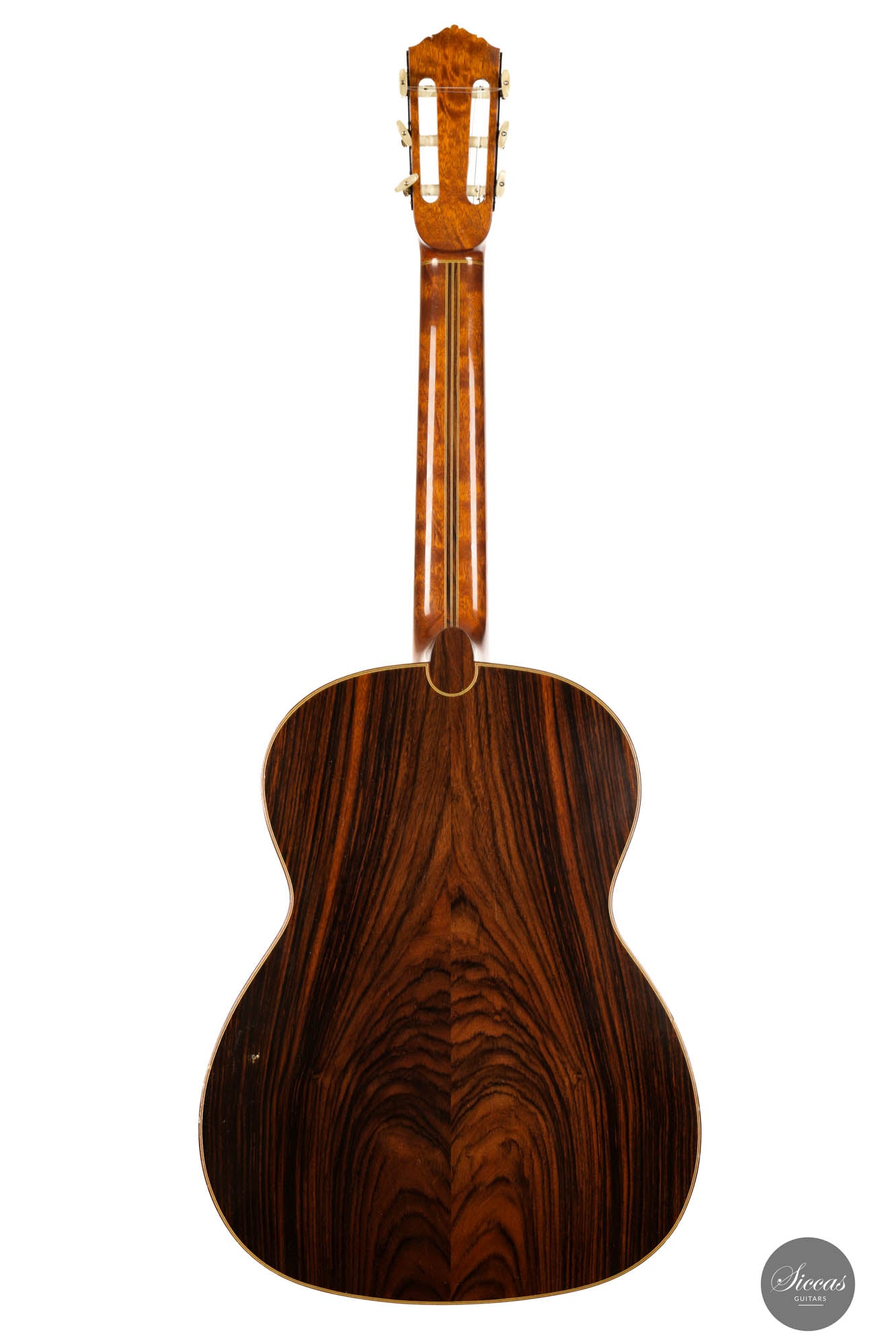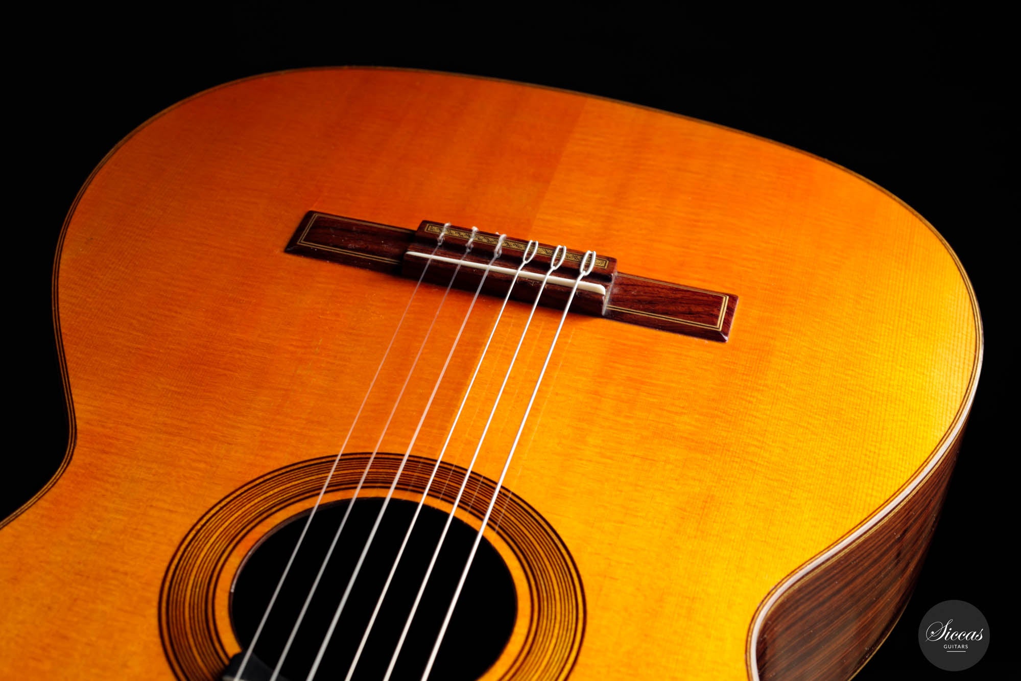 While the guitar boasts an exquisite design and outstanding build quality, it also tells a life story. Minor playing wears are visible on the soundboard, giving it character and authenticity. The Indian rosewood back reveals three superficial cracks, which are strictly surface level and remain stable, bearing witness to the guitar's journey through time.