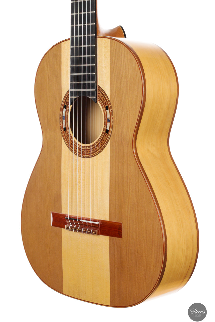 Kurzbeschreibung Traditionelle Gitarre von Erez Matzrafi aus dem Jahr 2026 mit kombinierter Fichten-Zederndecke und doppelten Zypressenzargen. Klarer, warmer Ton mit schneller Ansprache.
