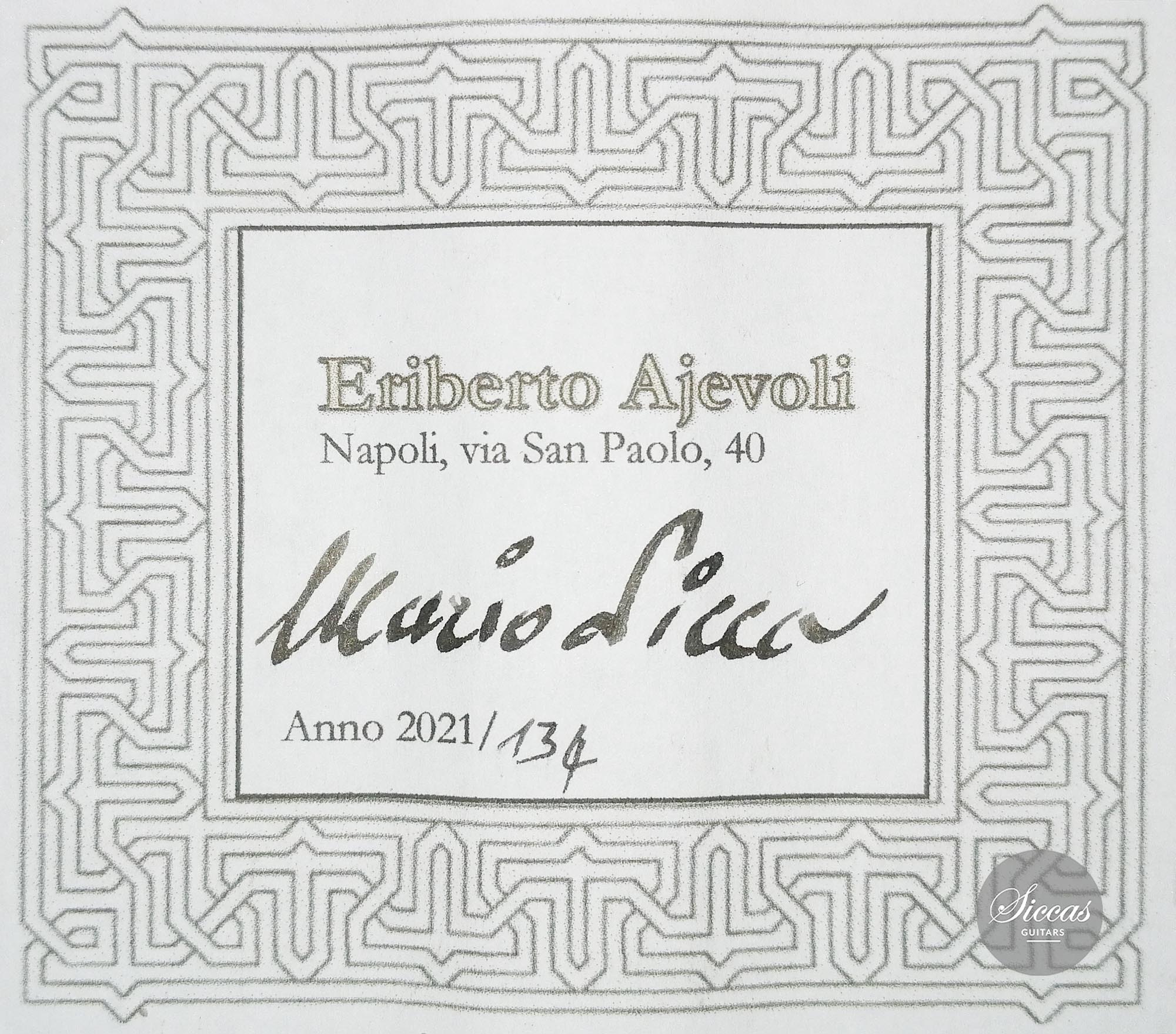 Unter dem Künstlernamen ‚Eriberto Ajevoli‘ – inspiriert von Bouchet und Friederich – begann er, seine eigenen Gitarrenmodelle zu entwickeln. Mittlerweile 90 Jahre alt, baut Mario Sicca nur wenige Gitarren pro Jahr. Sie sind zu 100 % traditionell handgefertigt, ohne die Hilfe moderner Maschinen.