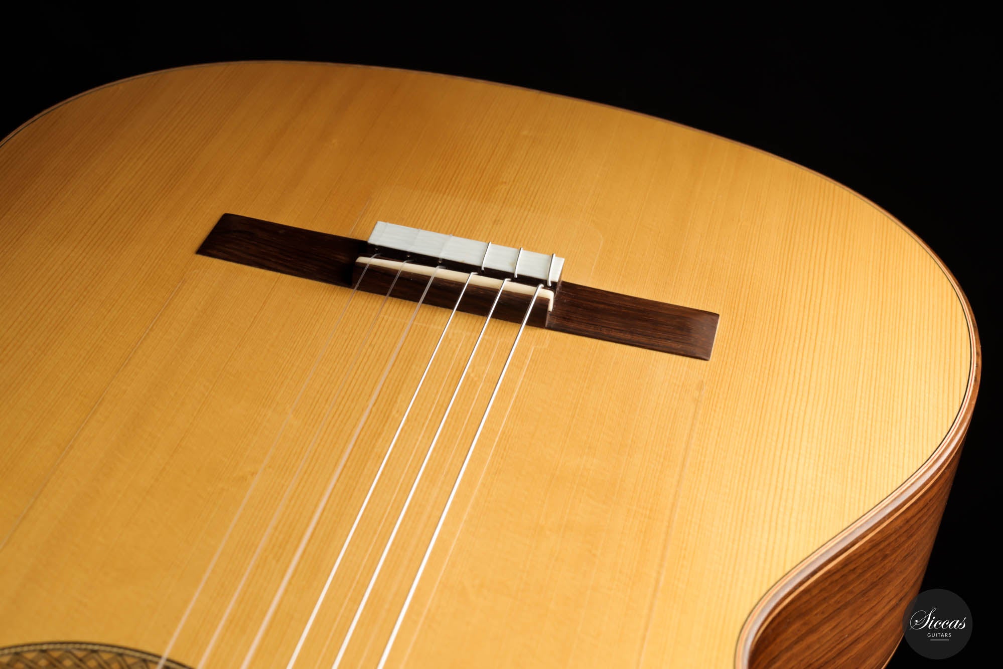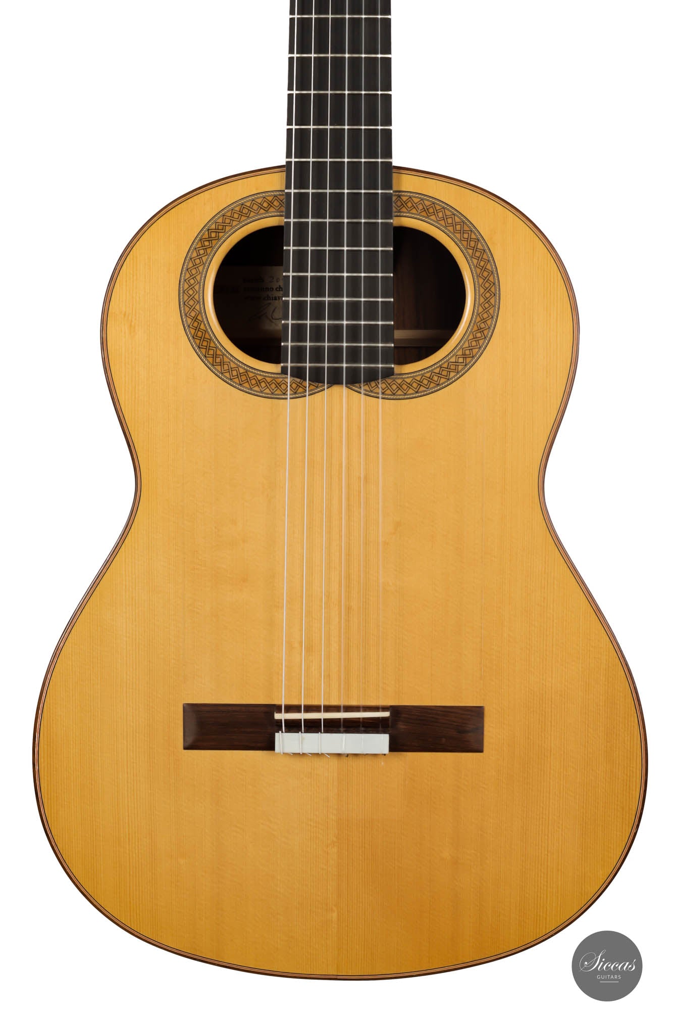 Die klassische Gitarre mit ihren weichen Nylonsaiten und ihrem charakteristischen Timbre ist zum Symbol der Kammermusik, der spanischen Tradition und des Konzertrepertoires geworden. Ihre moderne Form prägte Antonio de Torres im 19. Jahrhundert, indem er den Standard für Korpus, Fächerbeleistung und die 65-Zentimeter-Mensur setzte, die bis heute verwendet werden. Instrumente dieser Kategorie eröffnen eine reiche Palette von den feinen romantischen Miniaturen Tárregas bis zu den majestätischen Konzerten Rodrigos. Hier finden Sie Gitarren, die historische Kontinuität bewahren und zugleich zu neuen Interpretationen anregen.
