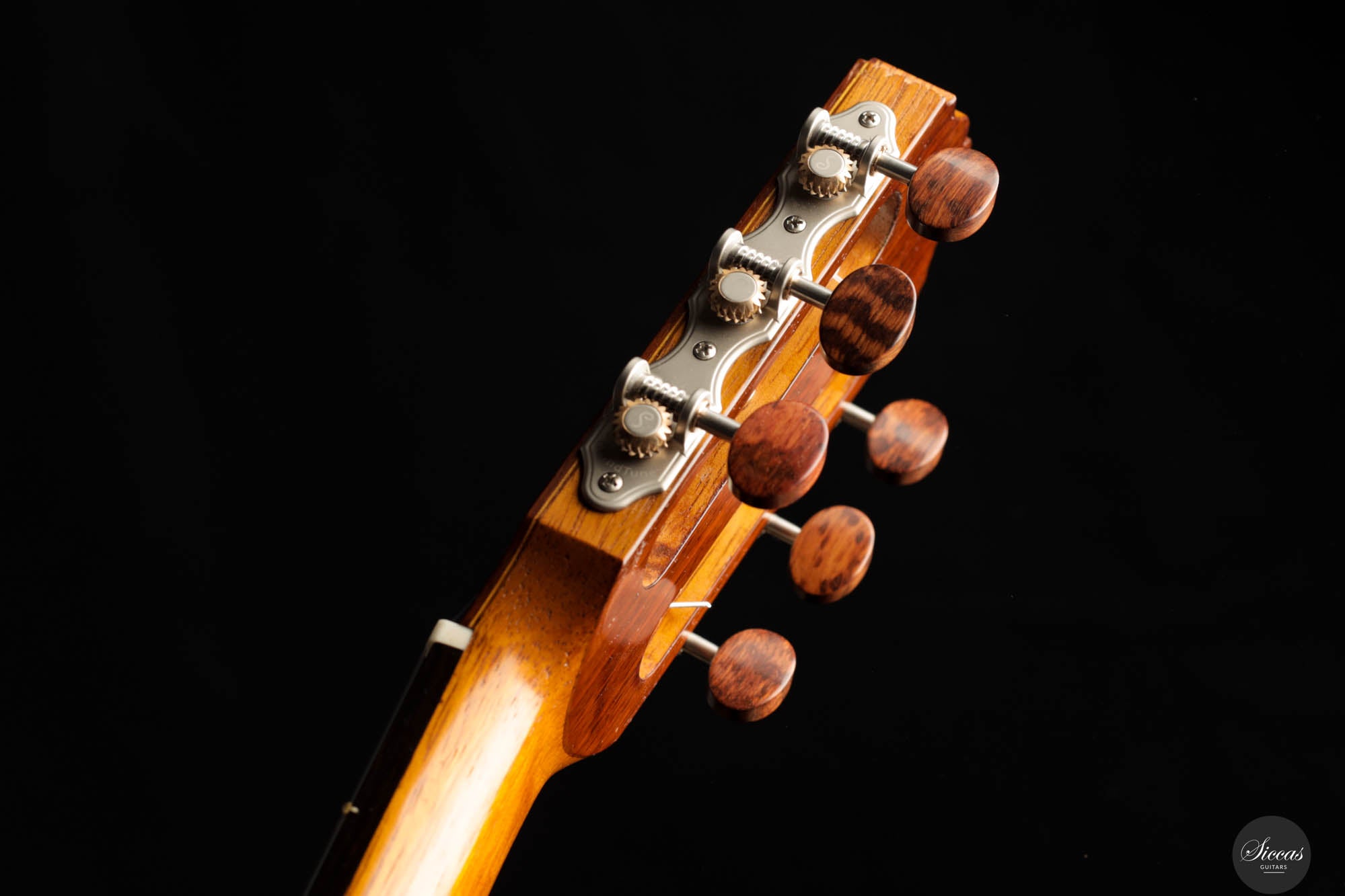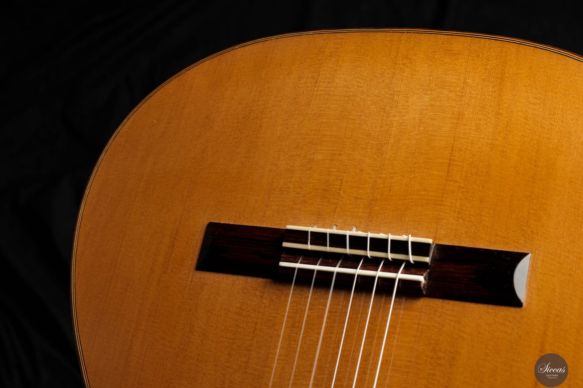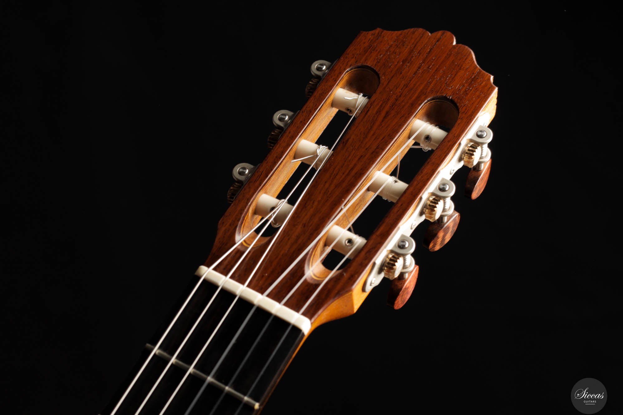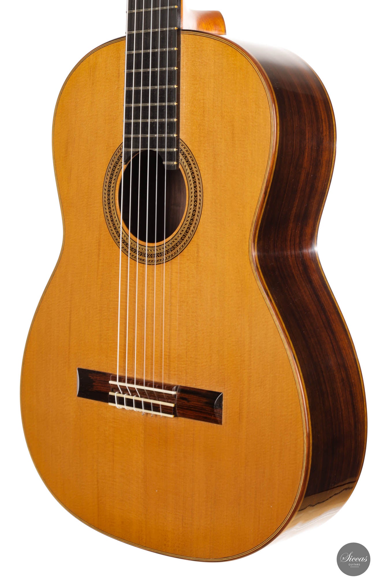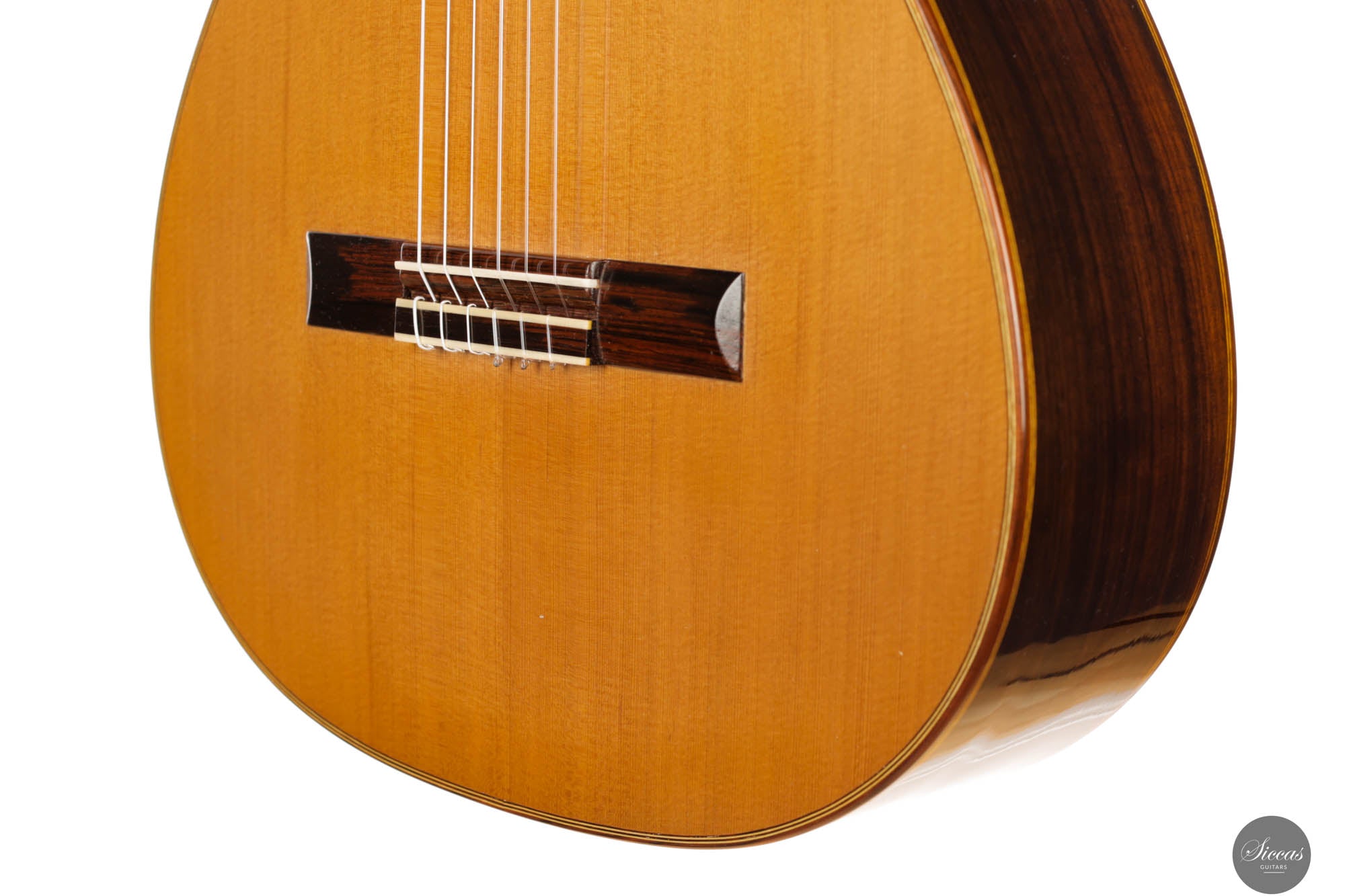Die 2024er Falko Römmich Gitarre, direkt aus der renommierten Römmich-Werkstatt kommend, ist ein Zeugnis für die Fortführung und Evolution einer reichen Familientradition im Gitarrenbau. Falko Römmich, der die Bauweisen und Klangphilosophie seines Vaters übernommen hat, hat eine Gitarre geschaffen, die nicht nur wunderschön klingt, sondern auch das Wesen des klassischen Gitarrenbaus verkörpert. Die Zedern-Schalldecke dieses Instruments gewährleistet eine warme Klangqualität und außergewöhnliche Ansprechbarkeit, ein Markenzeichen für Römmichs akribische Aufmerksamkeit für akustische Details. Ergänzt durch ein Set aus dunkel schokoladenfarbenem indischen Palisander, besticht die Gitarre auch durch eine elegante Ästhetik. Falkos Hintergrund als ehemaliger Uhrmacher spiegelt sich in seiner außergewöhnlichen Liebe zum Detail wider, was diese Gitarre nicht nur zu einem Instrument, sondern zu einem Kunstwerk macht. Mit ihrem enormen Volumen und ihrer leichten Bespielbarkeit eignet sich diese Gitarre besonders gut für Konzertinterpreten und Wettbewerber und bietet einen zuverlässigen und inspirierenden Begleiter für jede musikalische Reise.