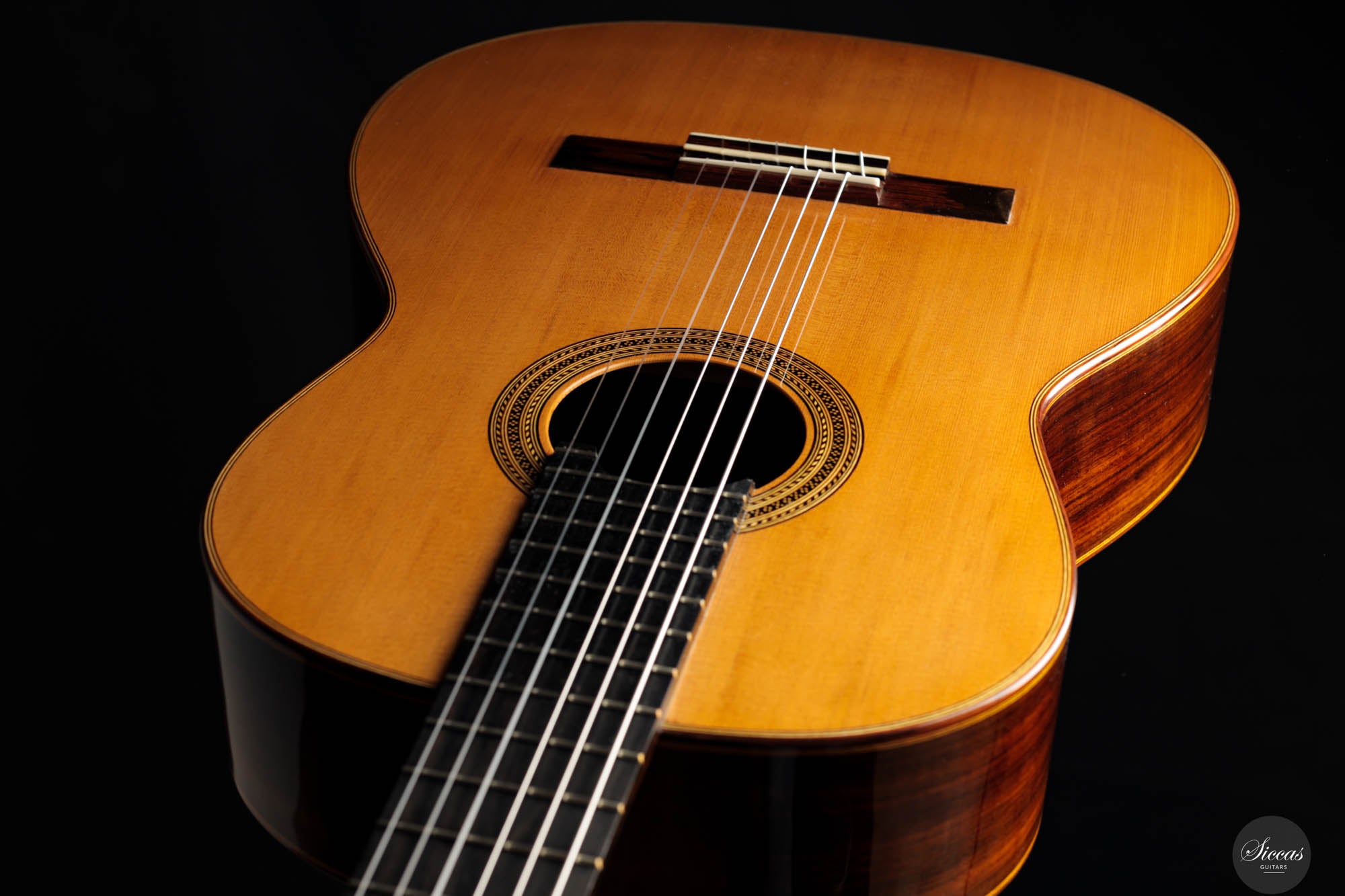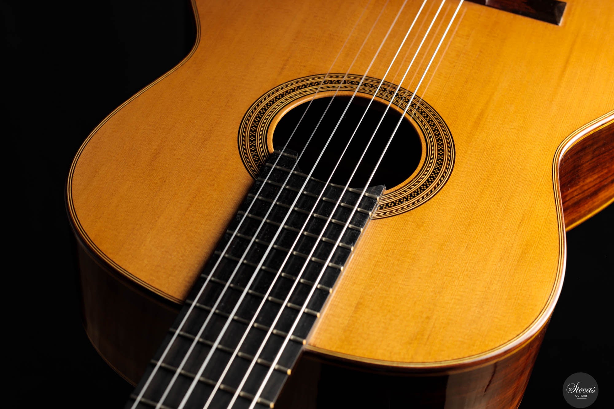 Die klassische Gitarre mit ihren weichen Nylonsaiten und ihrem charakteristischen Timbre ist zum Symbol der Kammermusik, der spanischen Tradition und des Konzertrepertoires geworden. Ihre moderne Form prägte Antonio de Torres im 19. Jahrhundert, indem er den Standard für Korpus, Fächerbeleistung und die 65-Zentimeter-Mensur setzte, die bis heute verwendet werden. Instrumente dieser Kategorie eröffnen eine reiche Palette von den feinen romantischen Miniaturen Tárregas bis zu den majestätischen Konzerten Rodrigos. Hier finden Sie Gitarren, die historische Kontinuität bewahren und zugleich zu neuen Interpretationen anregen.