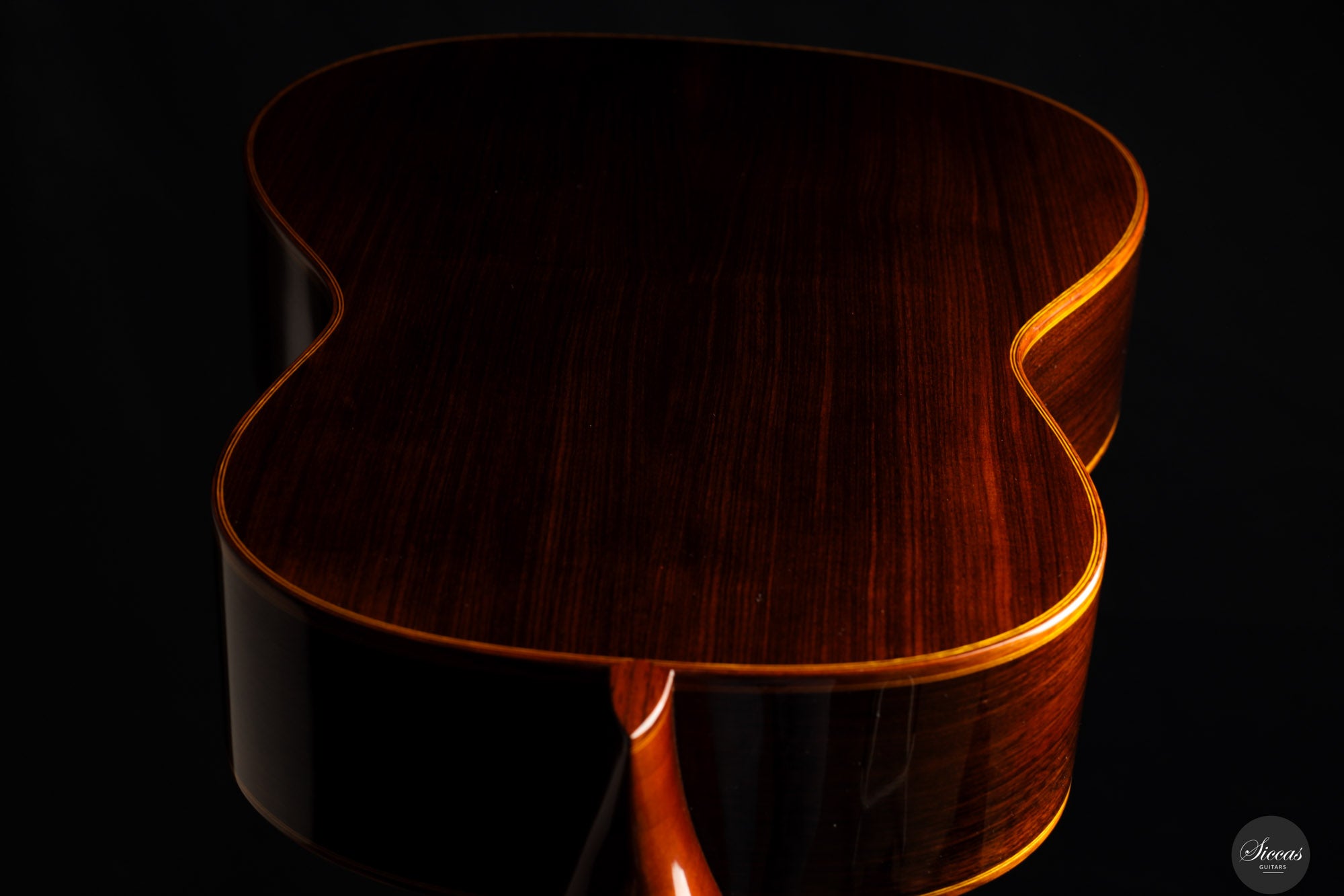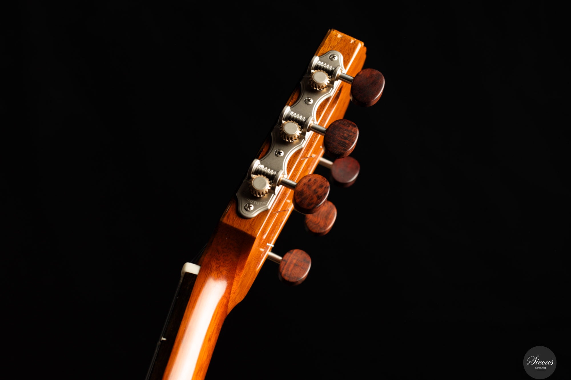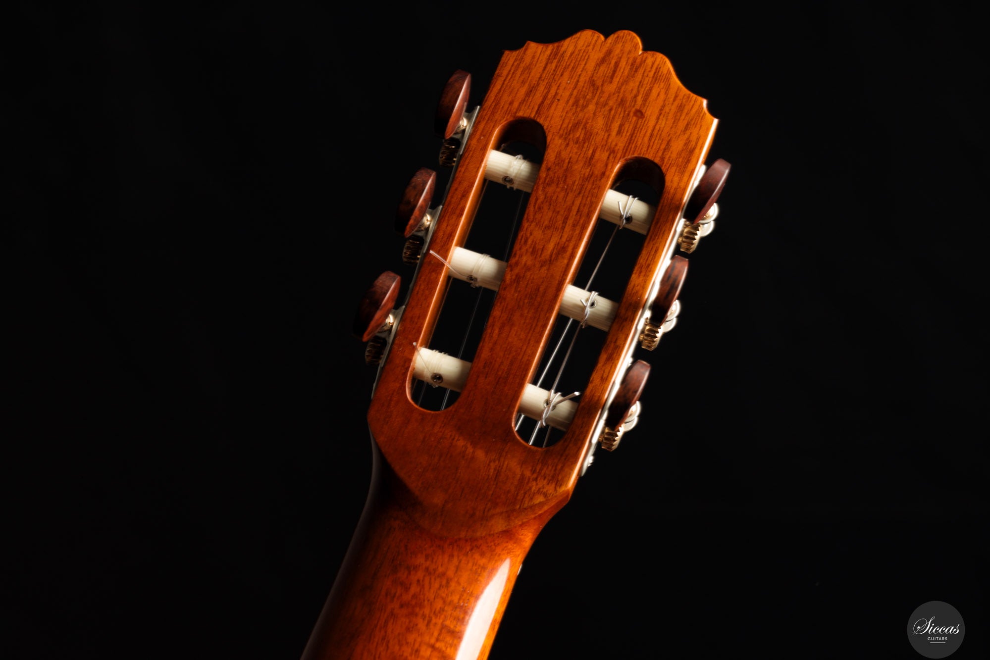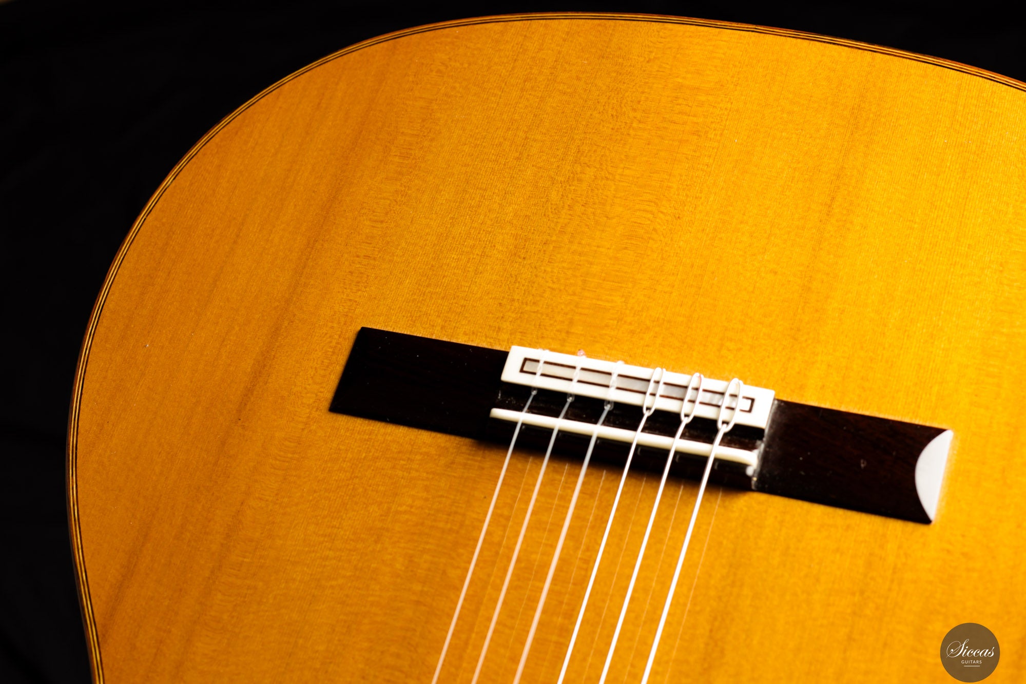 Die Falko Römmich Gitarre 2025 ist ein herausragendes Beispiel moderner Gitarrenbaukunst, die fest in einer traditionellen Familienlinie verwurzelt ist. Diese Gitarre stammt direkt aus der renommierten Werkstatt Römmich und verkörpert die gelungene Fortführung und Weiterentwicklung des handwerklichen Erbes seines Vaters. Falko Römmich bleibt dabei den Bauprinzipien und der Klangphilosophie seines Vaters treu und schafft ein Instrument, das sowohl klanglich als auch ästhetisch auf höchstem Niveau überzeugt. Die Decke besteht aus kanadischem Zedernholz und bietet eine warme Klangfarbe, außergewöhnliche Ansprache und große Ausdruckskraft. Die Zargen und der Boden aus indischem Palisander in dunkler Schokoladenfarbe verleihen dem Instrument nicht nur eine edle Optik, sondern unterstützen auch seine klangliche Tiefe. Falkos Werdegang als ehemaliger Uhrmacher zeigt sich deutlich in der präzisen Verarbeitung und der Liebe zum Detail. Jedes Element dieser Gitarre – von der Beleistung bis zum Finish – ist mit höchster Sorgfalt ausgeführt und macht sie zu weit mehr als nur einem Musikinstrument – sie ist ein Kunstwerk. Klanglich überzeugt die Gitarre durch außergewöhnliche Leichtigkeit im Spiel, enorme Lautstärke und Projektion, was sie zur idealen Wahl für Konzertgitarristen, Wettbewerbsteilnehmer und professionelle Musiker macht, die ein ausdrucksstarkes und verlässliches Instrument suchen.