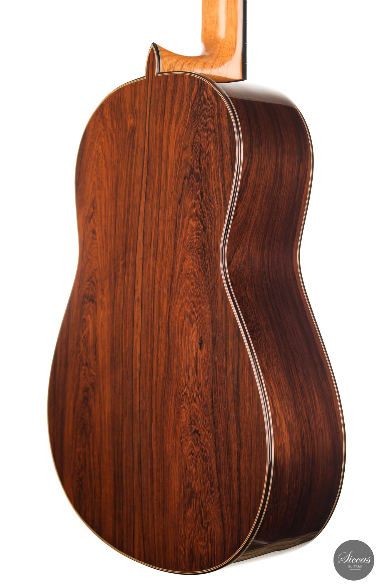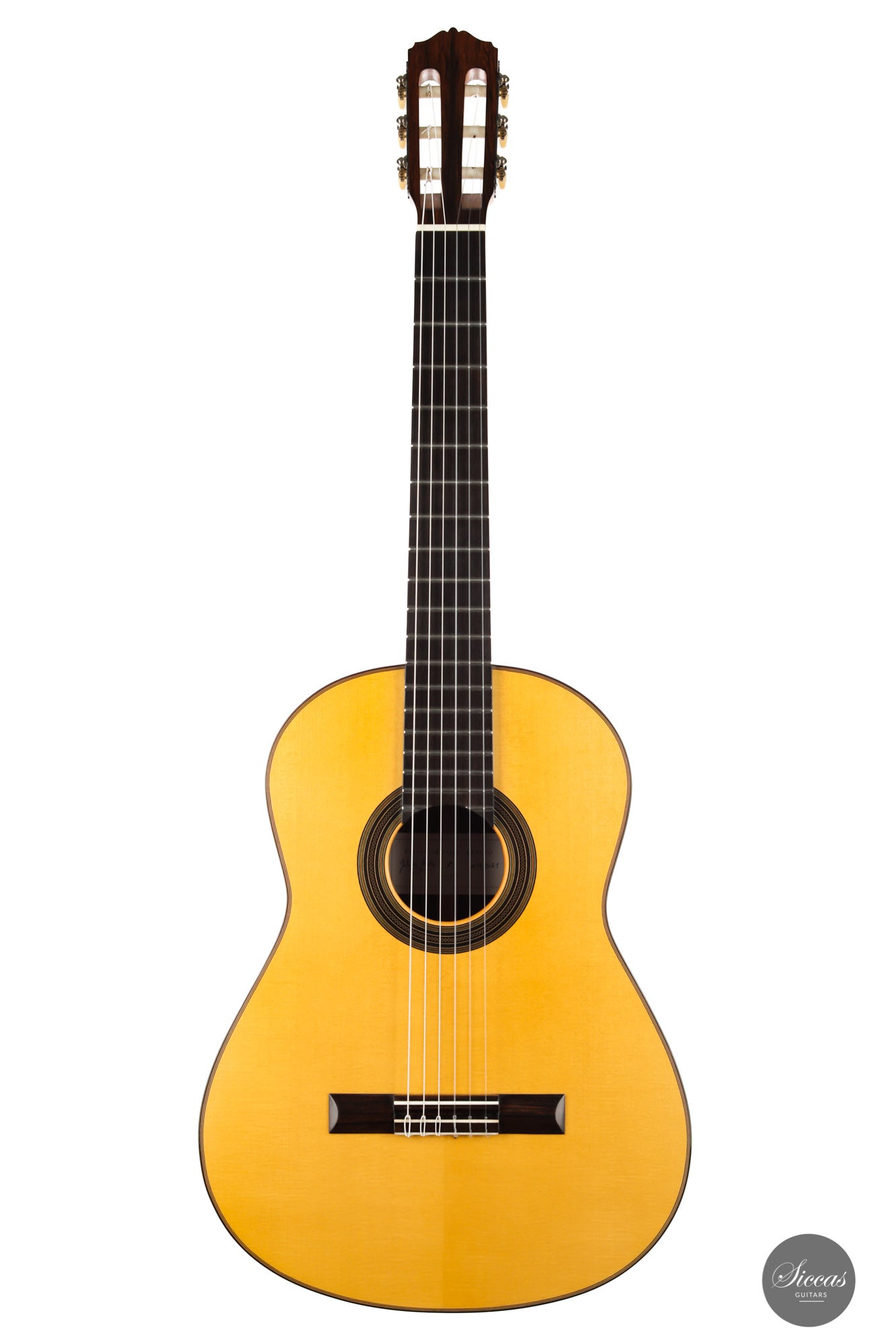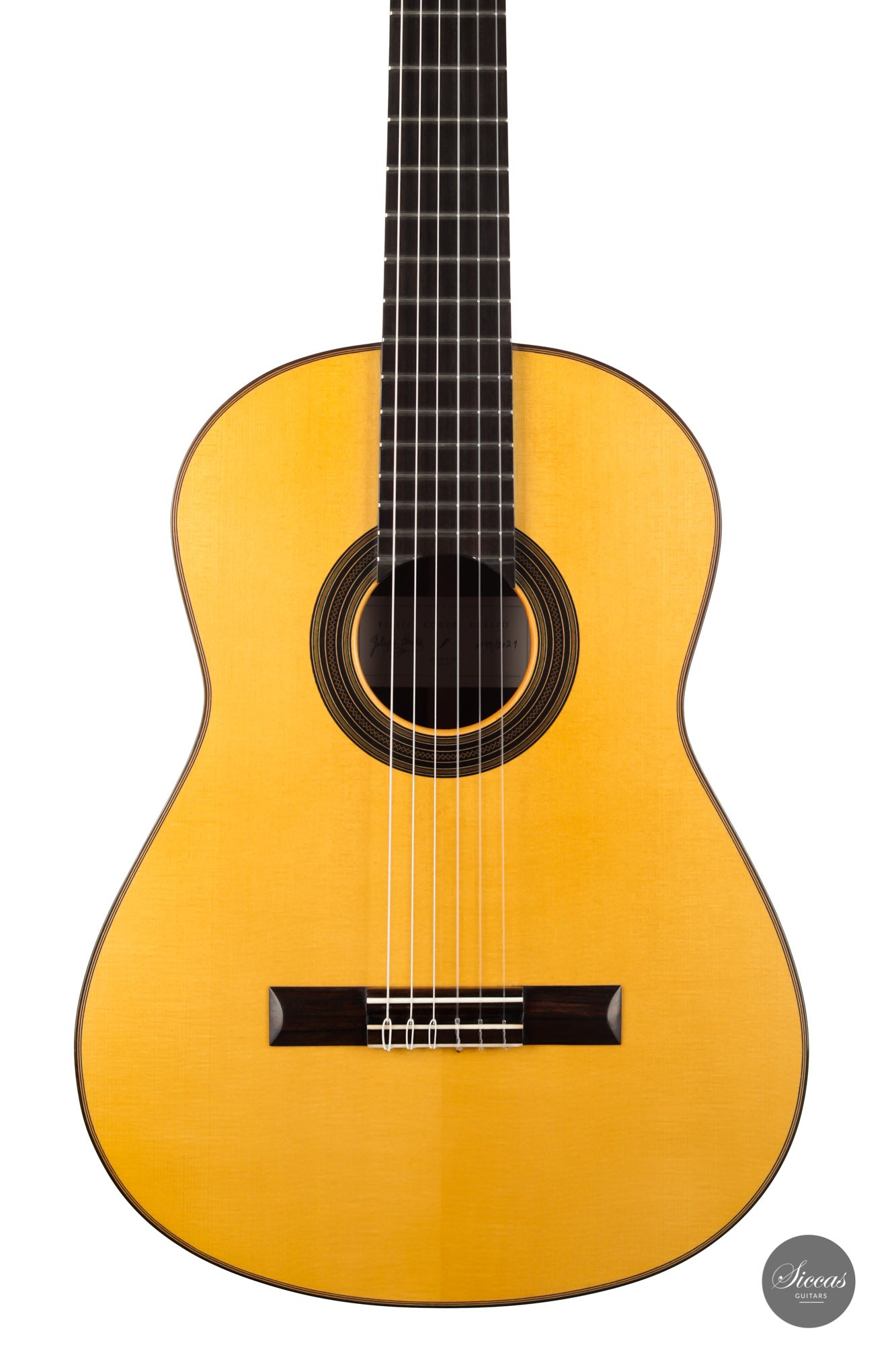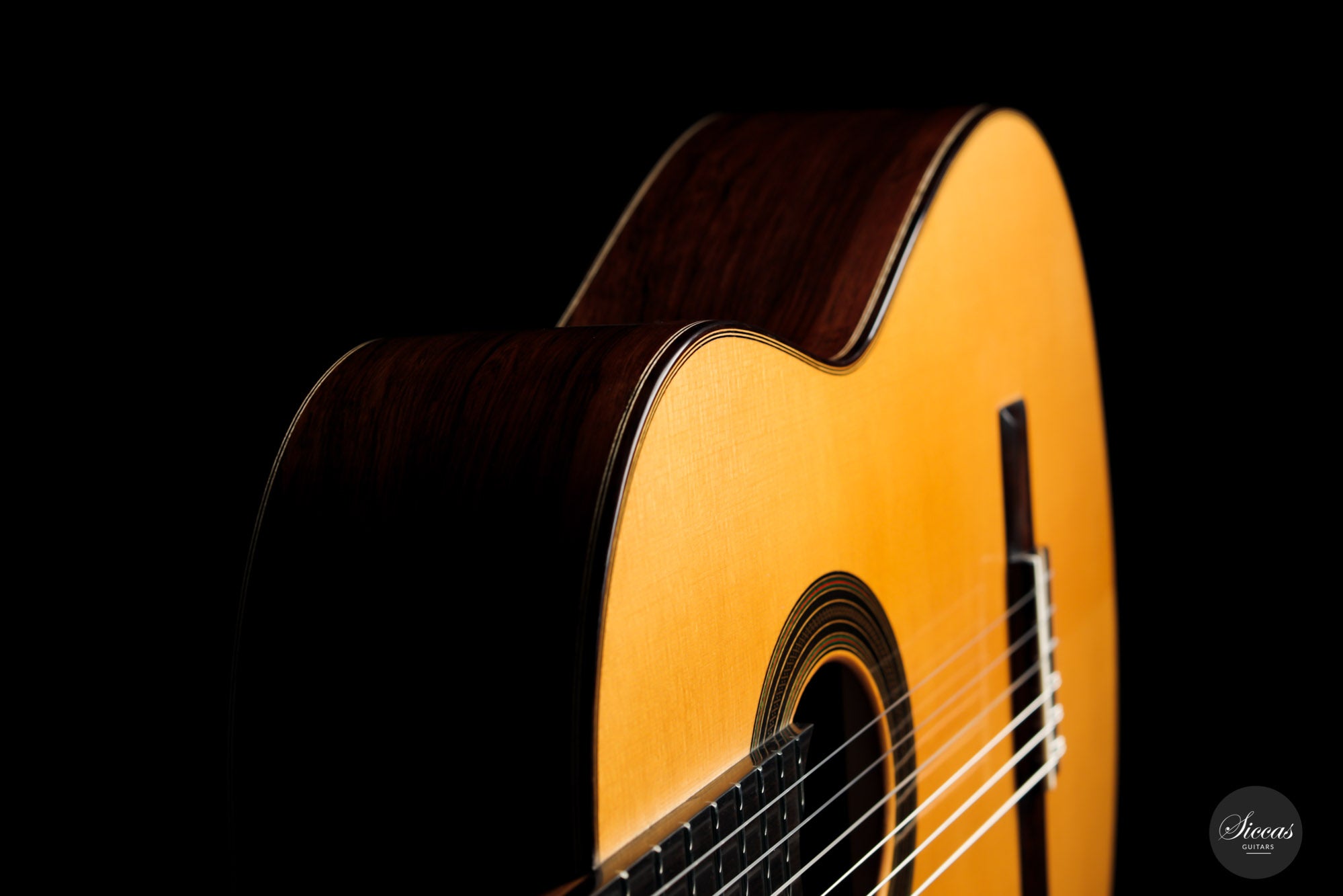 "The sobriety and elegance of Esteso Instruments are the main characteristics of this guitar genius of the XX century, and this is exactly what I tried to achieve with my work. It is made of some of our best and oldest woods. The top is made of German spruce (Picea abies) and the back and sides of Madagascar rosewood (Dalbergia baronii). The "plantilla" and bracing are an exact copy of this instrument made by Domingo Esteso in 1931 with some inlays and purflings that I created myself. The tuners are copies of the original ones and to give the instrument a vintage look, I applied a special vintage-looking shellac finish."
