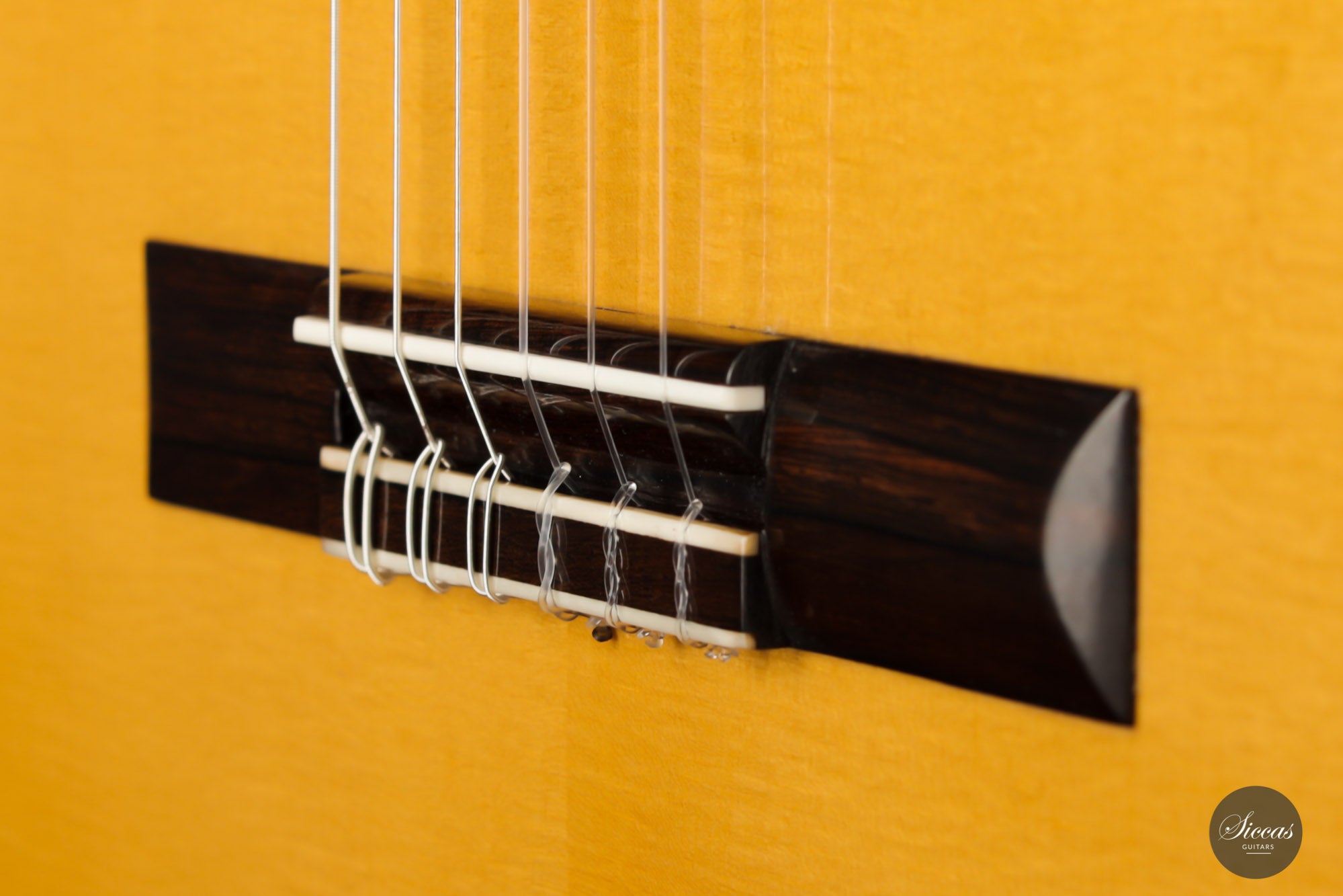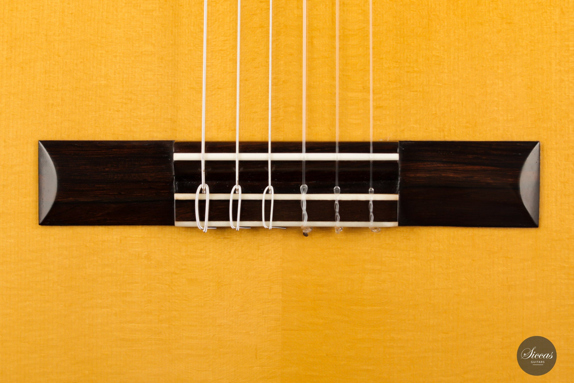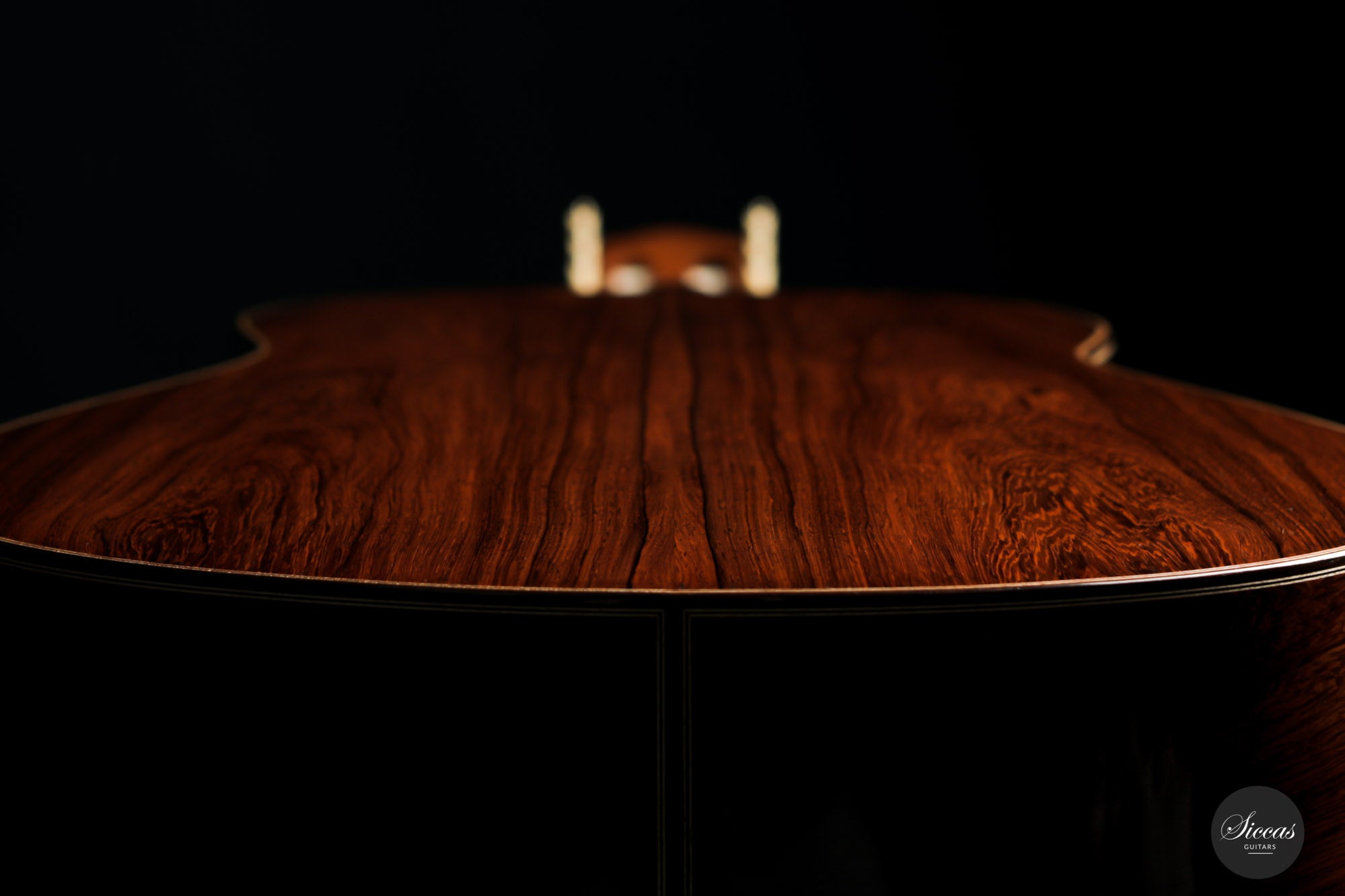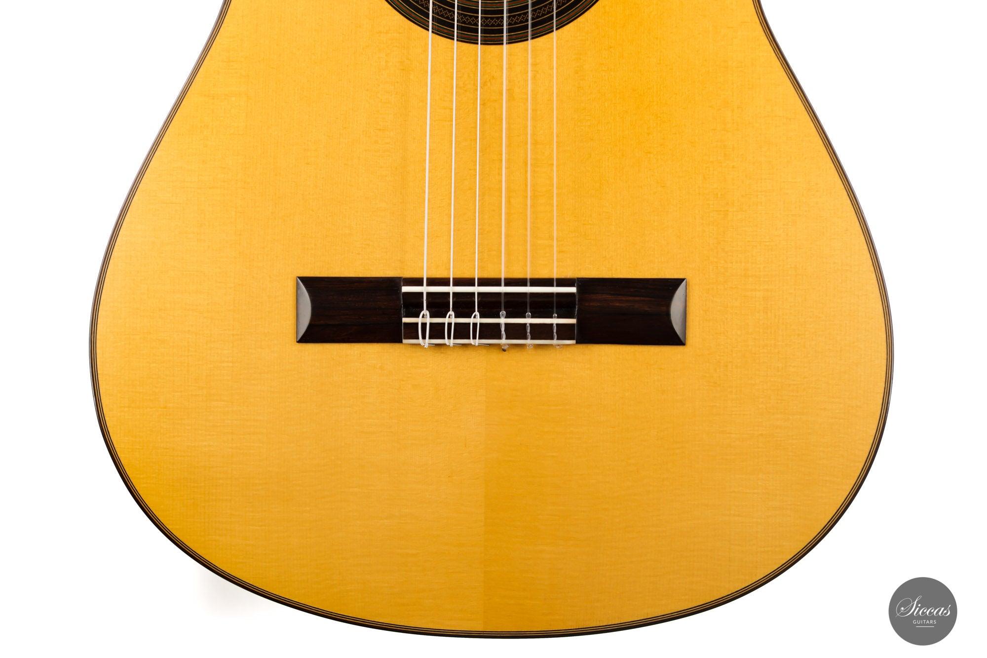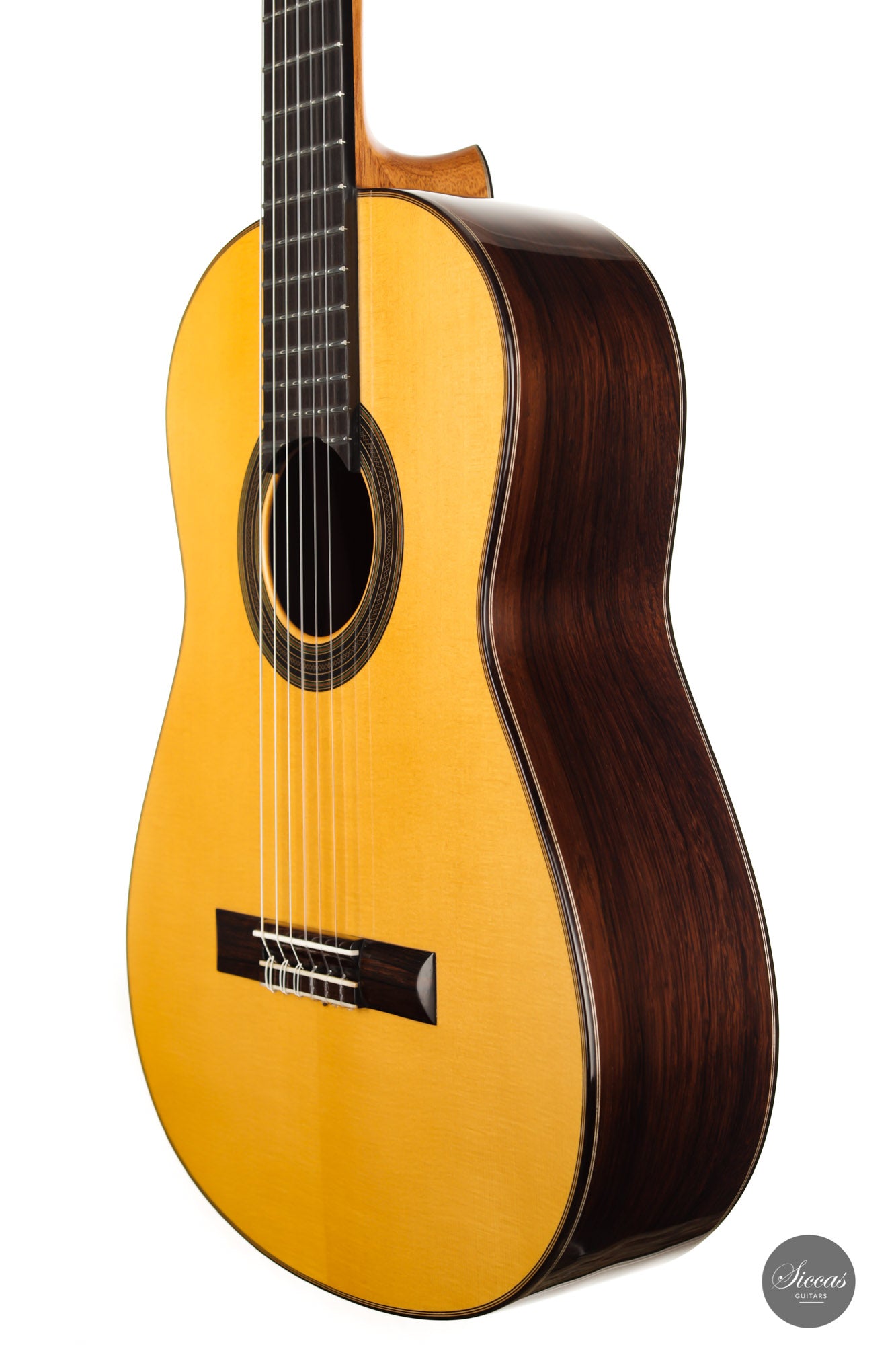 "The sobriety and elegance of Esteso Instruments are the main characteristics of this guitar genius of the XX century, and this is exactly what I tried to achieve with my work. It is made of some of our best and oldest woods. The top is made of German spruce (Picea abies) and the back and sides of Madagascar rosewood (Dalbergia baronii). The "plantilla" and bracing are an exact copy of this instrument made by Domingo Esteso in 1931 with some inlays and purflings that I created myself. The tuners are copies of the original ones and to give the instrument a vintage look, I applied a special vintage-looking shellac finish."