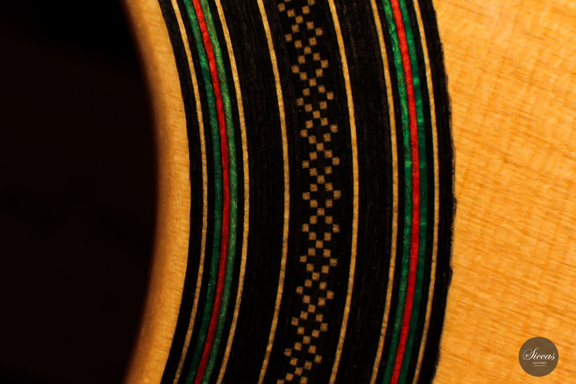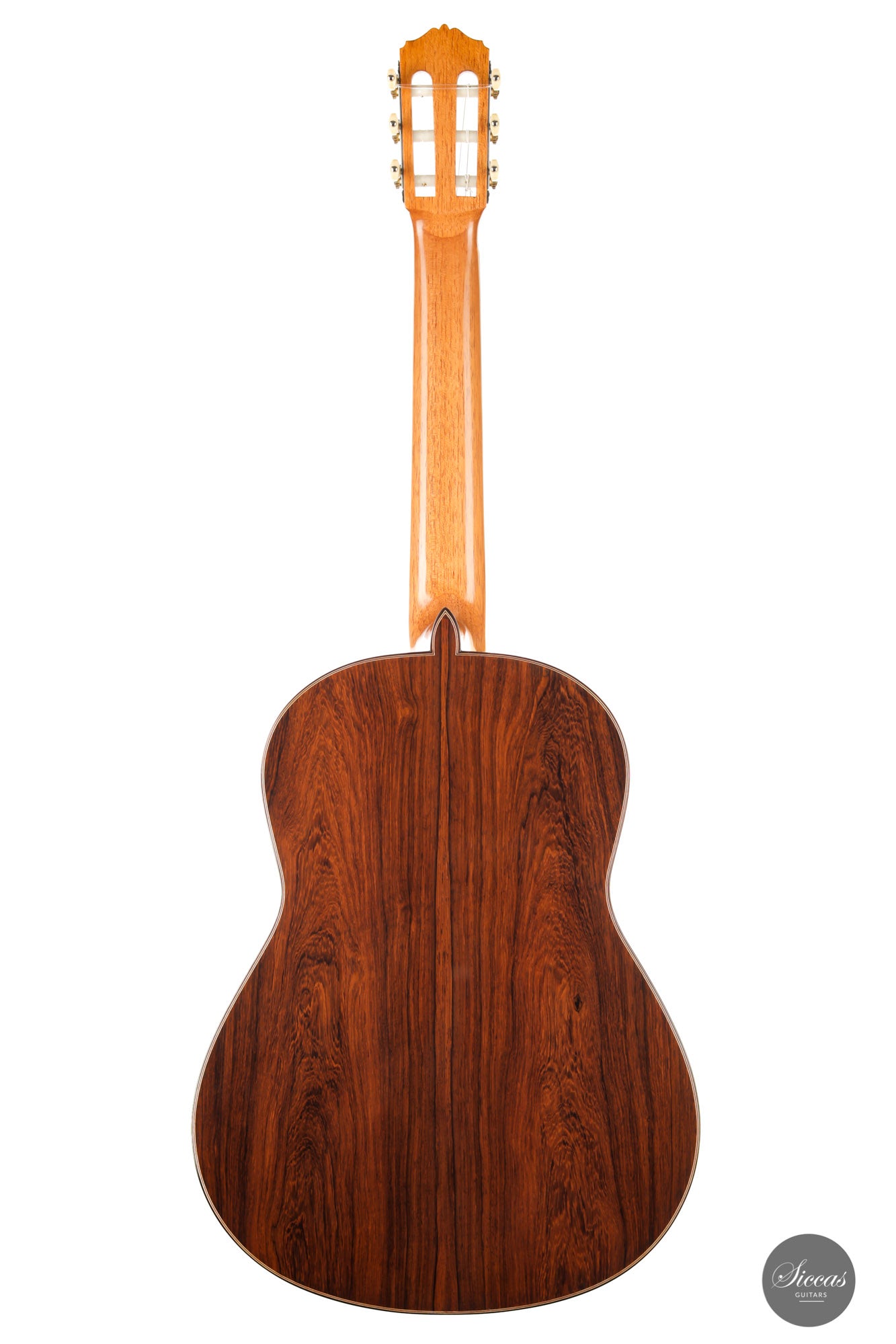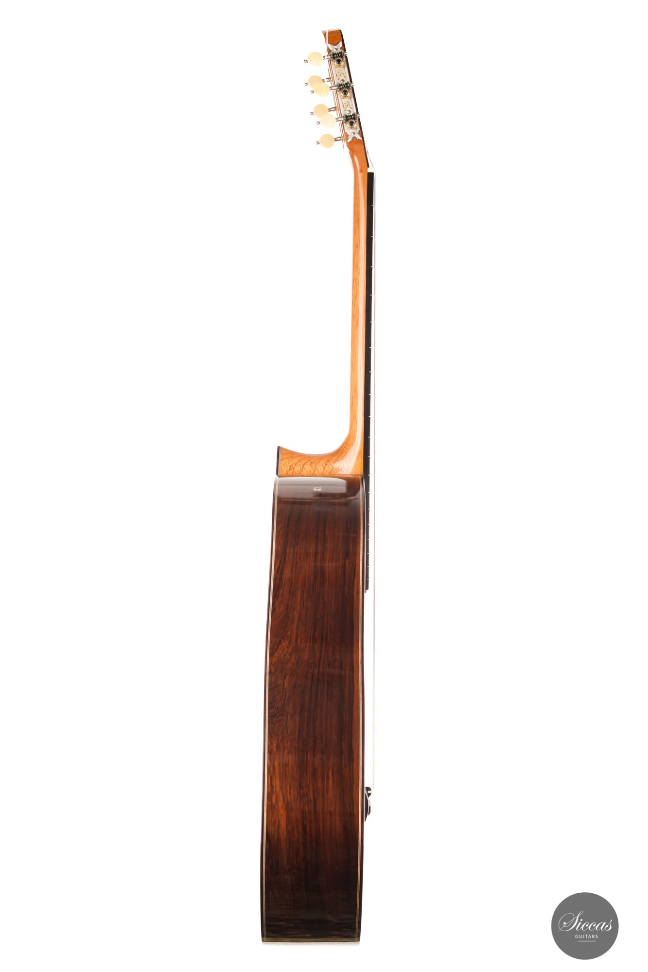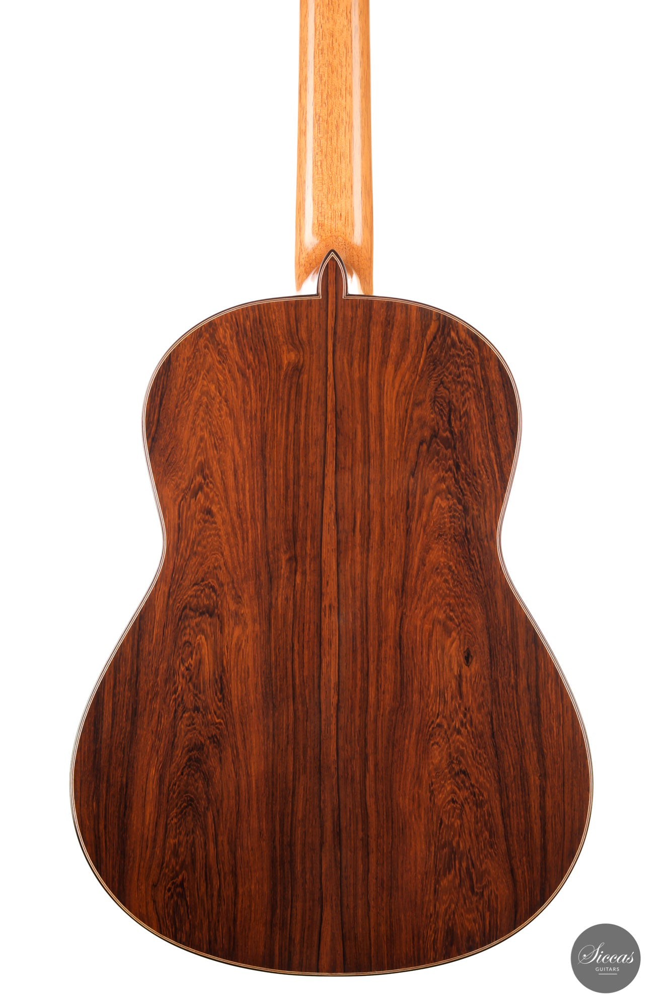 "The sobriety and elegance of Esteso Instruments are the main characteristics of this guitar genius of the XX century, and this is exactly what I tried to achieve with my work. It is made of some of our best and oldest woods. The top is made of German spruce (Picea abies) and the back and sides of Madagascar rosewood (Dalbergia baronii). The "plantilla" and bracing are an exact copy of this instrument made by Domingo Esteso in 1931 with some inlays and purflings that I created myself. The tuners are copies of the original ones and to give the instrument a vintage look, I applied a special vintage-looking shellac finish."