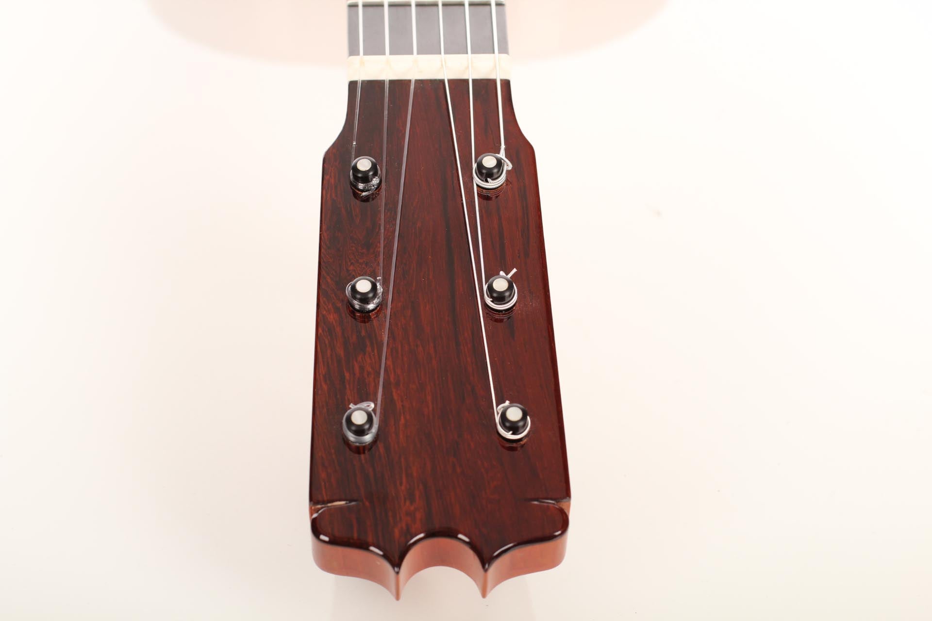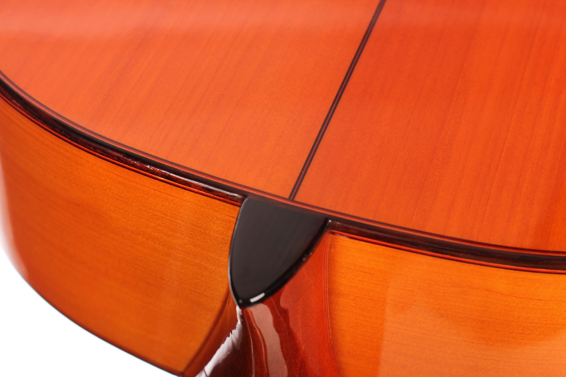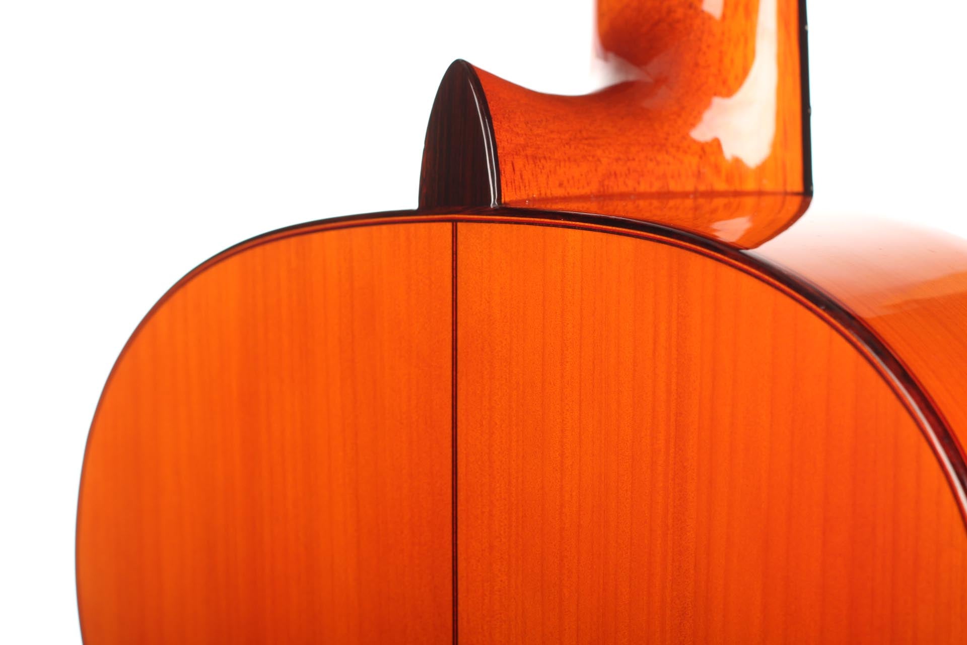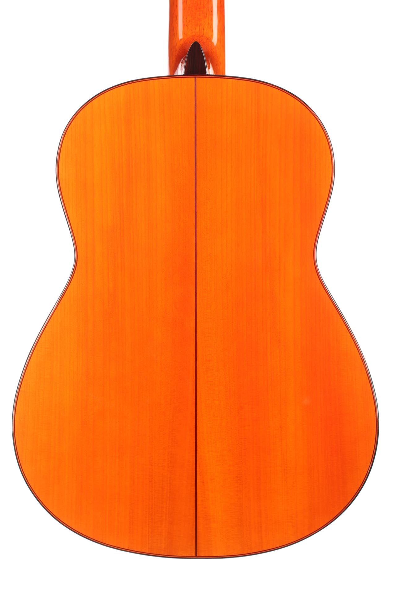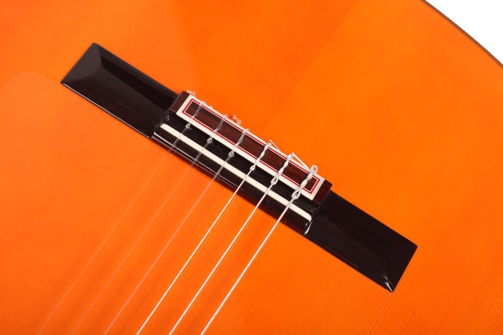 This guitar is the No. 12 of the 25 “Moraíto Chico reedición” guitars built as a special limited edition in homage to the great Master Moraíto Chico. This guitar is featuring the highest quality woods and gathering all the typical flamenco sound aspects and esthetical details. It has a brilliant sound with rhythmical percussive basses and singing complex trebles. The perfect playability and the unique quality of the sound are a guarantee of deep playing pleasure and spectacular public performances. A Conde hard-shell case is included. This guitar is Cites-free (CF).