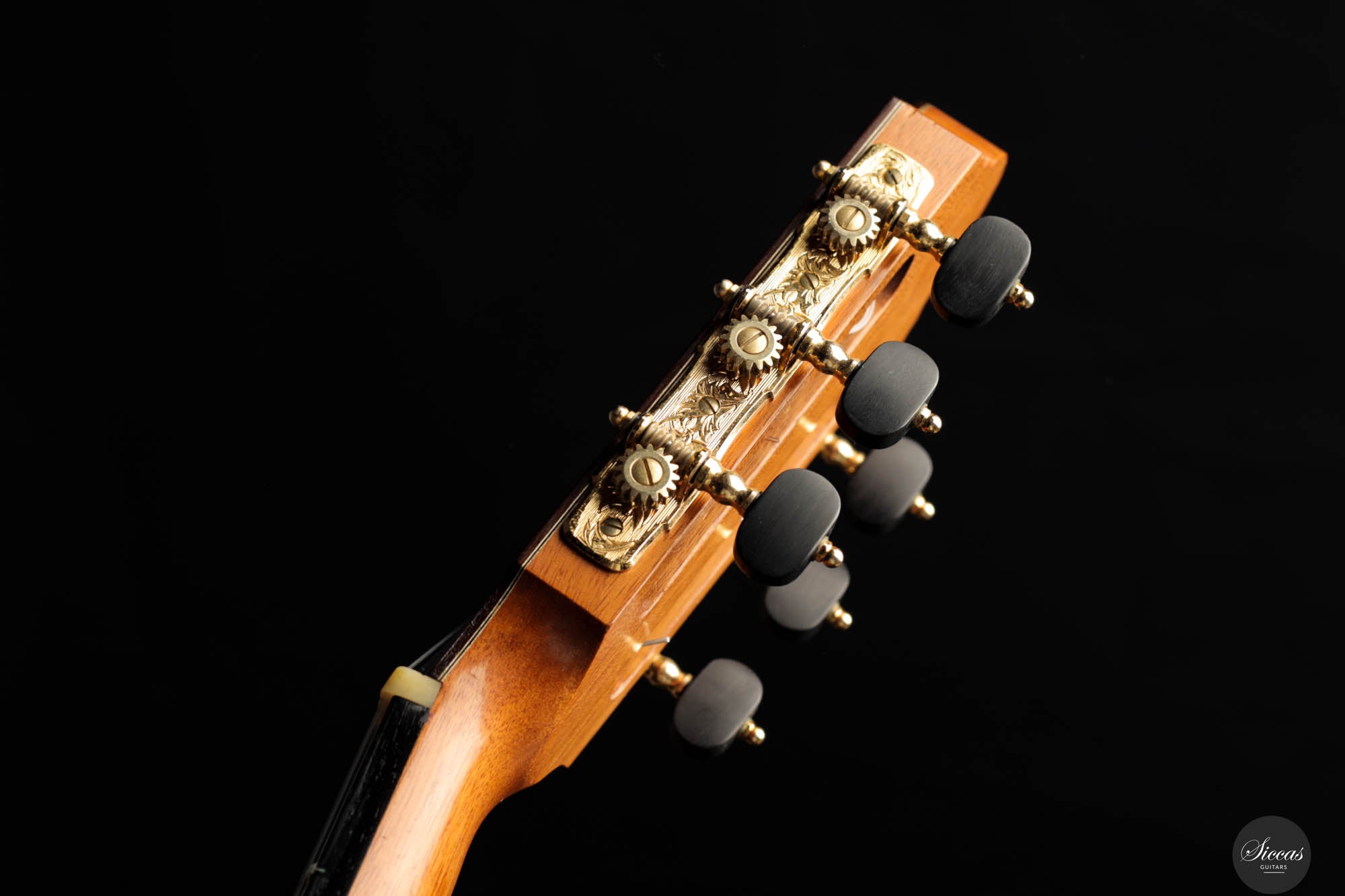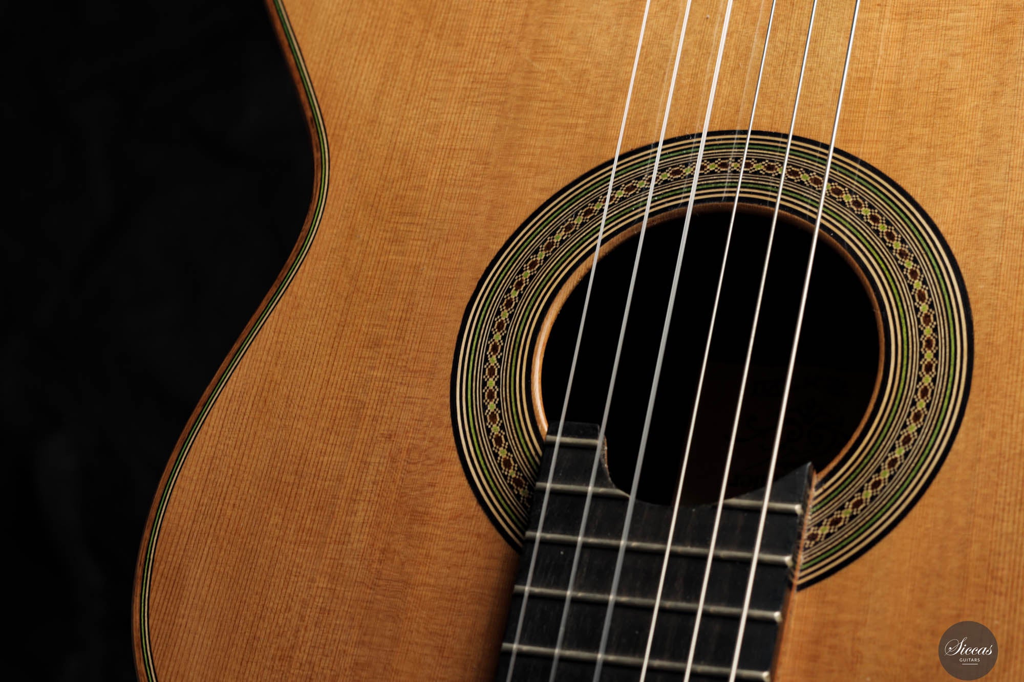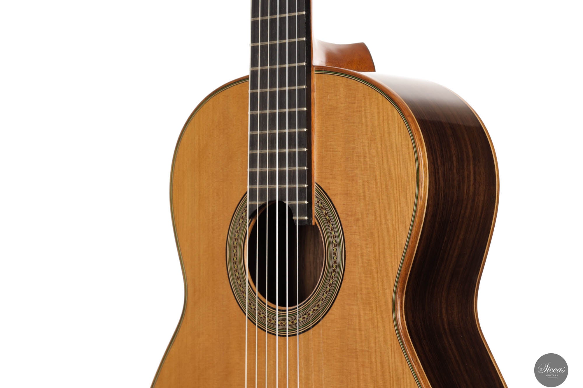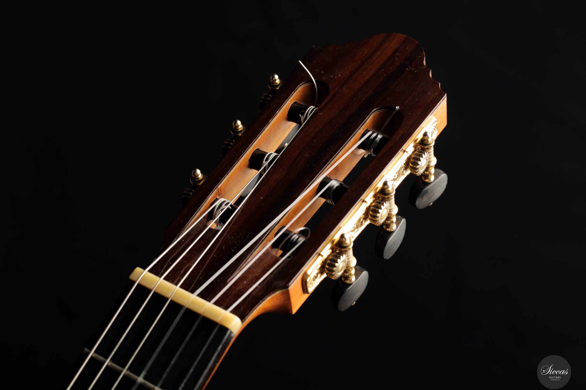 Diese Gitarre, gefertigt vom renommierten Felix Müller, steht als Zeugnis für seine Position als führende Persönlichkeit in der Welt des Double-Top-Gitarrenbaus, eine Kunst, die er unter der Anleitung seines Vaters, Antonius Müller, verfeinert hat. Felix hat die Einflüsse der Designs seines Vaters in seine eigene Arbeit integriert, während er jedem Instrument auch seinen starken persönlichen Stil aufprägt. Diese spezielle Gitarre exemplifiziert hervorragende Spielbarkeit und bietet außergewöhnlichen Komfort für sowohl die rechte als auch die linke Hand, was ein Markenzeichen von Felix' Aufmerksamkeit für das ergonomische Design seiner Gitarren ist. Das phänomenale Volumen des Instruments paart sich wunderschön mit seinem langen Sustain und orchestralen sympathischen Resonanzen, was seine lyrischen Qualitäten verstärkt. Der erzeugte Klang ist reich und raumfüllend, charakterisiert durch einen warmen, dunklen Klang und eine ausgezeichnete Trennung der Stimmen, was eine ausgewogene Ausgabe über alle Frequenzen sicherstellt.