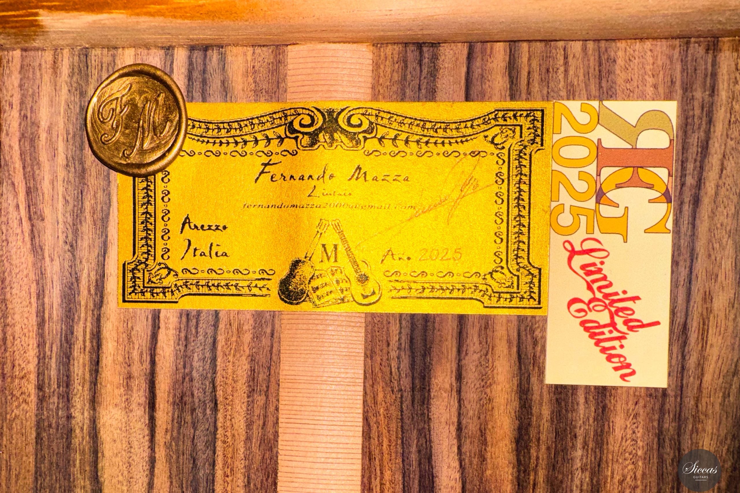 Der Gitarrenbauer Fernando Mazza präsentiert seine REG 2025 Limited Edition Gitarre auf der Roma Expo Guitars 2025 und stellt dabei sein innovatives Lattice Bracing Modell vor. Dieses außergewöhnliche Instrument zeigt Mazza's Können, moderne Materialien mit traditionellem Handwerk zu verbinden und dabei eine Gitarre zu schaffen, die sowohl kraftvoll als auch harmonisch reich ist.