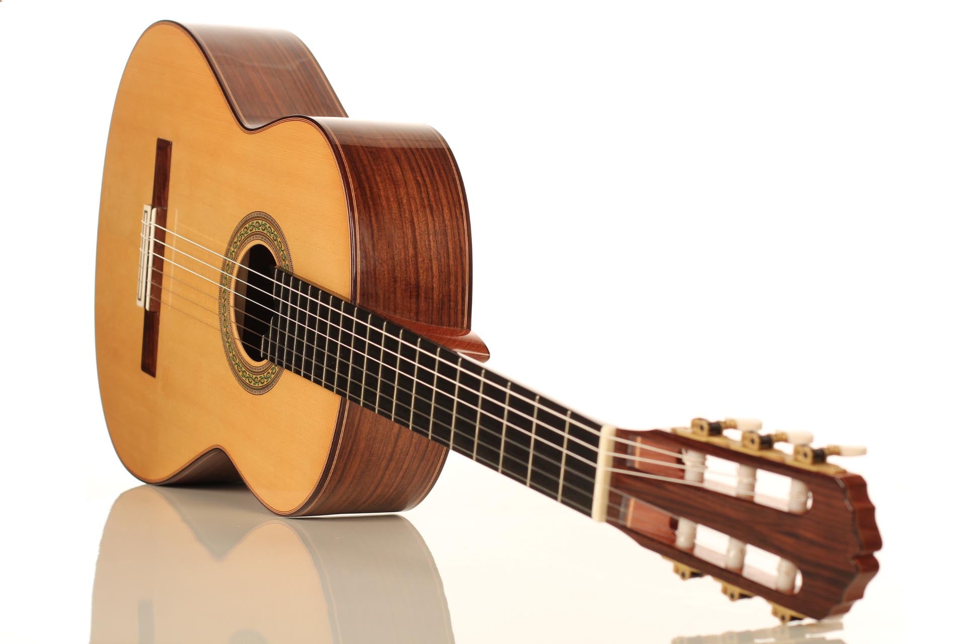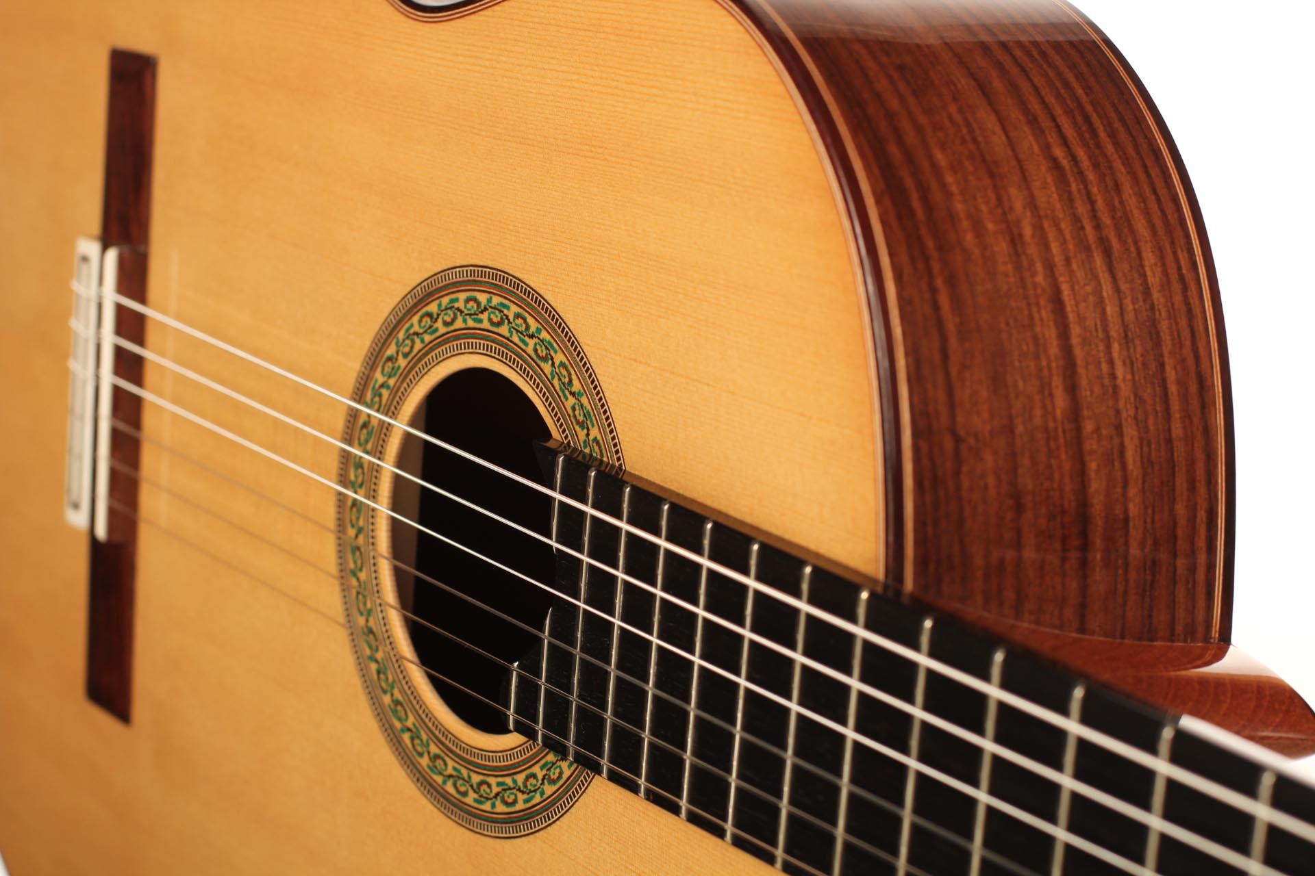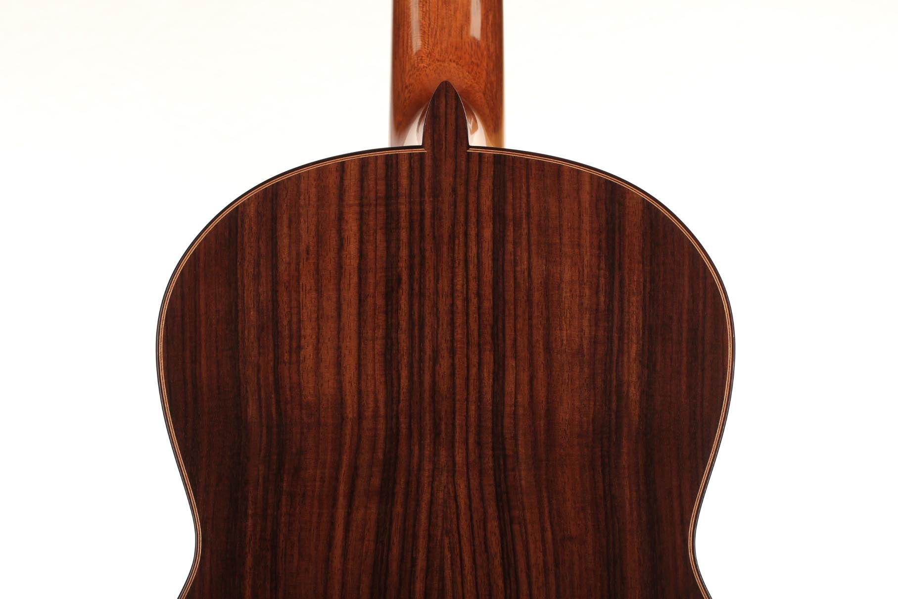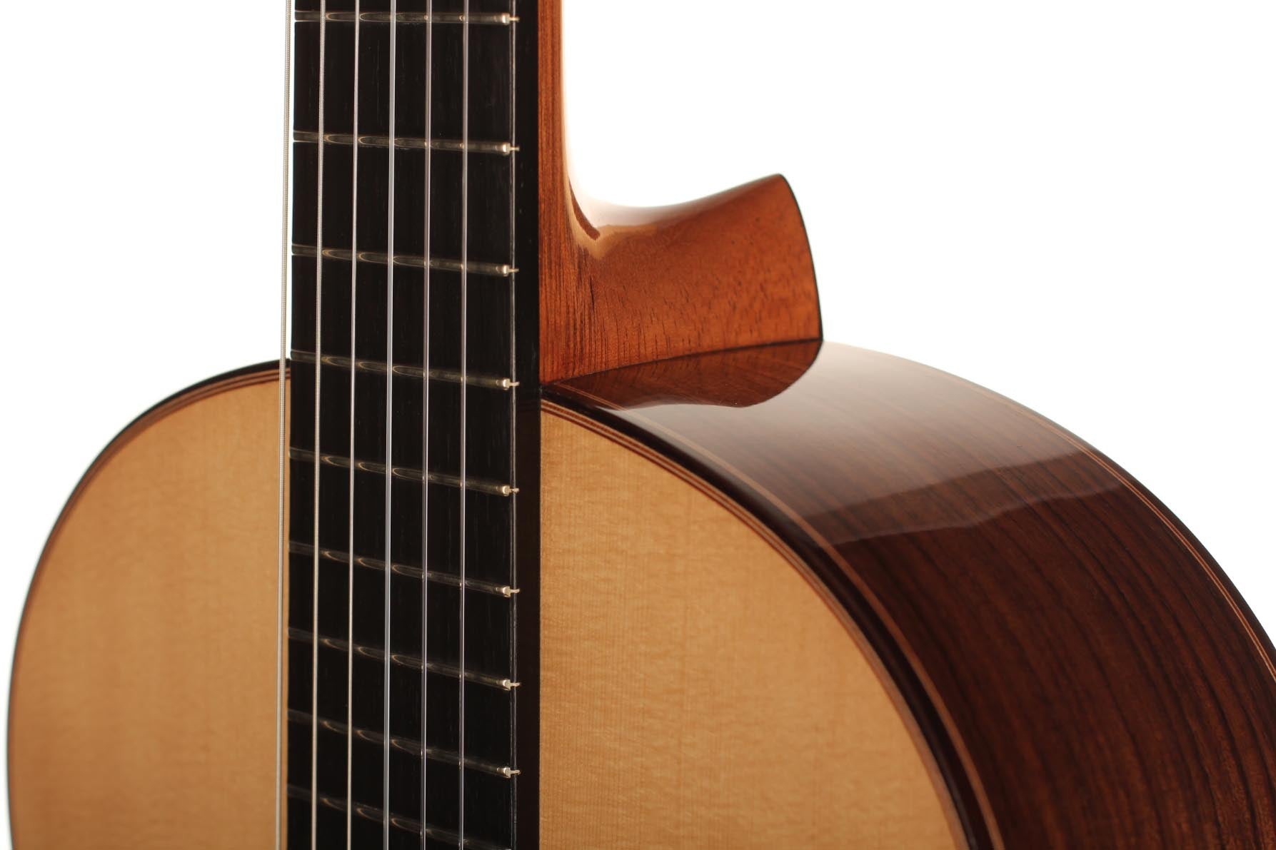 Diese Gitarre hat eine schöne Fichtendecke, die eine elegante warmen Farbe besitzt. Der Boden und die Zargen aus indischem Palisander sind von bester Qualität und die Quer-Maserung des Holzes verleiht ihm eine tiefe und ansprechende Textur. Klanglich sticht bei dieser Gitarre Ihre Klarheit, Reinheit und Sensibilität heraus. Sie besitzt viel Persönlichkeit in Ihren Klangfarben und wir empfehlen jedem Liebhaber des spanischen Klangs, dieses feine Instrument auszuprobieren. Veredelt wurde diese Gitarre mit einer Schellack-Politur. Ein Hartschalenkoffer ist inklusive.