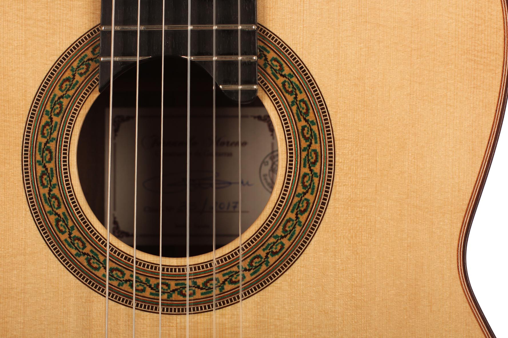 Fernando Moreno ist ein talentierter Gitarrenbauer aus Sevilla (Spanien). In den letzten Jahren hat er sich einen guten Ruf als Gitarrenbauer für Flamenco- und Konzertgitarren aufgebaut. Fernando Moreno baut sehr leichte Instrumente, die viel Charakter und einen sehr definierten Klang besitzen. Seine Gitarren sind sehr gut proportioniert. Sie zeichnen sich durch ihre sehr elegante Planitlla, die kurze im Santos-Hernandez-Stil geformte Kopfplatte und ihre feine florale Rosette aus.