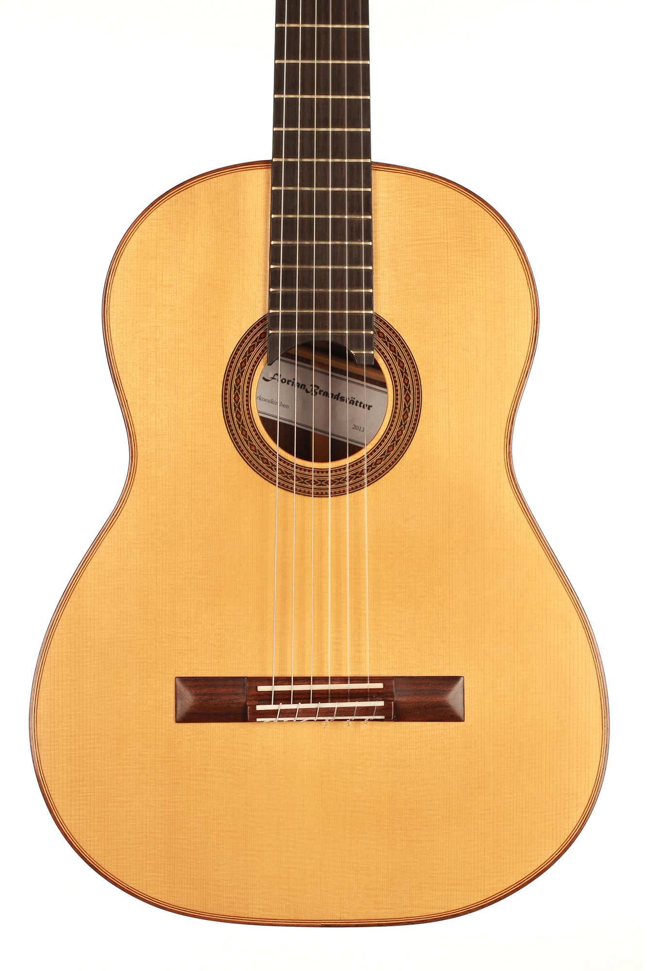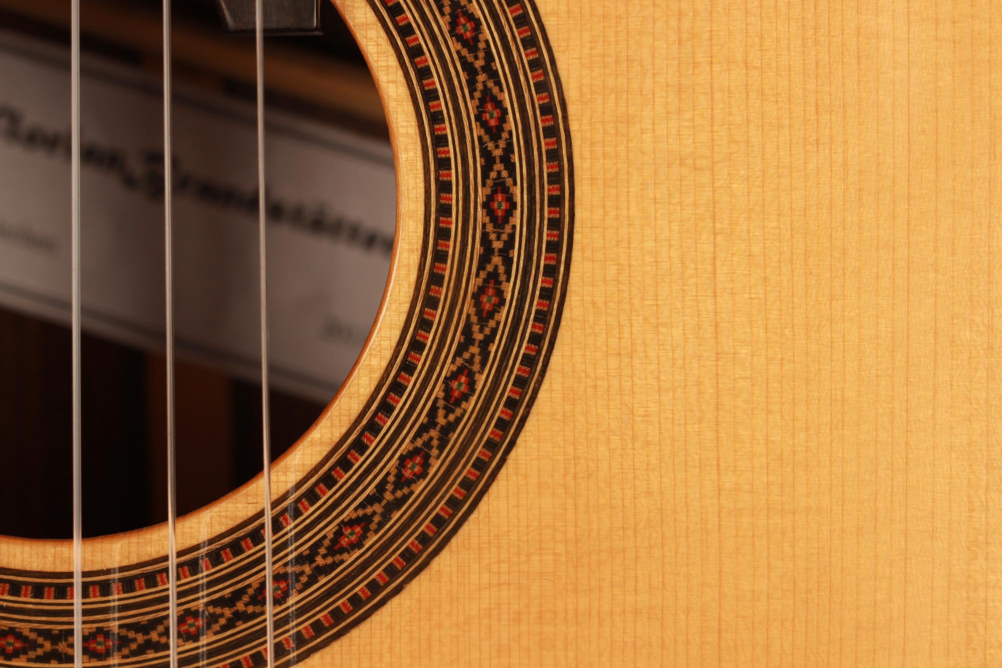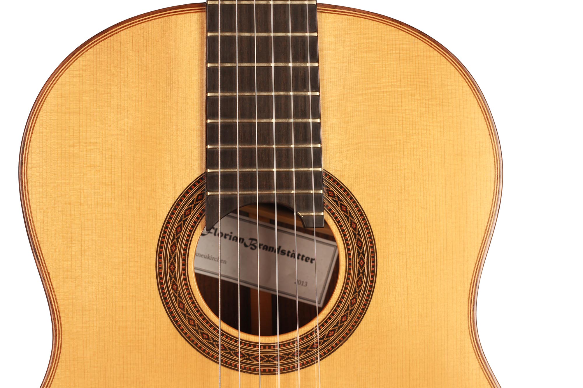 Diese Gitarre wurde von Florian Brandstätter, einem jungen österreichischen Gitarrenbauer gefertigt. Der Boden und Zargen sind aus ostindischem Palisander. Die Decke besteht aus Alpenfichte. Für den Hals wurde Cedro verwendet, welcher sehr leicht ist und eine sehr hohe Stabilität hat. Die Oberfläche wurde mit einer Schellacklackierung veredelt. Im Diskant ist die Gitarre sehr brillant und die Bässe sind sehr stark und kräftig.
