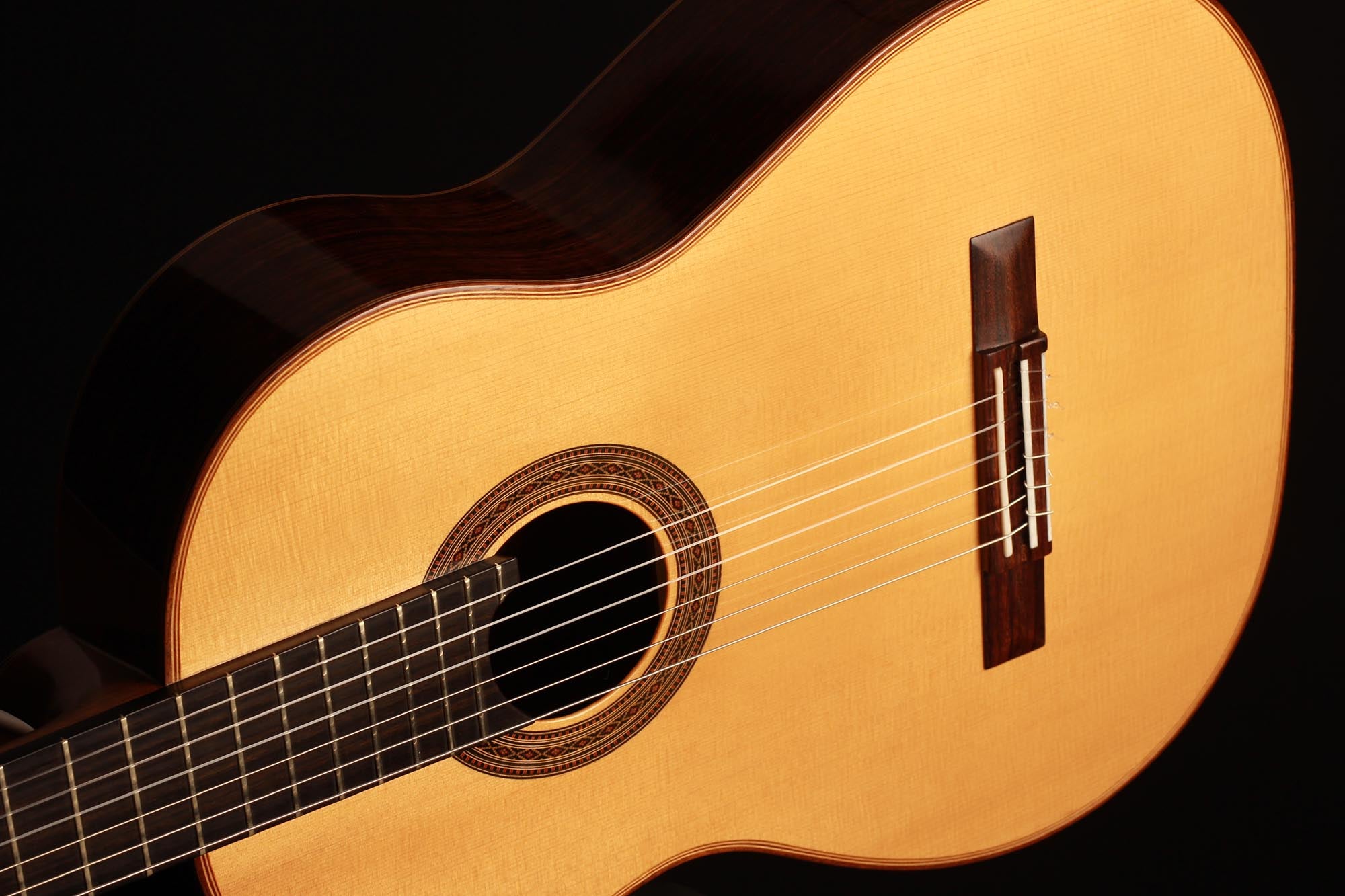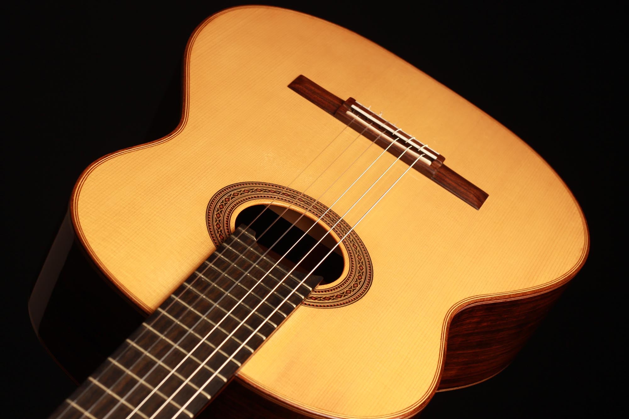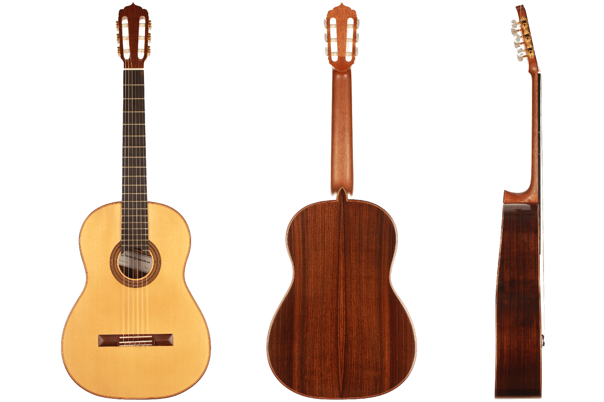 Diese Gitarre wurde von Florian Brandstätter, einem jungen österreichischen Gitarrenbauer gefertigt. Der Boden und Zargen sind aus ostindischem Palisander. Die Decke besteht aus Alpenfichte. Für den Hals wurde Cedro verwendet, welcher sehr leicht ist und eine sehr hohe Stabilität hat. Die Oberfläche wurde mit einer Schellacklackierung veredelt. Im Diskant ist die Gitarre sehr brillant und die Bässe sind sehr stark und kräftig.
