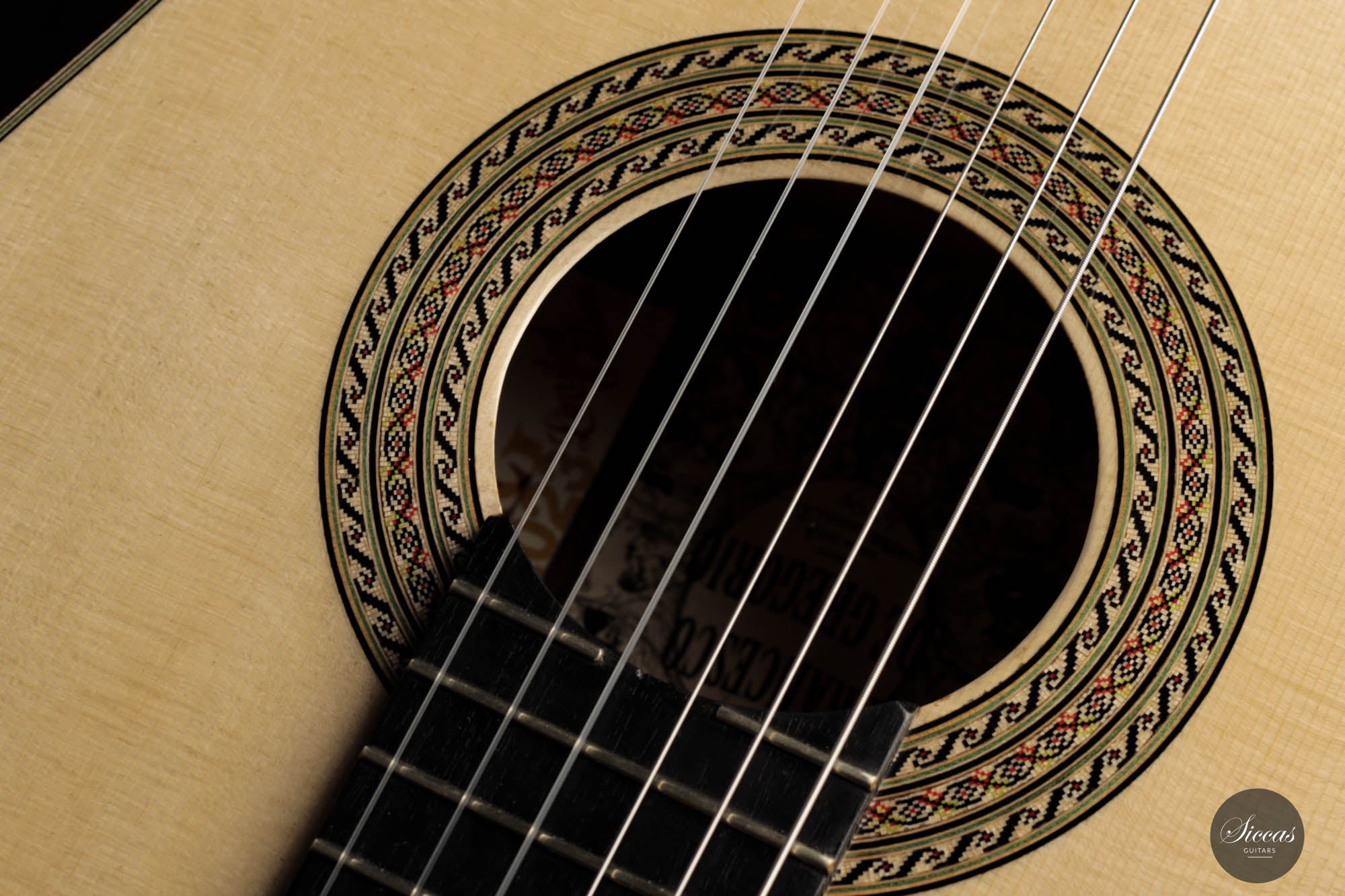 Handwerkliches Geschick gehört seit seiner Kindheit zu den angeborenen Neigungen von Francesco de Gregorio. Sein Großvater konnte praktisch alles mit seinen Händen machen, und Francesco sah ihm gerne dabei zu, wie er Stühle oder Gusseisen baute, weil er wusste, wie er mit seiner Kunst des "Machens" nützliche Dinge für den Alltag schaffen konnte. Im Alter von fünfzehn Jahren begann er, Gitarre zu spielen und brachte es sich selbst bei. Im Alter von achtzehn Jahren wandte er sich mit der gleichen Leidenschaft dem Gitarrenbau zu. Francescos Vorstellung von einem großen Instrument folgt dem ursprünglichen Weg der großen Meister der modernen Gitarre. Er strebt einen reinen, niemals erzwungenen Klang an: den Klang, der schnell durch eine leichte Konstruktion erzeugt wird, mit Respekt für das Holz und seine natürliche Zerbrechlichkeit. Beim Bau seiner Instrumente sucht er nach ästhetischer Schönheit und angemessenem Geschmack in verschiedenen Kombinationen.