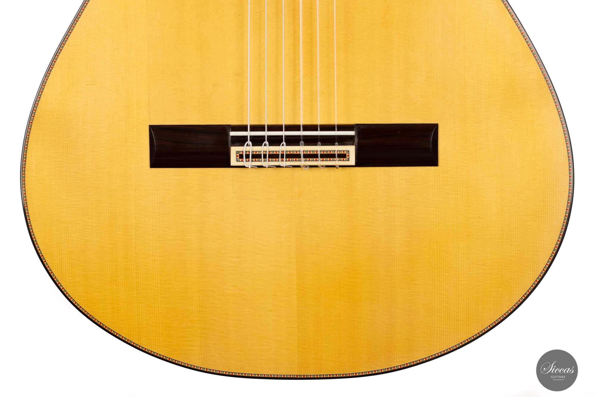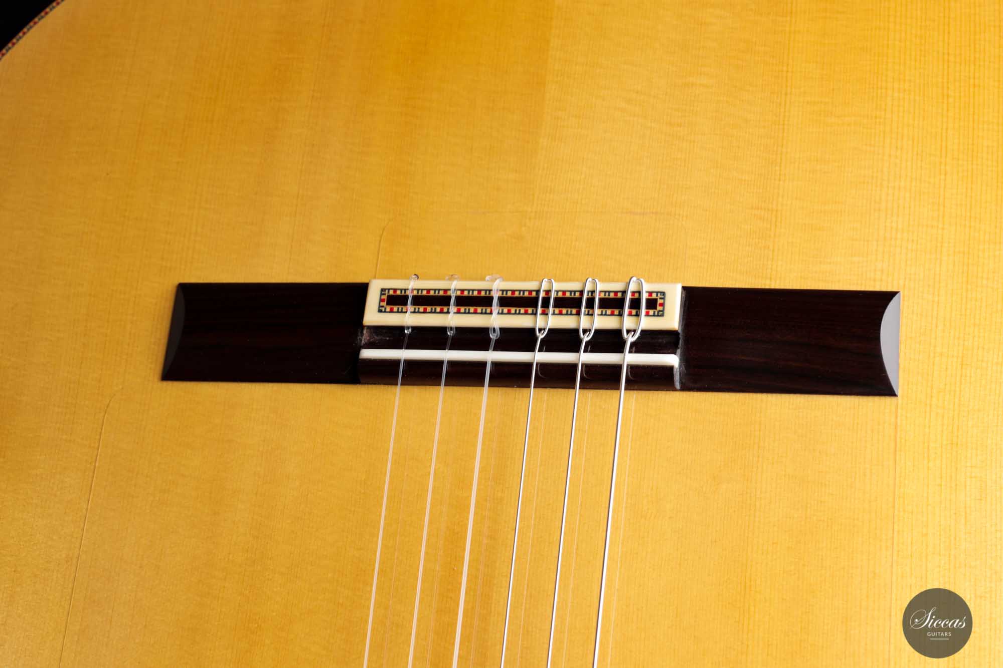 Diese brandneue 2022 Francisco Barba kommt direkt aus der Werkstatt des spanischen Meisters. Mit nur 1420 Gramm ist sie sehr leicht und tief gestimmt, etwa auf Fis. Die sehr funktionellen Gotoh-Mechaniken sorgen für eine exzellente Stimmung, und mit ihrer typischen Fichten-Zypressen-Kombination ist sie eine hervorragende, in Sevilla gebaute Flamencogitarre. Die Mensur dieser Gitarre ist Standard für Barbas Flamencogitarren: eine 65,5 cm Mensur kombiniert mit einem 53 mm Sattel. Die niedrige Saitenlage von 2,6 mm / 2,3 mm macht diese Gitarre zu einem absoluten Highlight beim Spielen.
