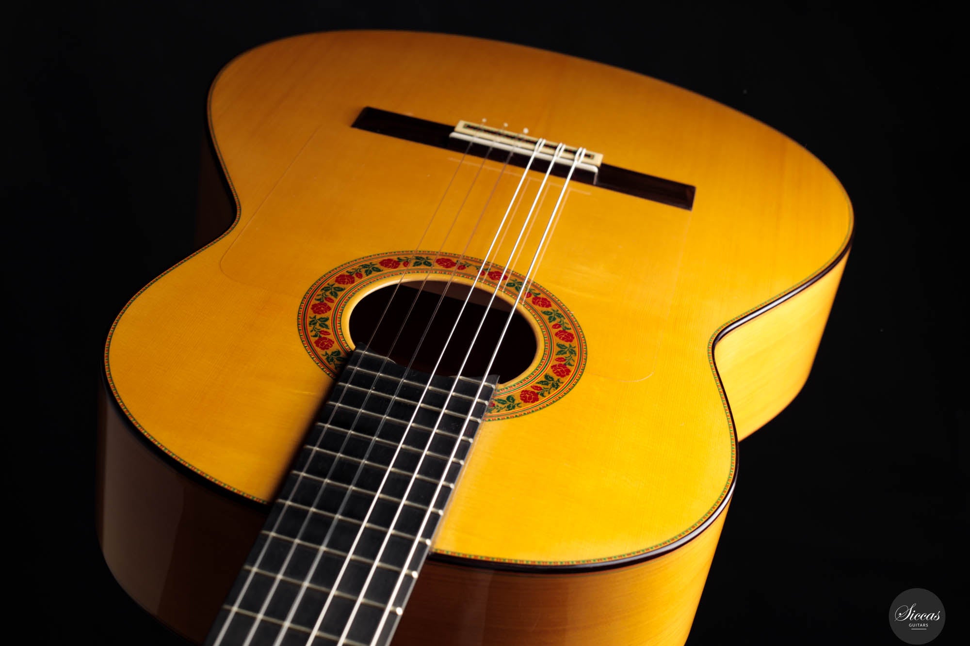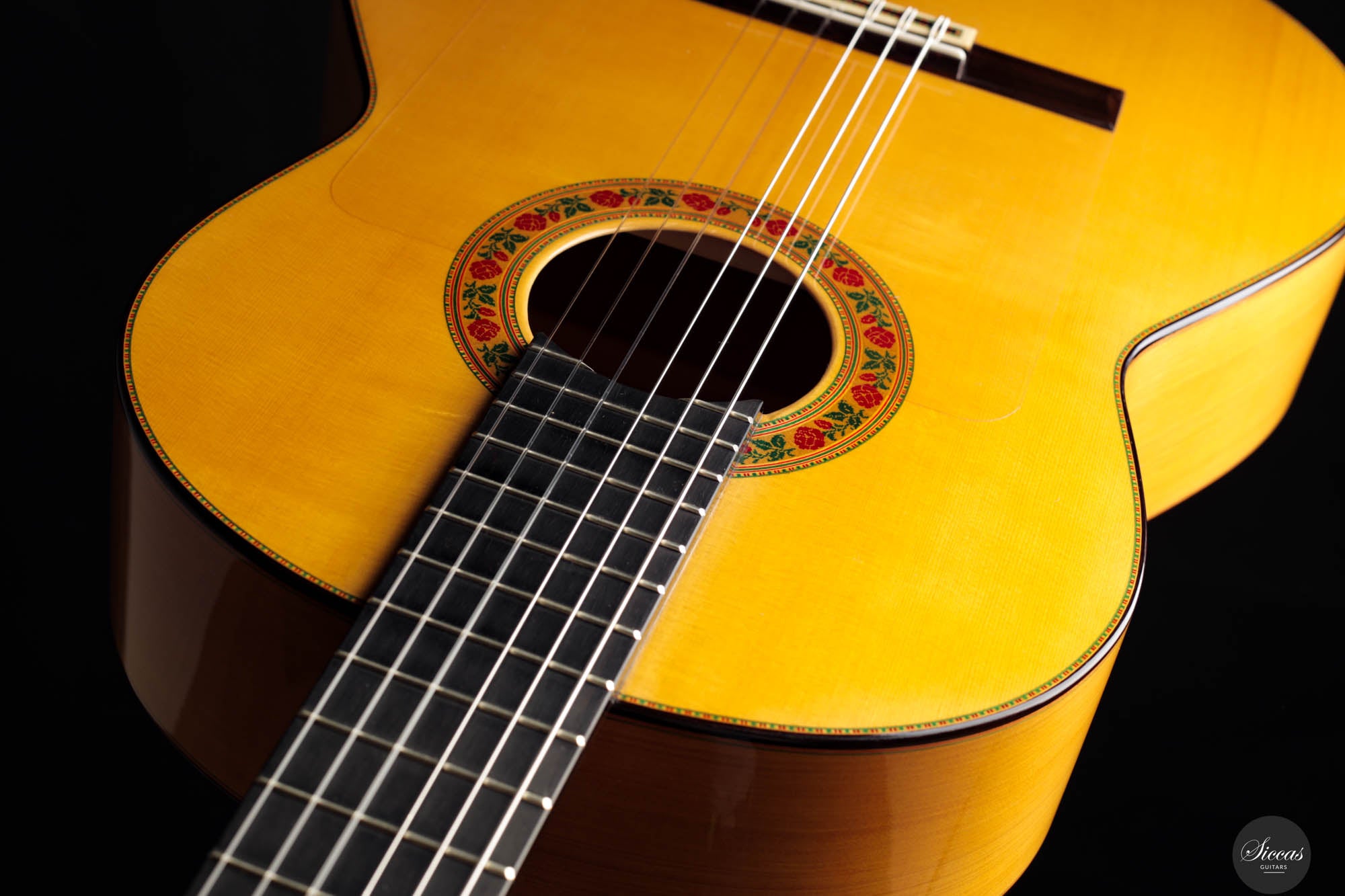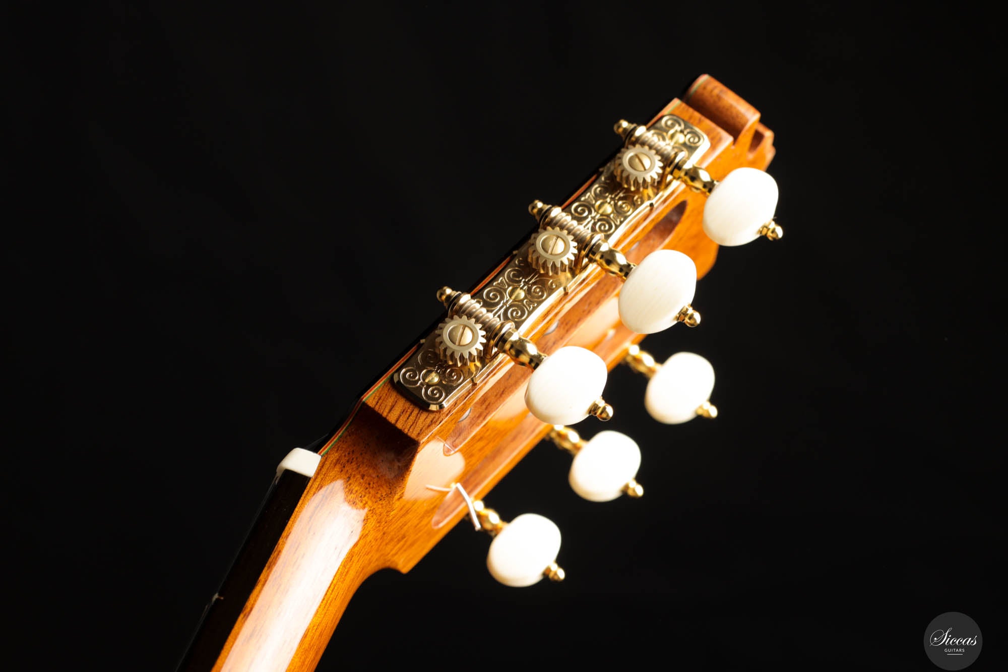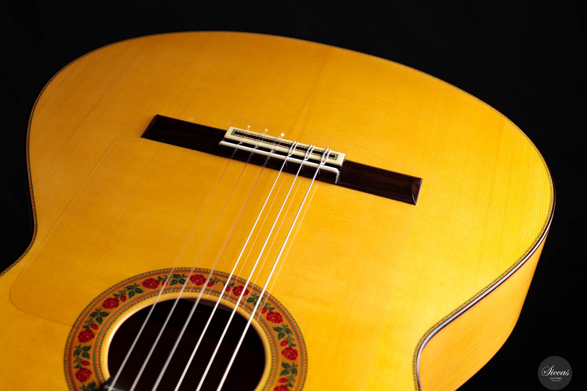 Die Mensur und die Sattelbreite dieser Francisco-Barba-Gitarre sind auf die Anforderungen von Flamencogitarristen zugeschnitten, mit einer Standard-Mensur von 65,5 cm und einem Sattel von 53 mm, was ein klassisches Gefühl gewährleistet. Was diese Gitarre auszeichnet, ist ihre außergewöhnlich niedrige Saitenlage, eingestellt auf 2,5 mm und 2 mm, was die schnellen Fingerbewegungen erleichtert, die das Flamencospiel erfordert. Dieses Merkmal, kombiniert mit der allgemeinen Bauqualität und den Materialien der Gitarre, macht sie zu einem absoluten Highlight beim Spielen, und bietet sowohl Benutzerfreundlichkeit als auch einen reichen, authentischen Flamenco-Klang.