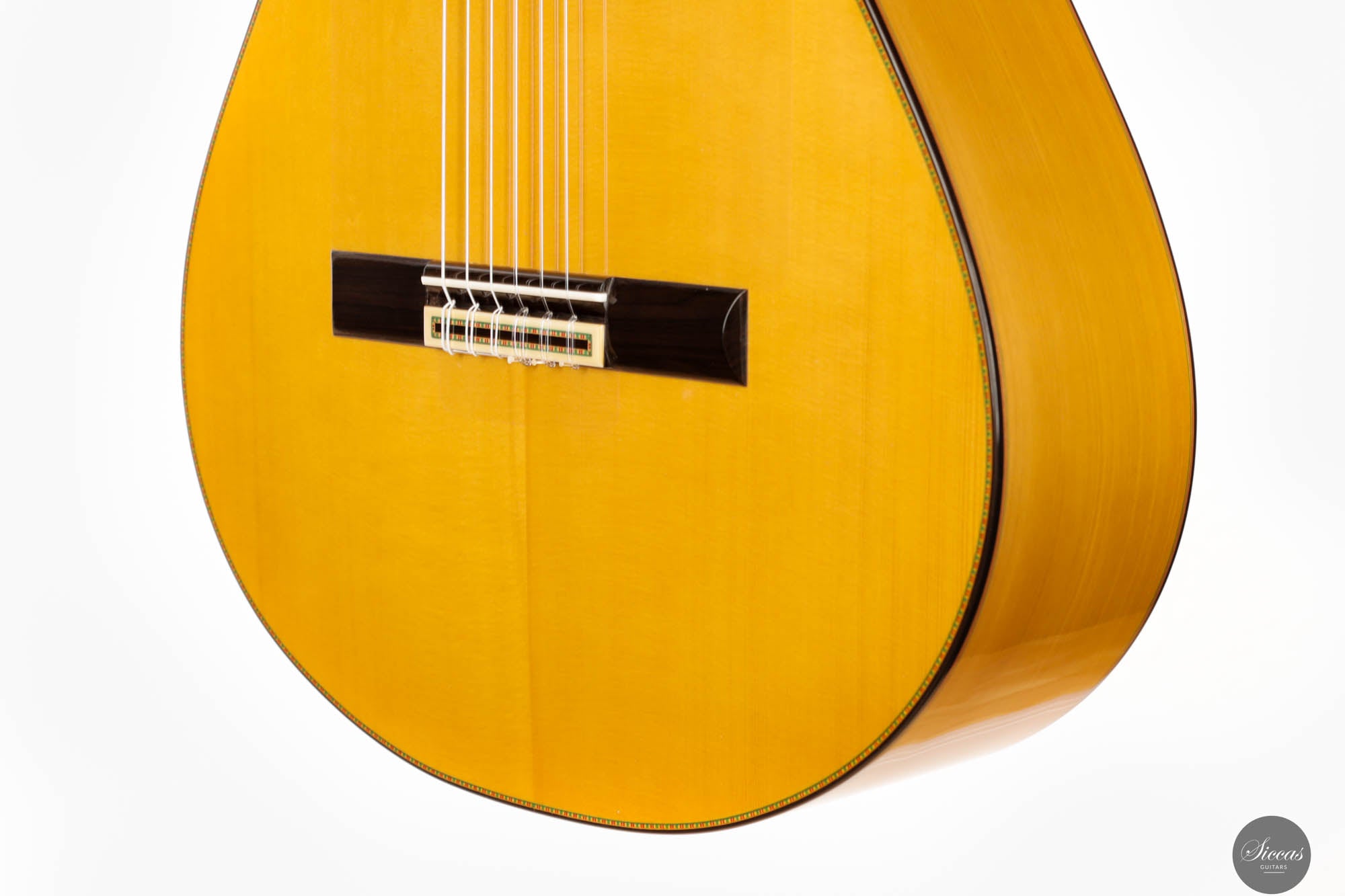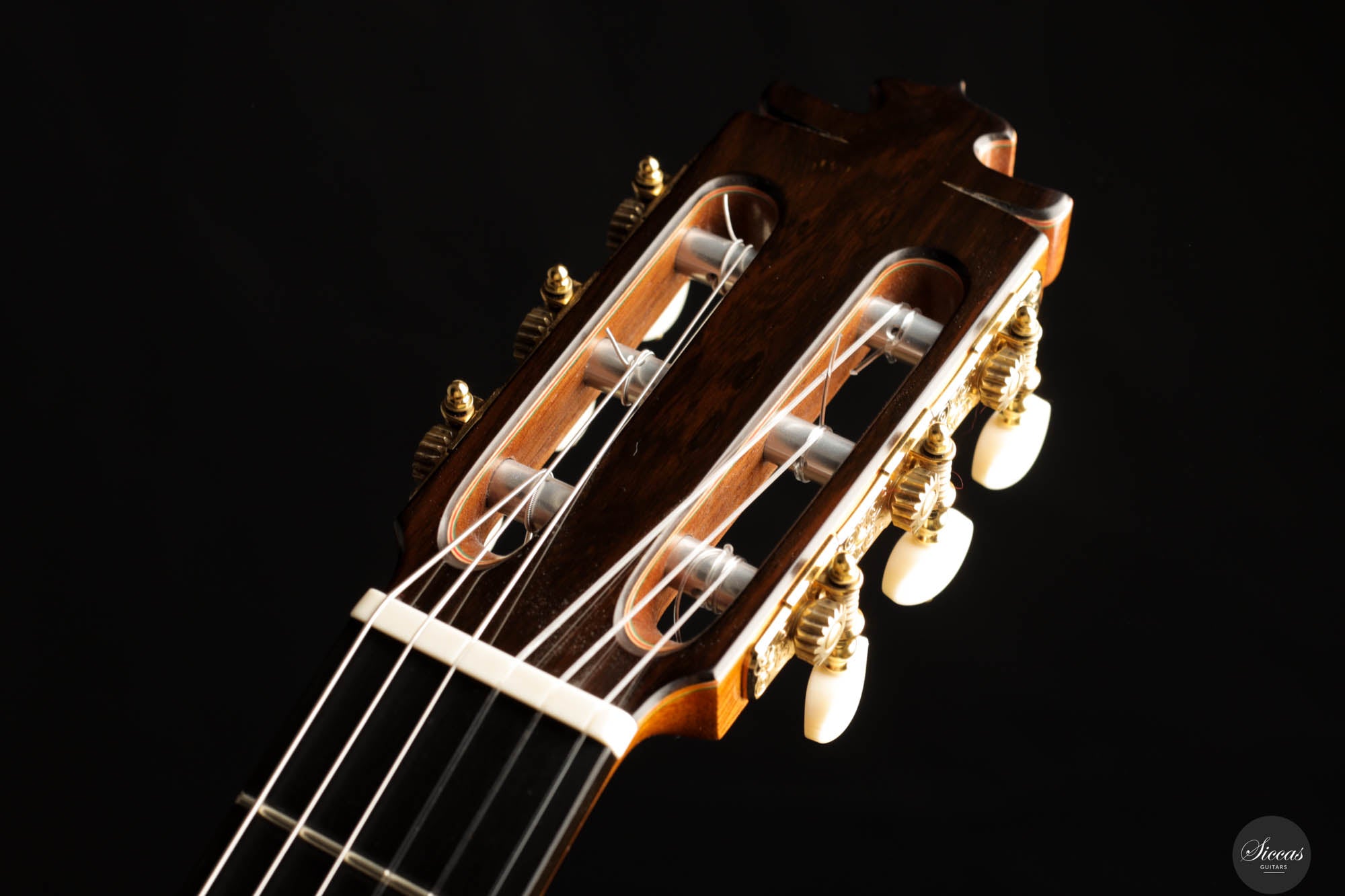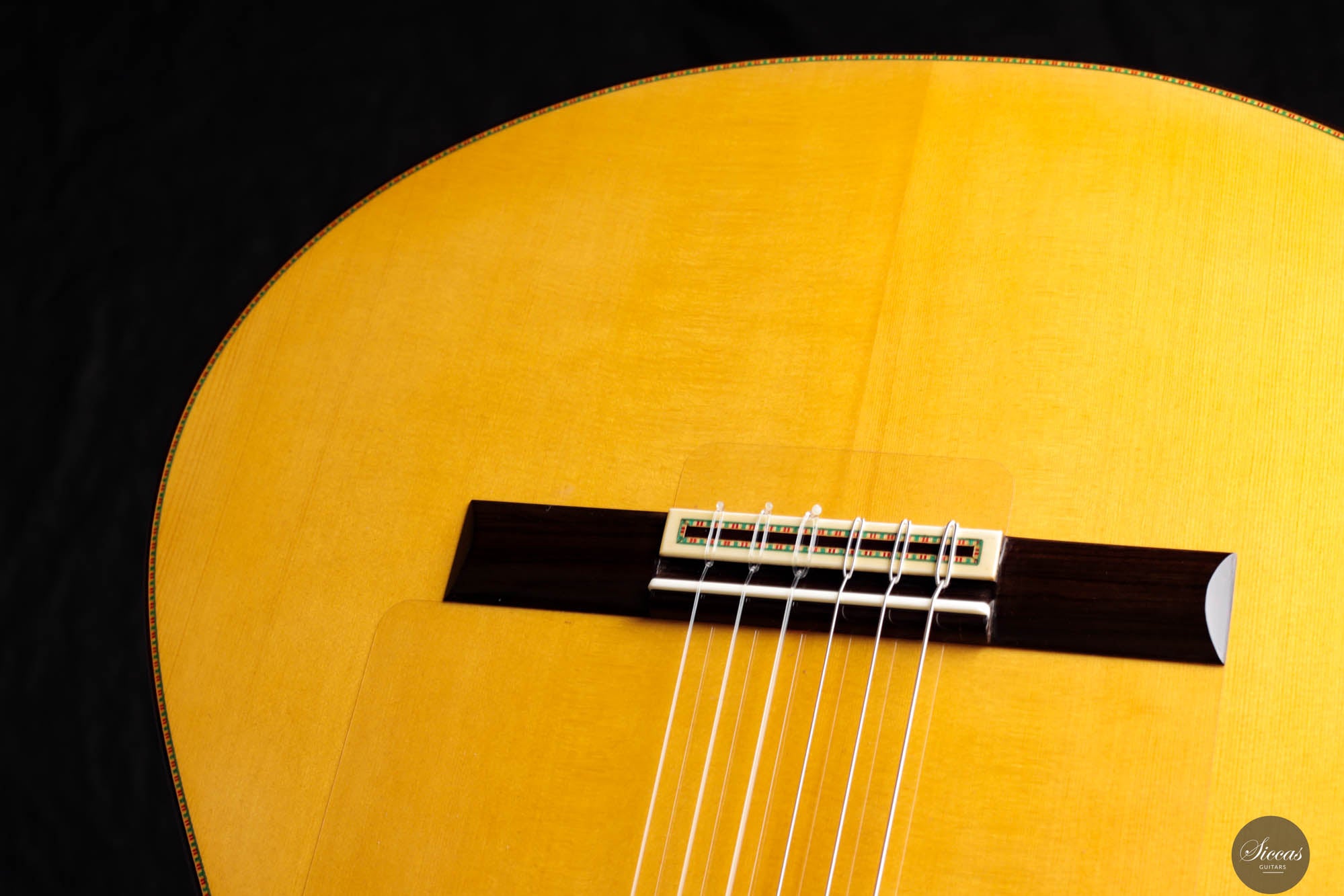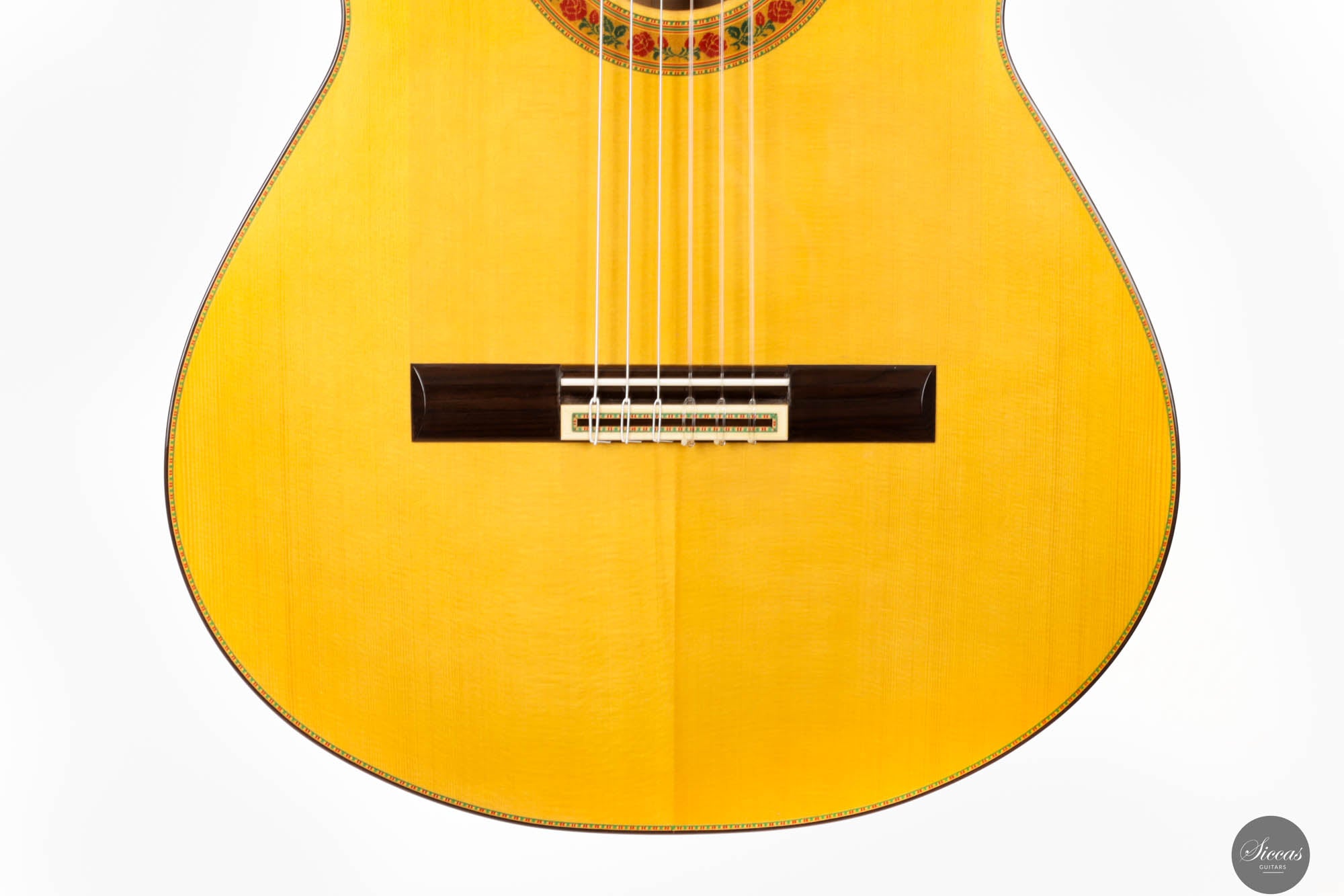 Die Mensur und die Sattelbreite dieser Francisco-Barba-Gitarre sind auf die Anforderungen von Flamencogitarristen zugeschnitten, mit einer Standard-Mensur von 65,5 cm und einem Sattel von 53 mm, was ein klassisches Gefühl gewährleistet. Was diese Gitarre auszeichnet, ist ihre außergewöhnlich niedrige Saitenlage, eingestellt auf 2,5 mm und 2 mm, was die schnellen Fingerbewegungen erleichtert, die das Flamencospiel erfordert. Dieses Merkmal, kombiniert mit der allgemeinen Bauqualität und den Materialien der Gitarre, macht sie zu einem absoluten Highlight beim Spielen, und bietet sowohl Benutzerfreundlichkeit als auch einen reichen, authentischen Flamenco-Klang.