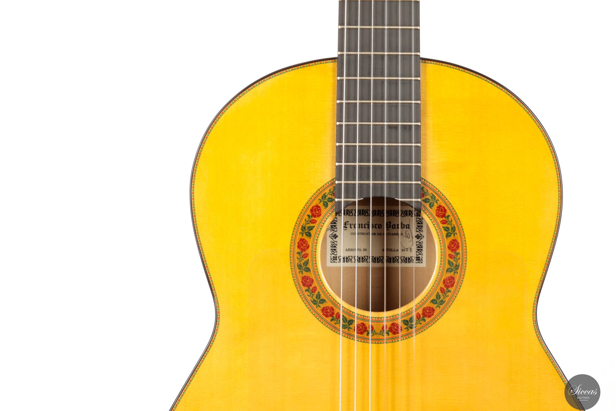 Francisco Barba wurde 1939 in Sevilla geboren. In den frühen 1960er Jahren begann er zusammen mit seinem Vater als Zimmermann zu arbeiten. Danach beschloss er, Gitarrenbauer zu werden und begann eine Karriere, die zu einer der erfolgreichsten in der modernen Welt des Flamenco-Gitarrenbaus werden sollte. Maestro Francisco Barba baut hauptsächlich Flamencogitarren, und seine Instrumente werden für ihren außergewöhnlichen, einzigartigen Klang mit schönen Bässen und singenden Höhen gelobt. Heute gilt er als einer der besten lebenden Flamencogitarrenbauer.