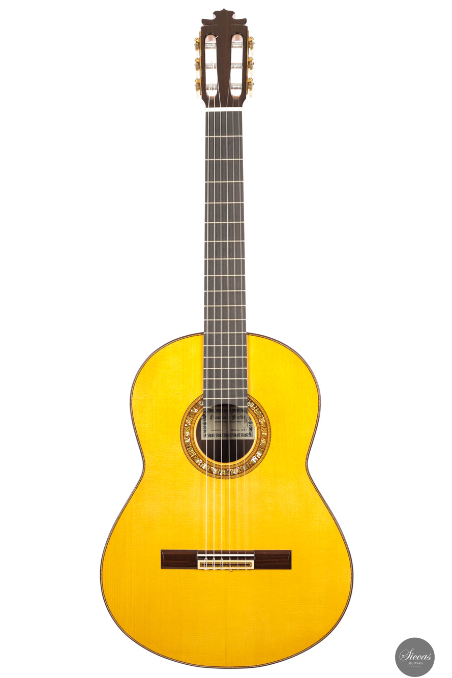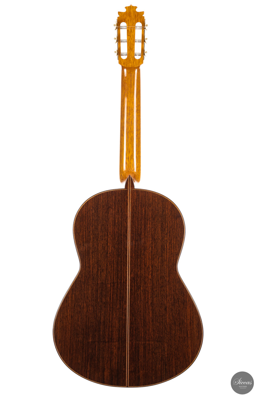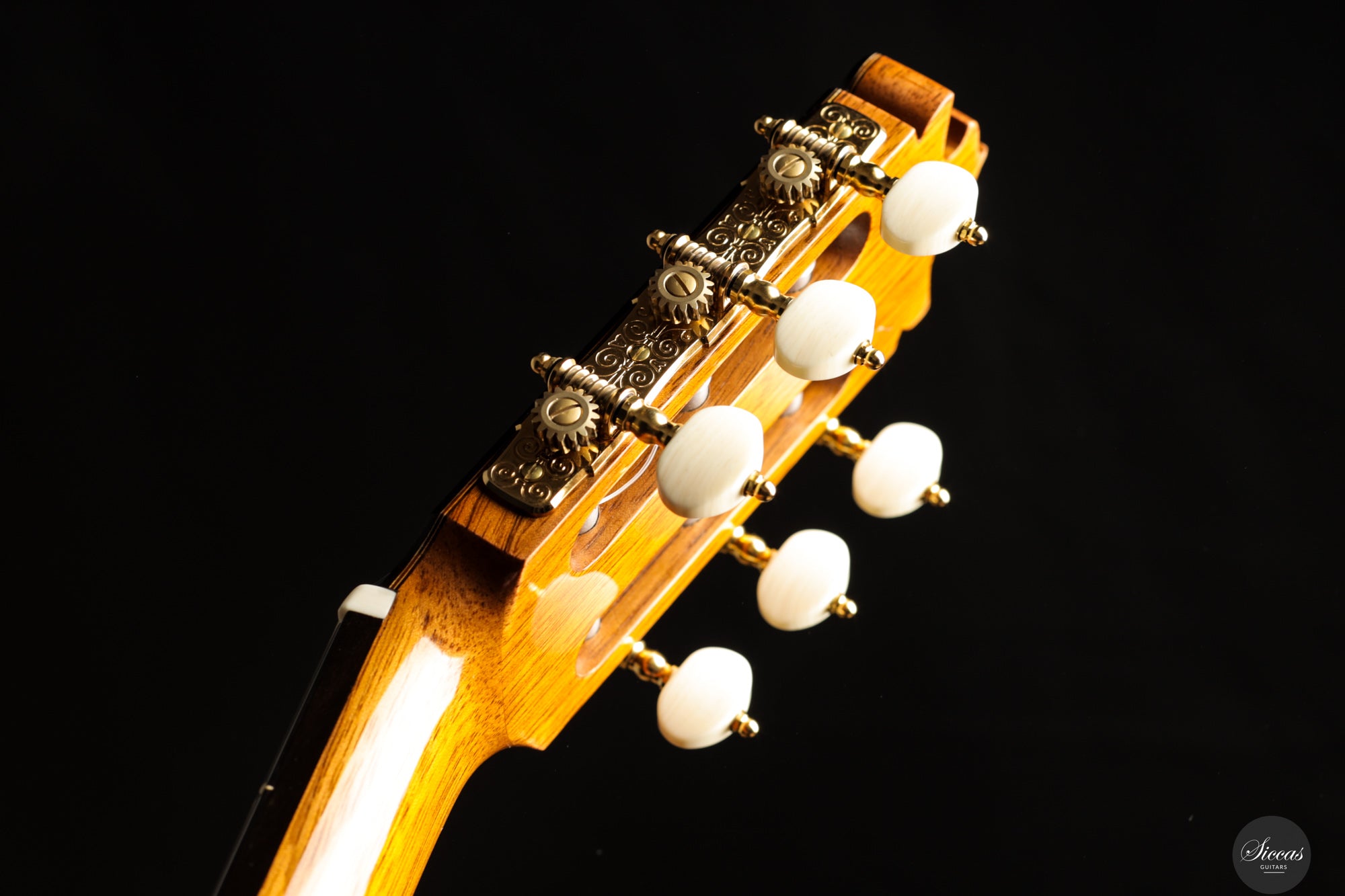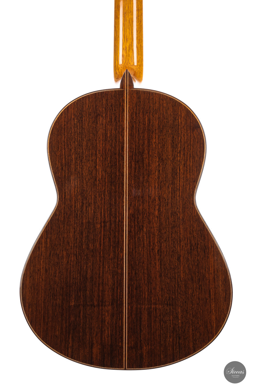 Diese klassische Gitarre aus dem Jahr 2025 wurde exklusiv für Siccas Guitars gebaut und stellt ein seltenes Beispiel eines traditionellen Modells von Francisco Barba dar. Die Fichtendecke ist schellackpoliert und arbeitet mit dem indischen Palisanderkorpus zusammen um einen charakteristischen spanischen Klang mit einer feinen modernen Präsenz zu erzeugen. Die Konstruktion zeigt Barbas langjährige Erfahrung im präzisen Abstimmen eines Instrumentes sodass jedes Register offen und klangvoll bleibt.