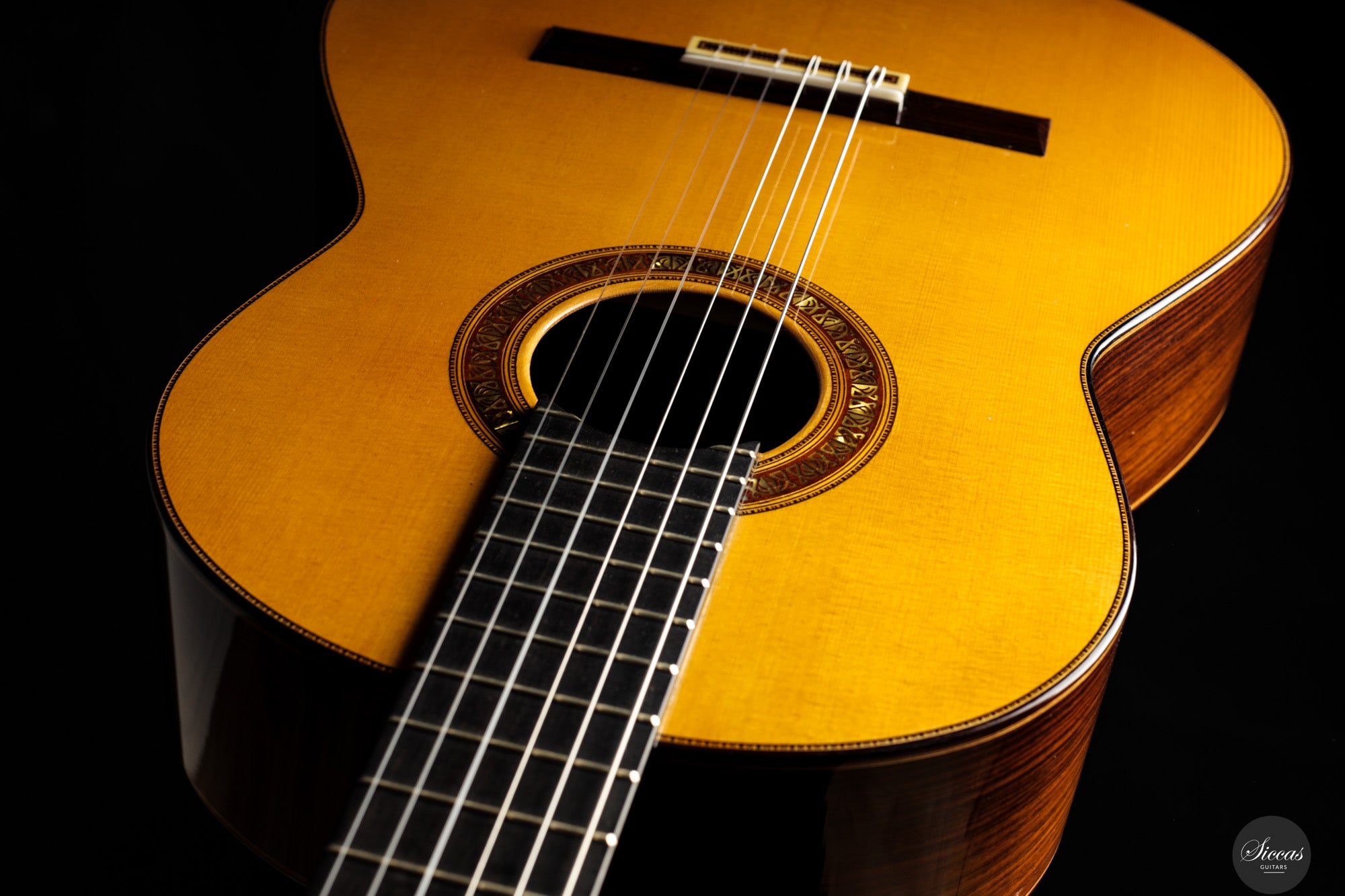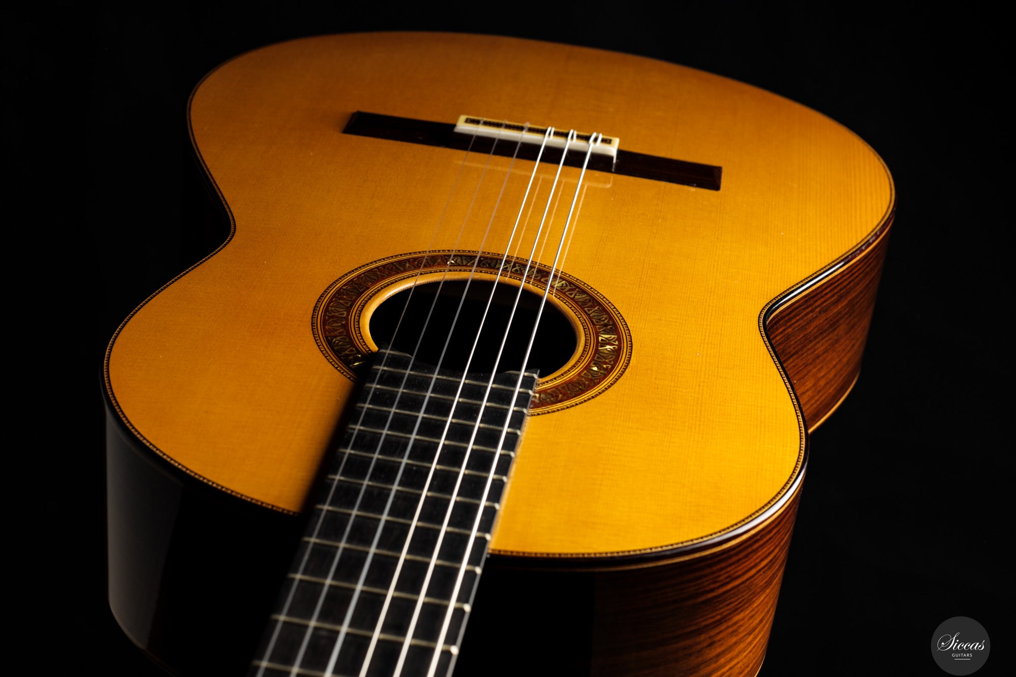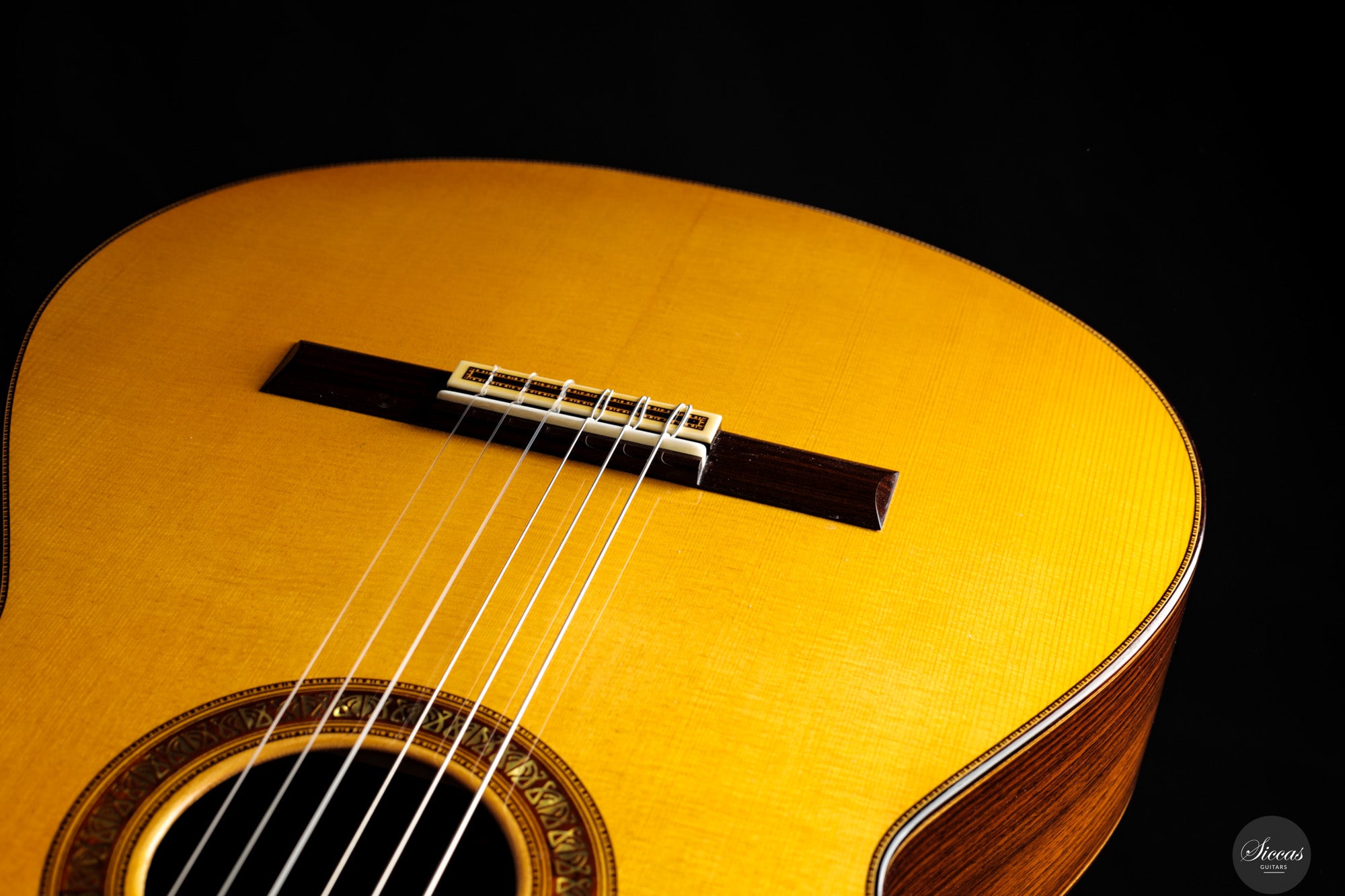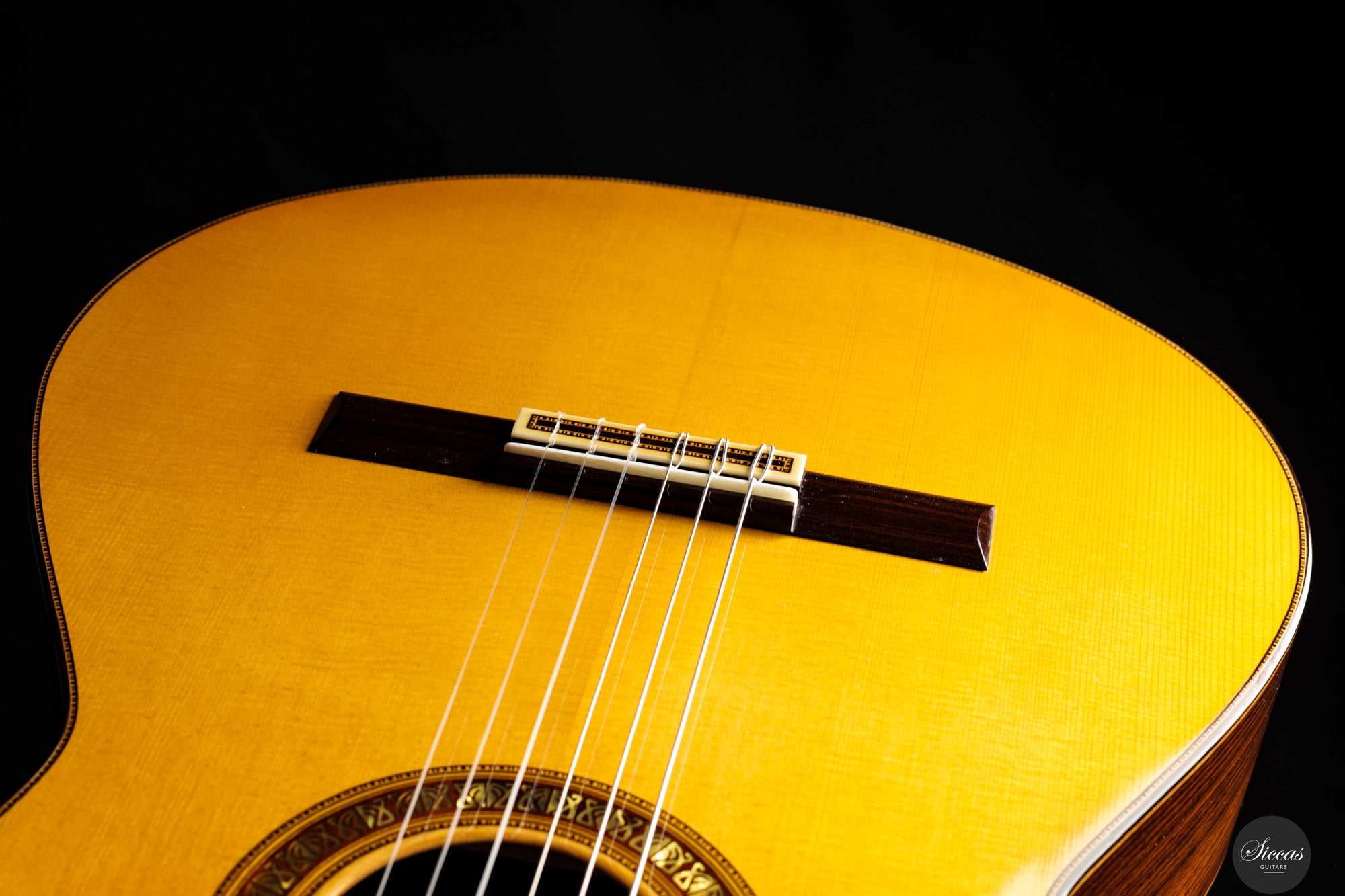 Eine traditionelle klassische Gitarre aus dem Jahr 2025 von Francisco Barba gebaut exklusiv für Siccas Guitars mit Fichtendecke und indischem Palisander. Sie bietet einen leuchtenden spanischen Klang mit klaren gesanglichen Höhen kräftigen Bässen und einer ausdrucksvollen Balance für nuancenreiches Spiel.
