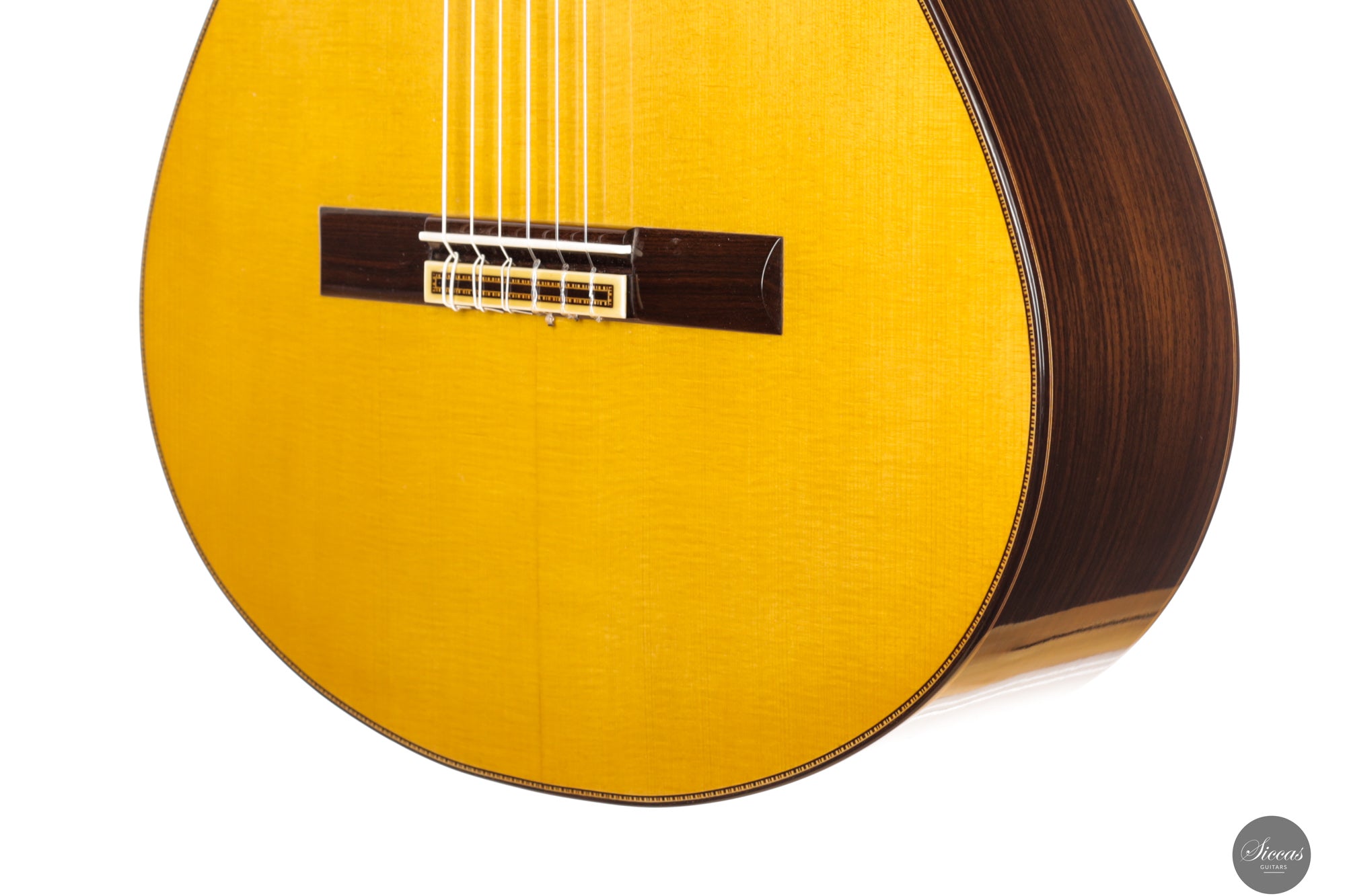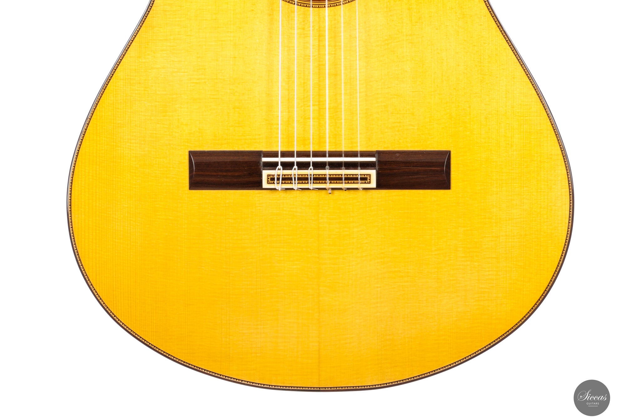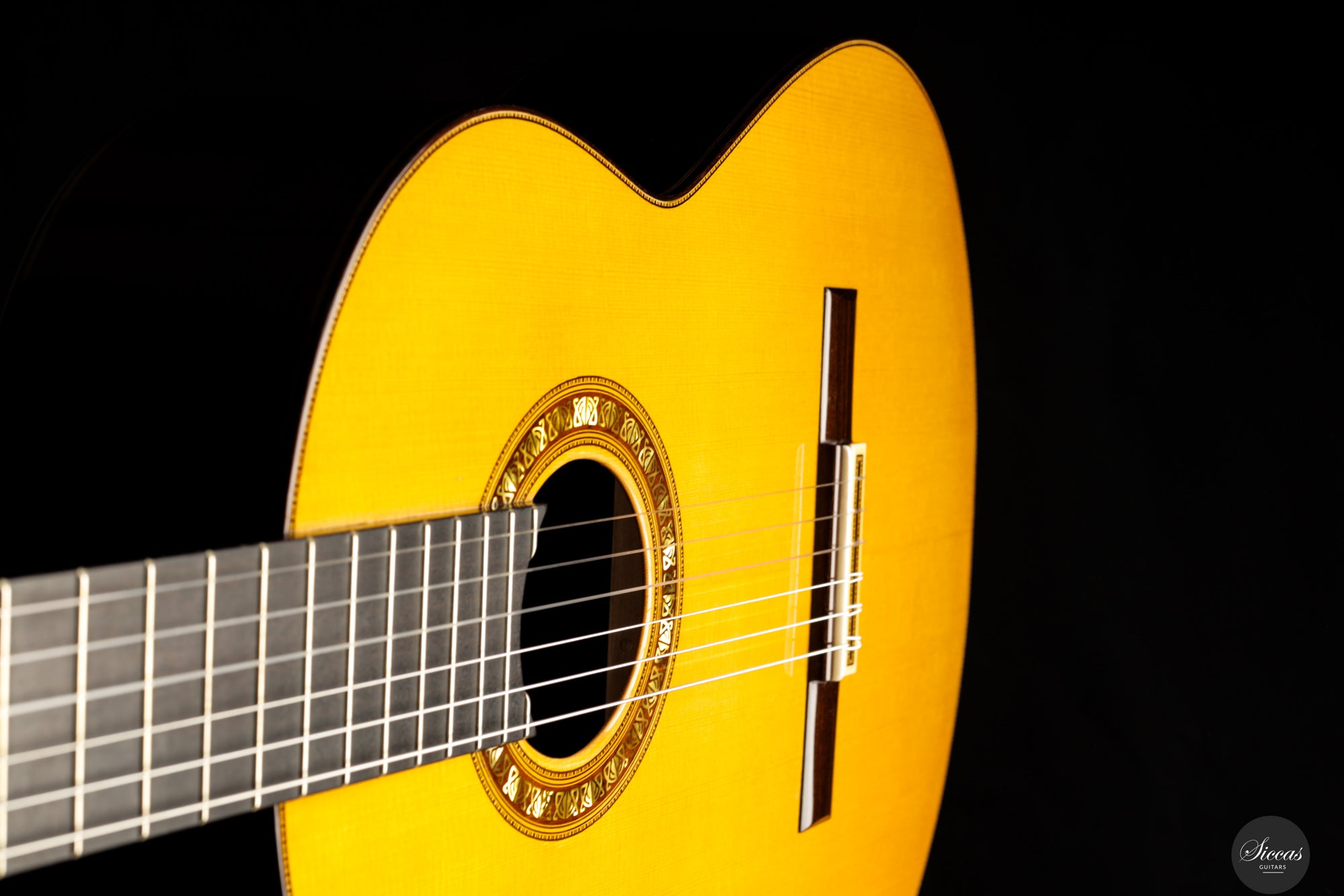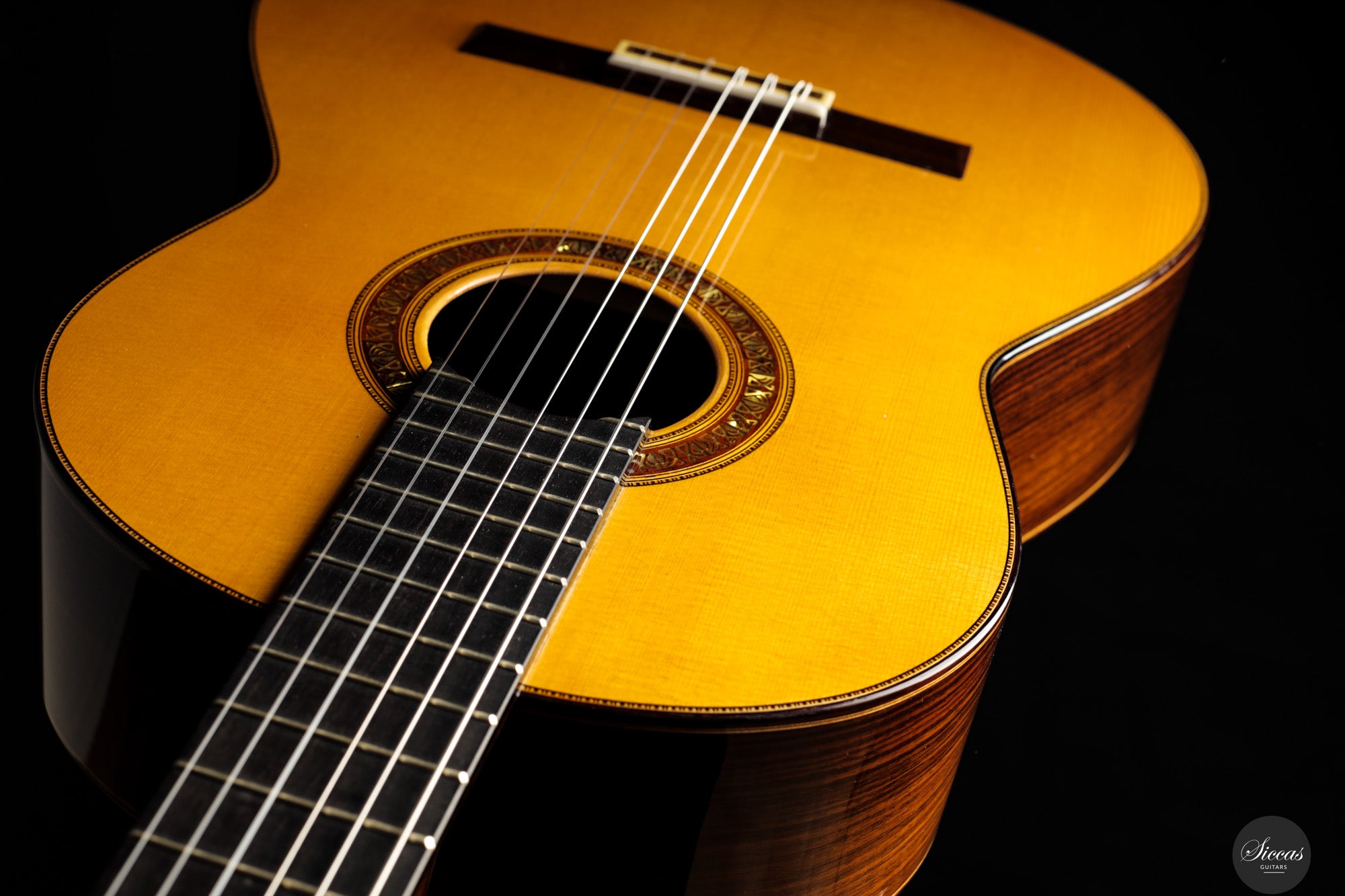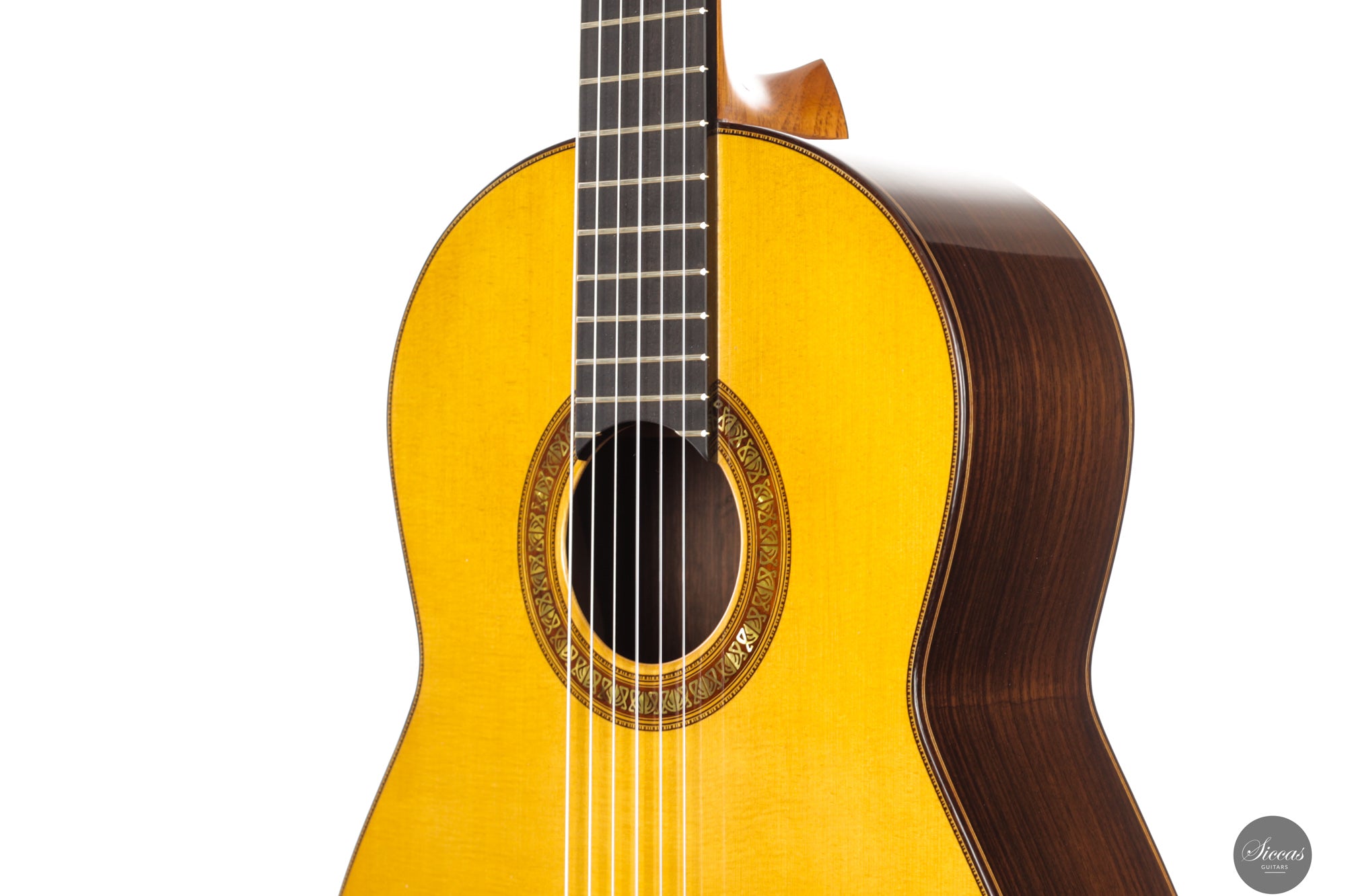 Eine traditionelle klassische Gitarre aus dem Jahr 2025 von Francisco Barba gebaut exklusiv für Siccas Guitars mit Fichtendecke und indischem Palisander. Sie bietet einen leuchtenden spanischen Klang mit klaren gesanglichen Höhen kräftigen Bässen und einer ausdrucksvollen Balance für nuancenreiches Spiel.