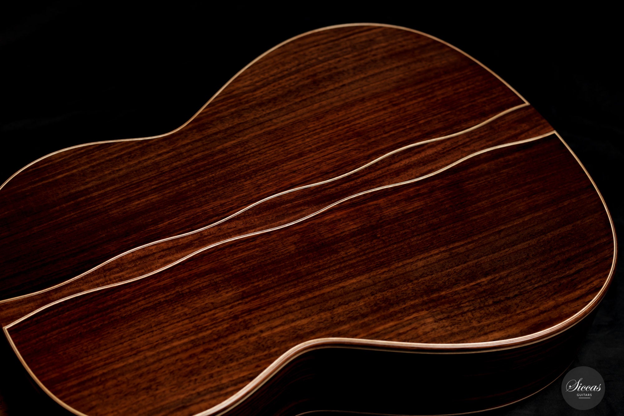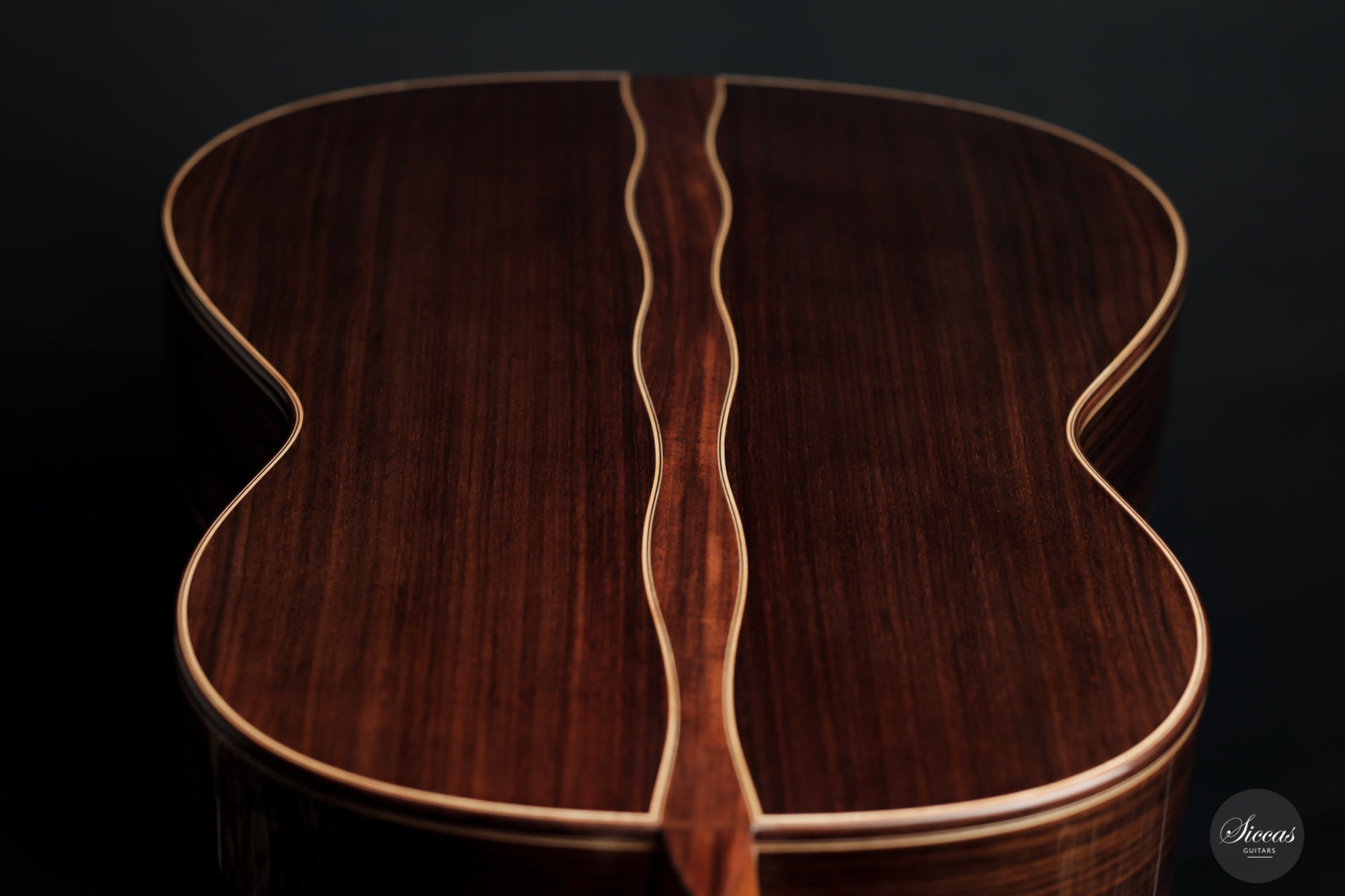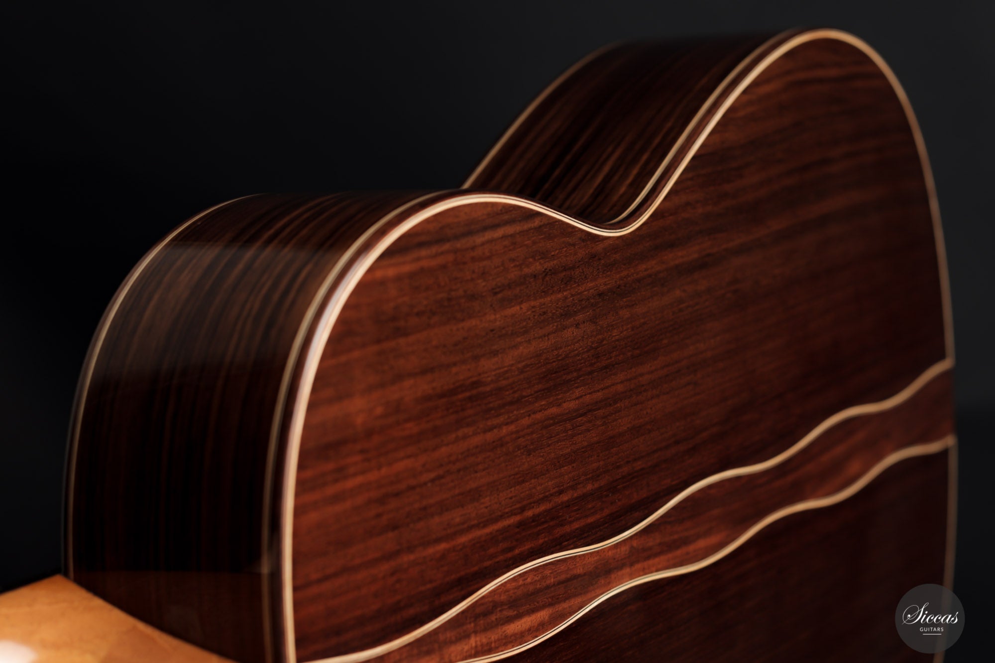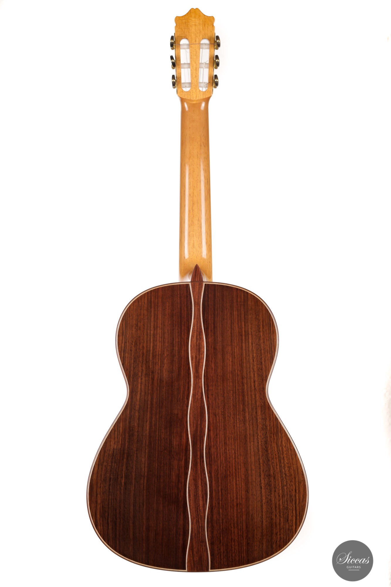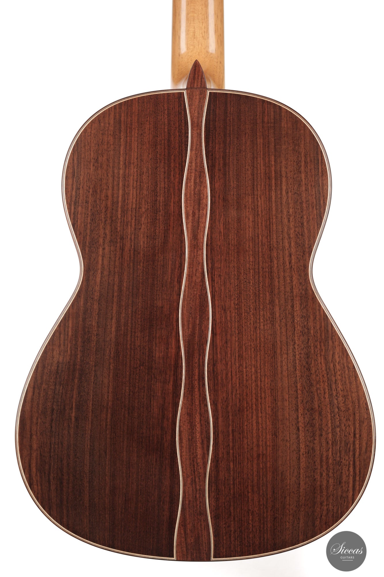 Already the appearance of this stunningly built guitar reveals why this model received an award at the guitar building competition. The instrument is tastefully decorated and the fine inlay work, which was carried out with utmost precision, gives the instrument a gorgeous and unique aesthetic. The sound of this Homenaje model impresses with its powerful and well-balanced sonority. The pleasantly crisp basses support the clear and singing trebles excellently and the playing feel is spot on. All in all, this is a traditionally built guitar of the highest level, which is very versatile and spreads a lot of playing enthusiasm.