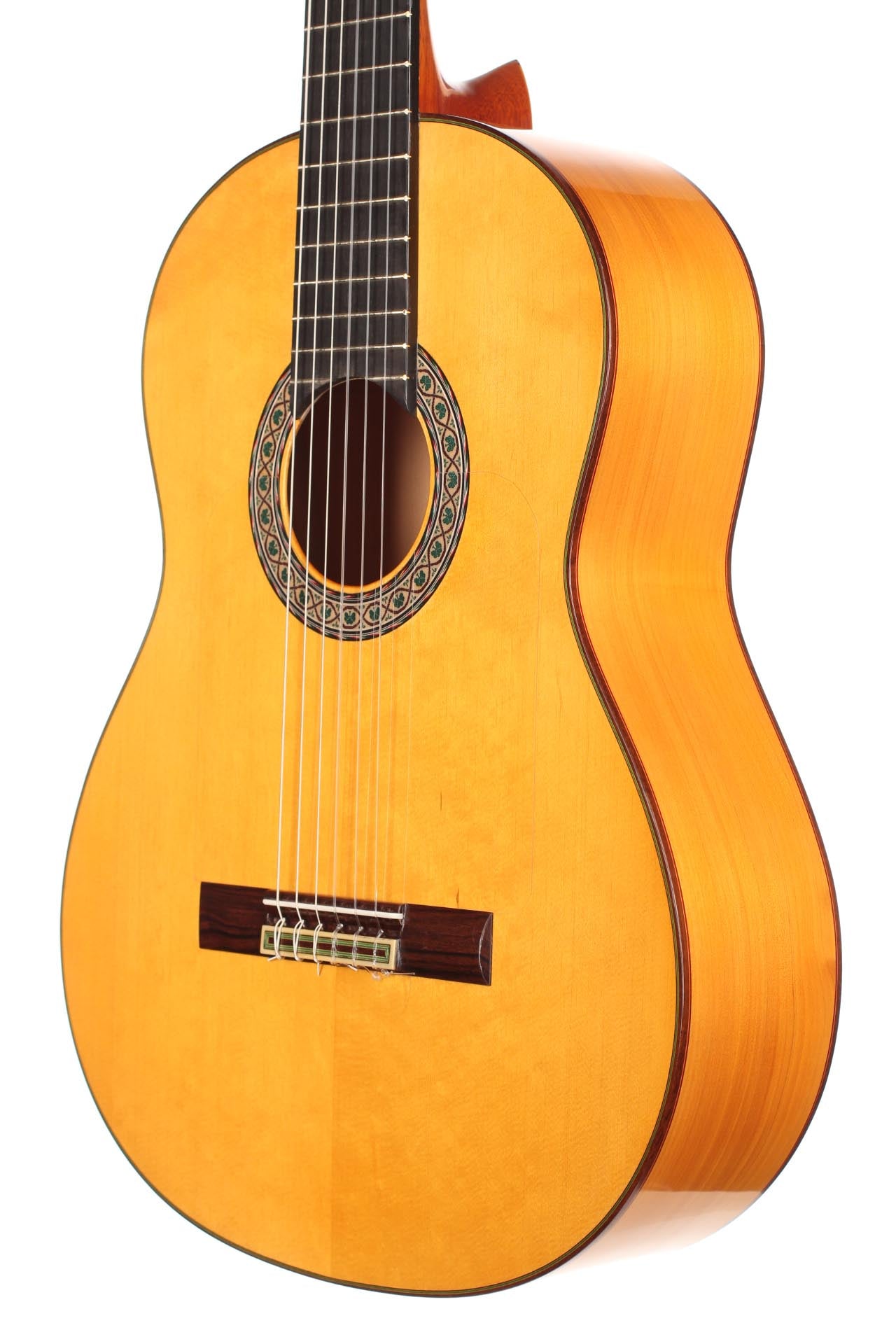 The sound of this flamenco guitar is astonishing, despite being new. In fact, the sound is really mature, which can mostly be found in older high-quality guitars. The basses are bright and powerful. The trebles are vivid, with spectacular brightness and volume. The tuners are made by Fustero. A hard-shell case is included. This guitar is Cites-free (CF).