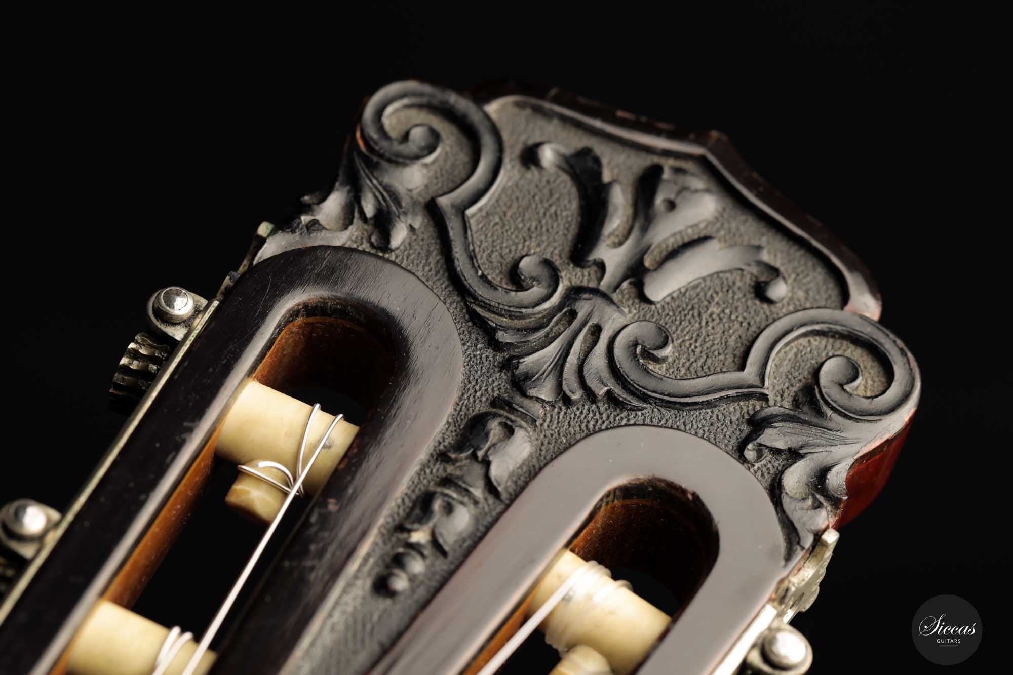 Francisco Simplicio (1874-1932) begann schon in jungen Jahren eine Schreinerlehre in der Werkstatt von Masriera & Vidal. Er arbeitete neunzehn Jahre lang als Schreiner, bevor er seine Werkstatt 1917 aufgrund der politischen Unruhen jener Zeit schließen musste. Da er arbeitslos war, trat Simplicio als Geselle in die Werkstatt seines langjährigen Freundes, des inzwischen berühmten Enrique Garcia, ein. Als Enrique Garcia 1922 starb, übernahm Simplicio seine Werkstatt und baute drei Jahre lang unter Enrique Garcias Namen weiter Gitarren. Er war ein außerordentlich handwerklich begabter Gitarrenbauer und ein bedeutender zeitgenössischer Kunstschaffender Barcelonas. Die geschnitzte Kopfplatte seiner Gitarren und die kunstvollen Randeinlagen zeugen von seinem handwerklichen Geschick. Francisco Simplicio baute zwischen 1922 und 1932 336 Gitarren unter seinem Namen. Mit ihrem einzigartigen Art-Déco-Look, den reichhaltigen Intarsien-Arbeiten und ihrem anmutigen Klang gehören die Instrumente von Francisco Simplicio zweifellos zu den bedeutendsten spanischen Gitarren aller Zeiten.