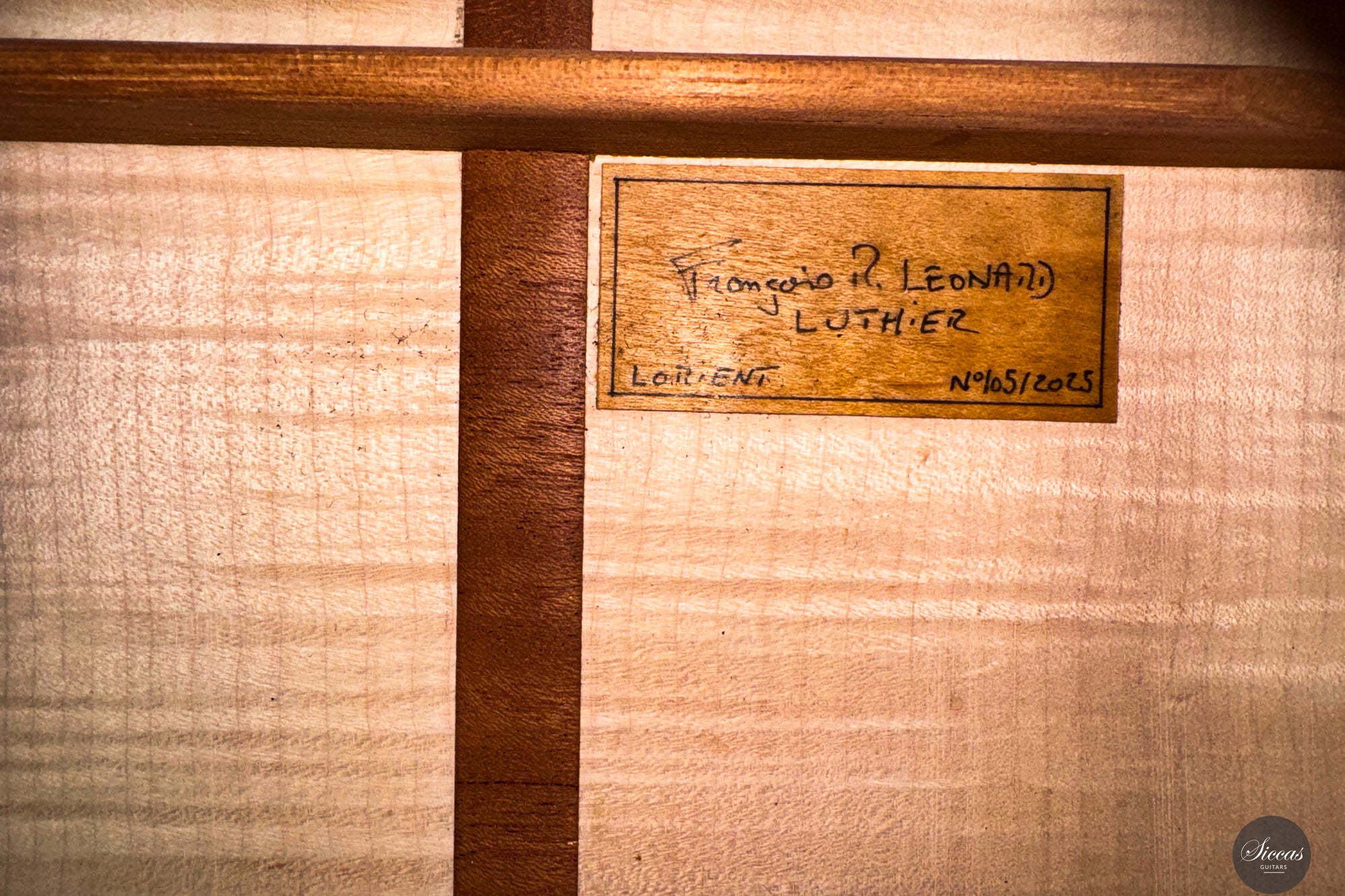 François Leonard baut seit fast zwanzig Jahren klassische Gitarren in seiner Werkstatt in Lorient, Frankreich. Seine Ausbildung wurde durch die Zusammenarbeit mit englischen Gitarrenbauern sowie durch seine Tätigkeit in der Lakewood-Werkstatt in Deutschland geprägt. Besonders prägend war die gelegentliche Unterstützung durch Dominique Field, wodurch sich ein klarer Bezug zur französischen Gitarrenbautradition entwickelte. Leonards Instrumente verbinden klangliche Klarheit, Wärme und Präzision und stehen in der Tradition französischer Meister wie Daniel Friederich und Dominique Field.