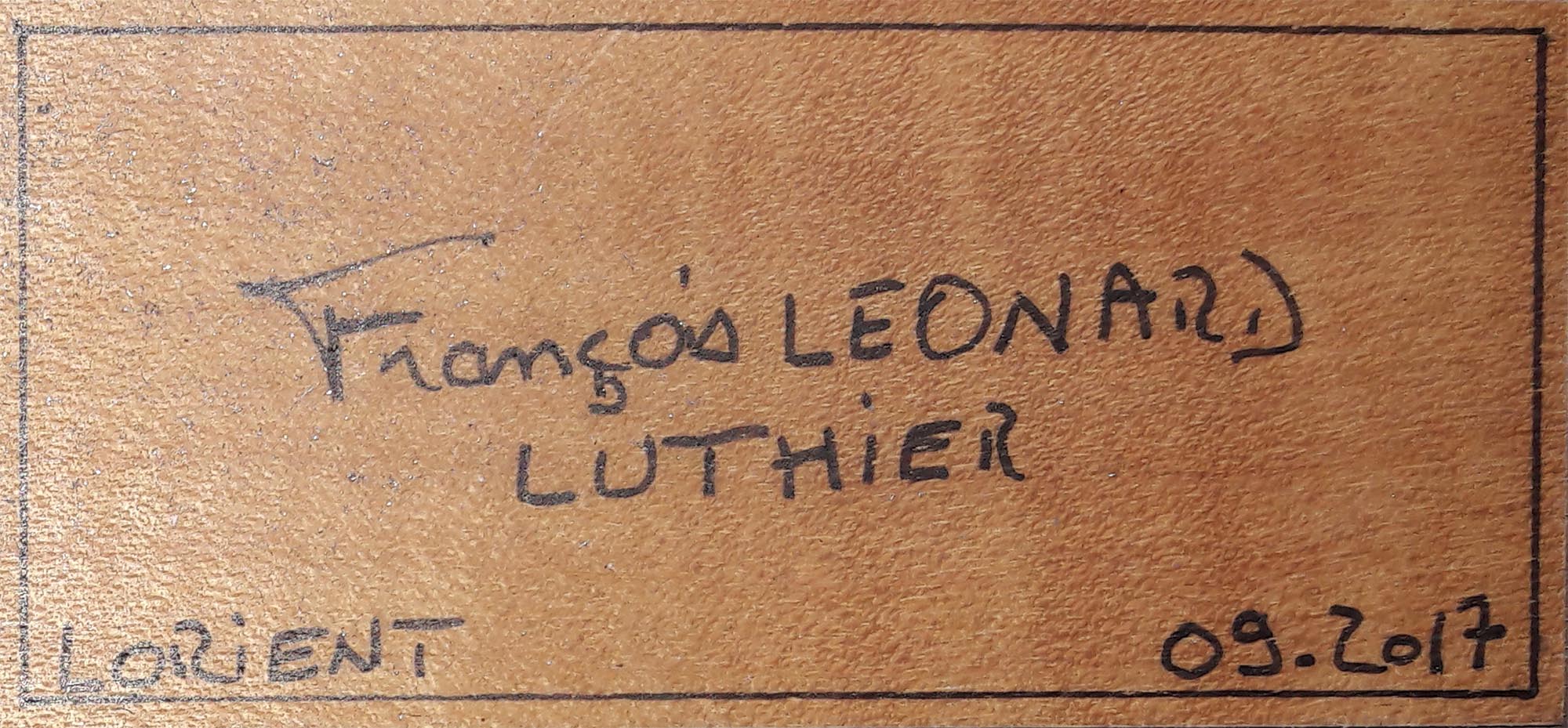 François Regis Leonard ist ein französischer Gitarrenbauer aus Lorient. Seit über 18 Jahren baut er Gitarren und hatte die Gelegenheit von Gitarrenbauern in England und Deutschland zu lernen, wo er in der Werkstatt des Gitarrenherstellers Lakewood arbeitete. Große Meister wie Daniel Friederich und Dominique Field haben ihm die ästhetischen und baulichen Aspekte der französischen Gitarrenbau-Tradition nähergebracht. Klanglich ist François die „harmonische Präsenz“ seiner Instrumente besonders wichtig.