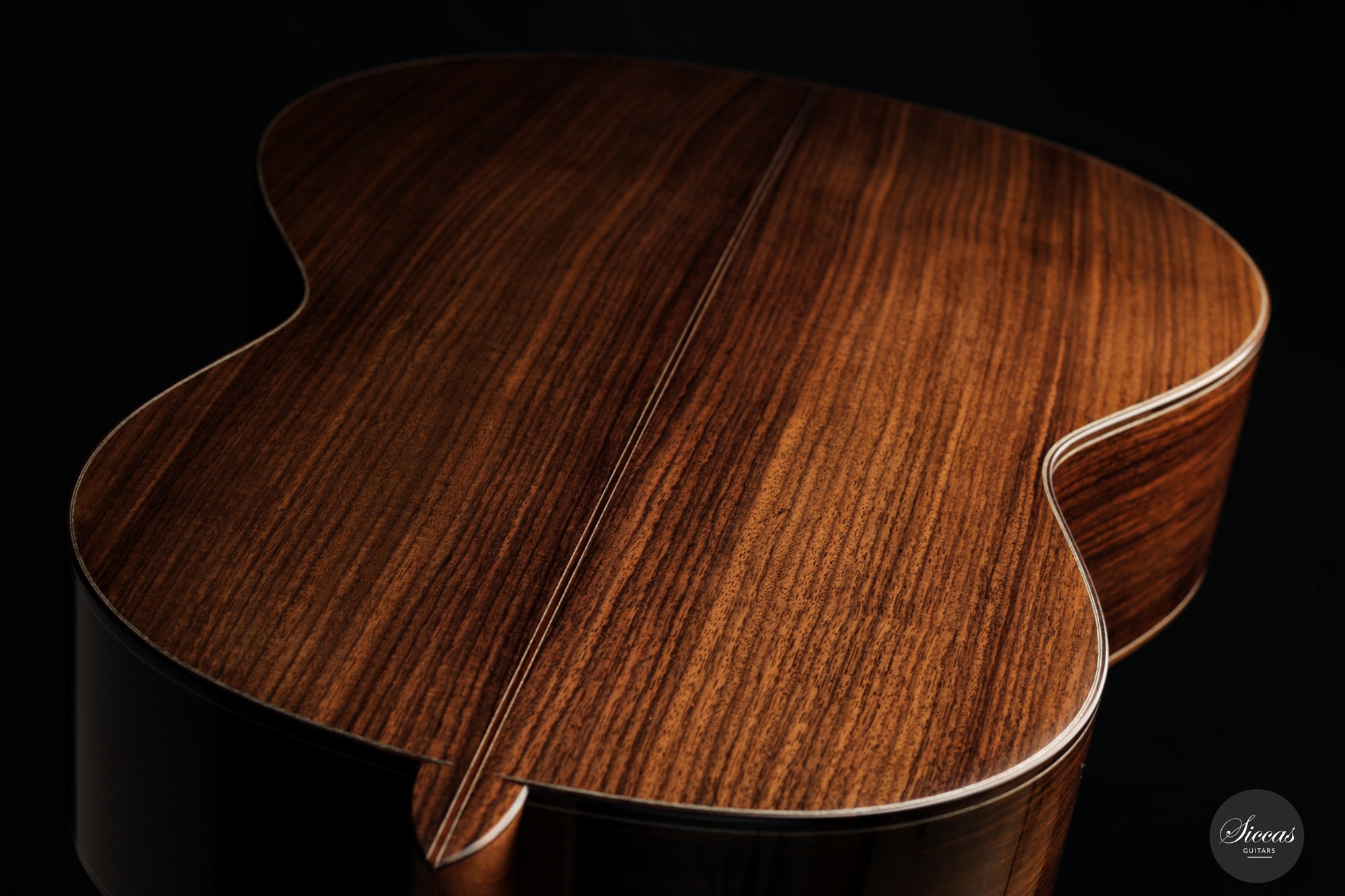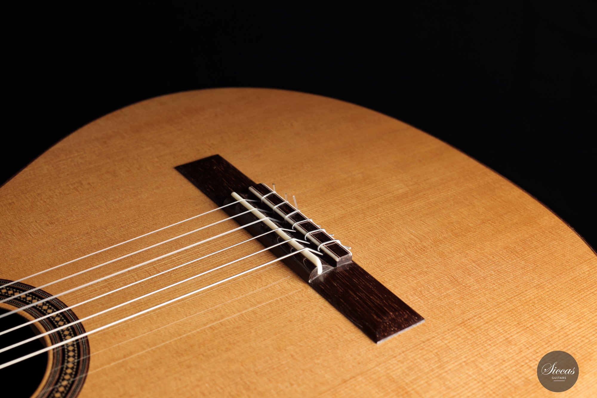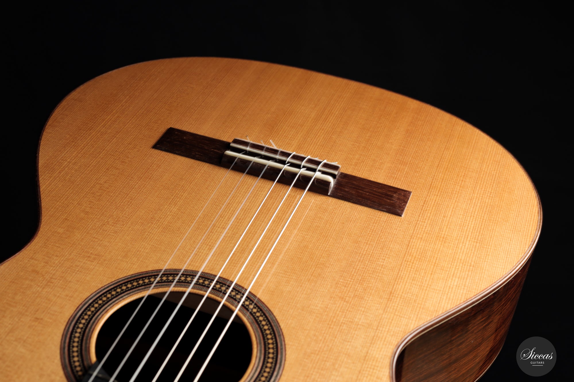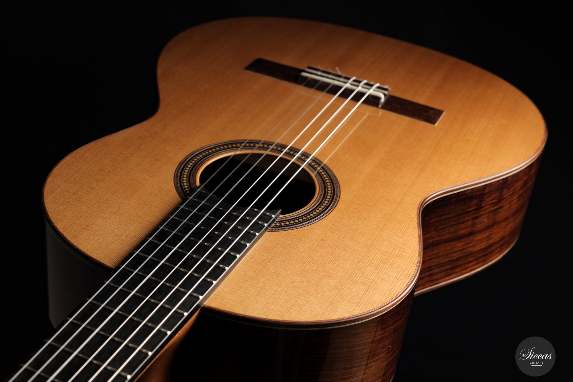 In the echelons of elite musical craftsmanship, the 2023 Francois Regis Leonard stands as a beacon of sonic excellence. With precision akin to a sculptor's finest touch, this masterpiece is carved from the gentle embrace of cedar, granting its soundboard a vibrant resonance. Paired with this is the opulent depth of Indian rosewood, enveloping the guitar's form, presenting a blend of audacity and tradition in one fell swoop.