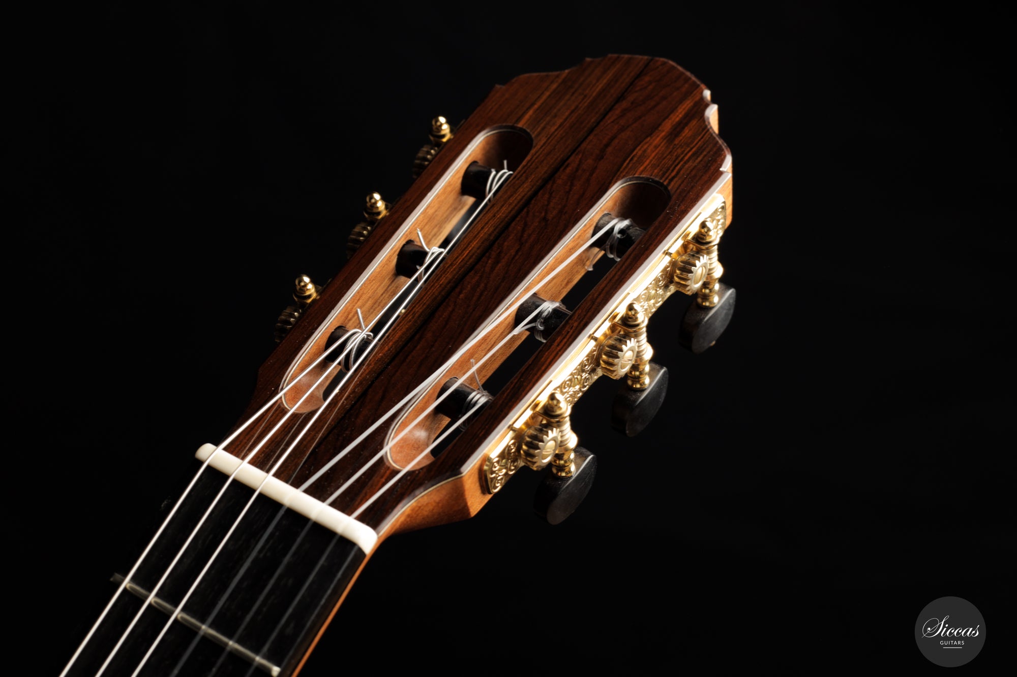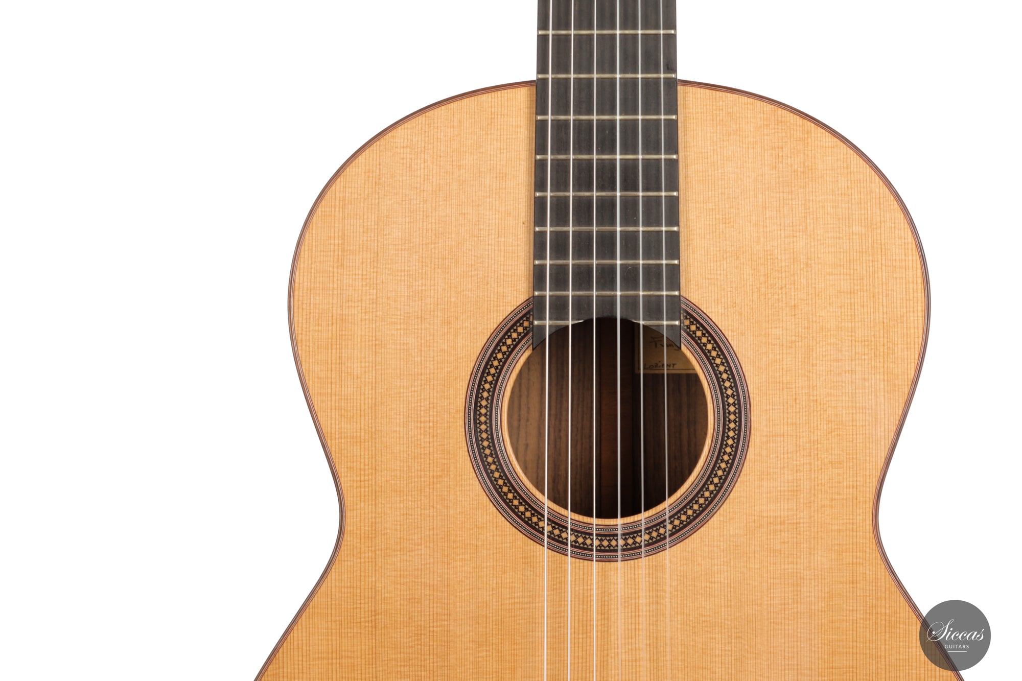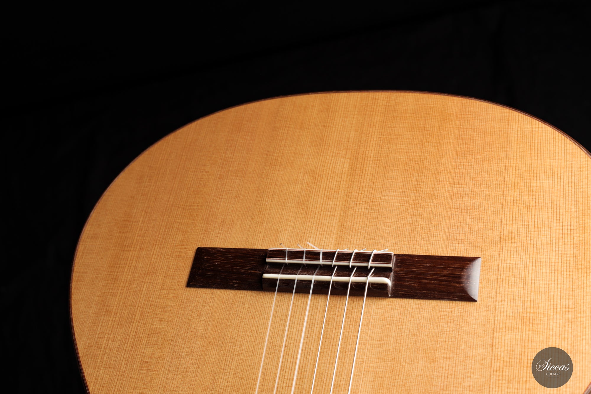 François Leonard has been building classical guitars for almost 20 years and lives and works in his workshop in Lorient, France. He had the opportunity to learn from many guitar builders in England and also worked in the Lakewood workshop in Germany. He received support from Dominique Field as an occasional mentor, so it is no surprise that the aesthetics and structural concept of his guitars are strongly influenced by French masters such as Daniel Friederich and Dominique Field.