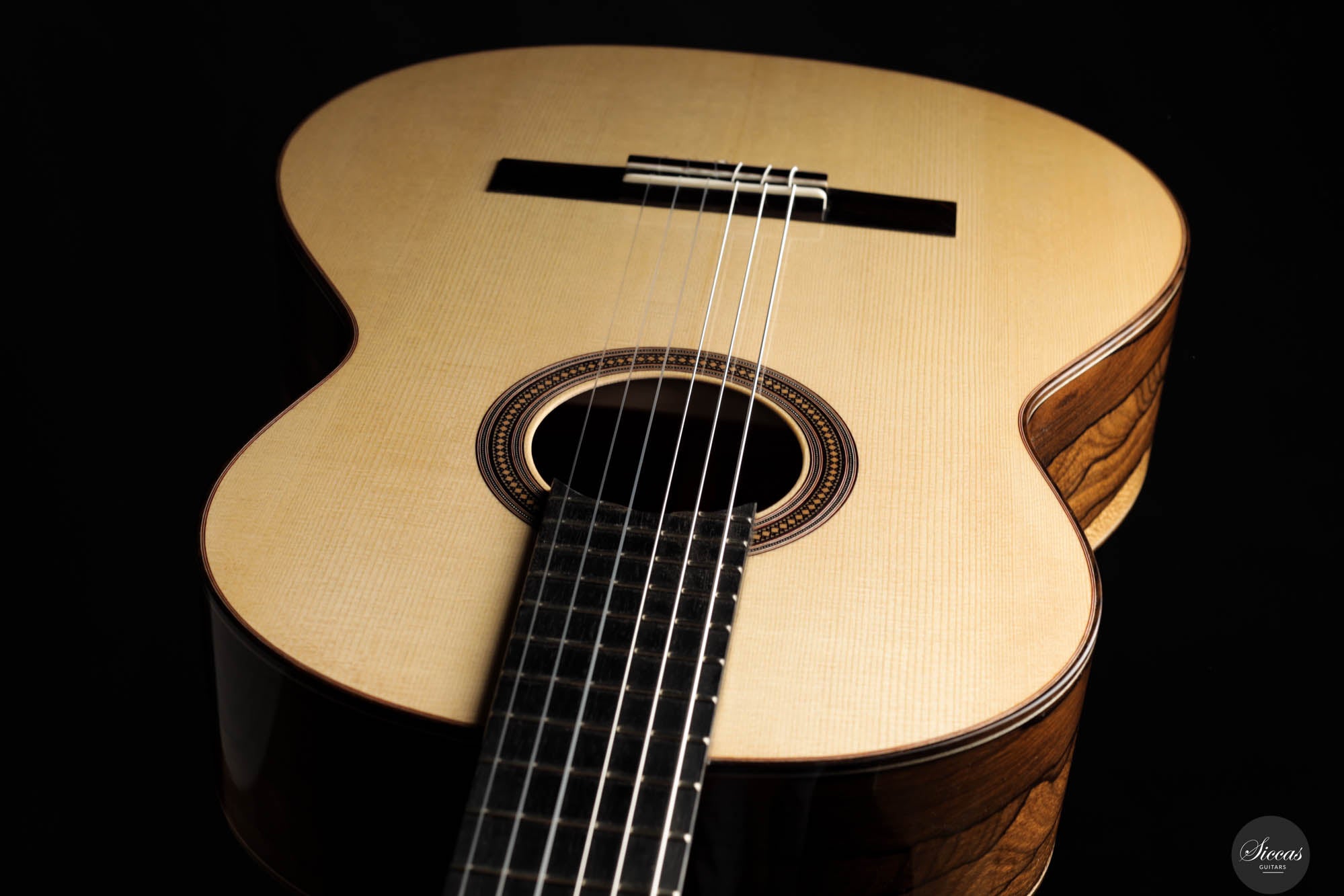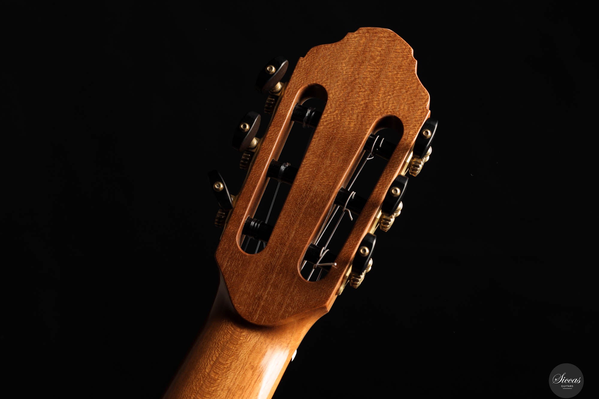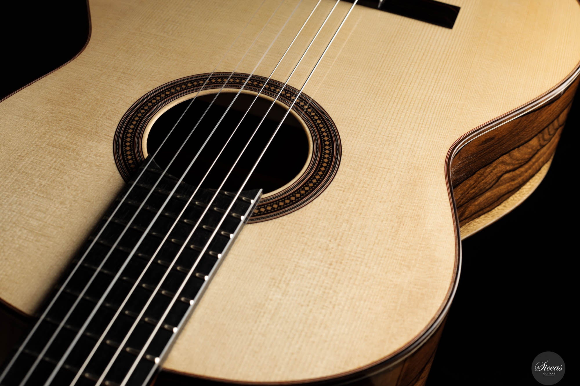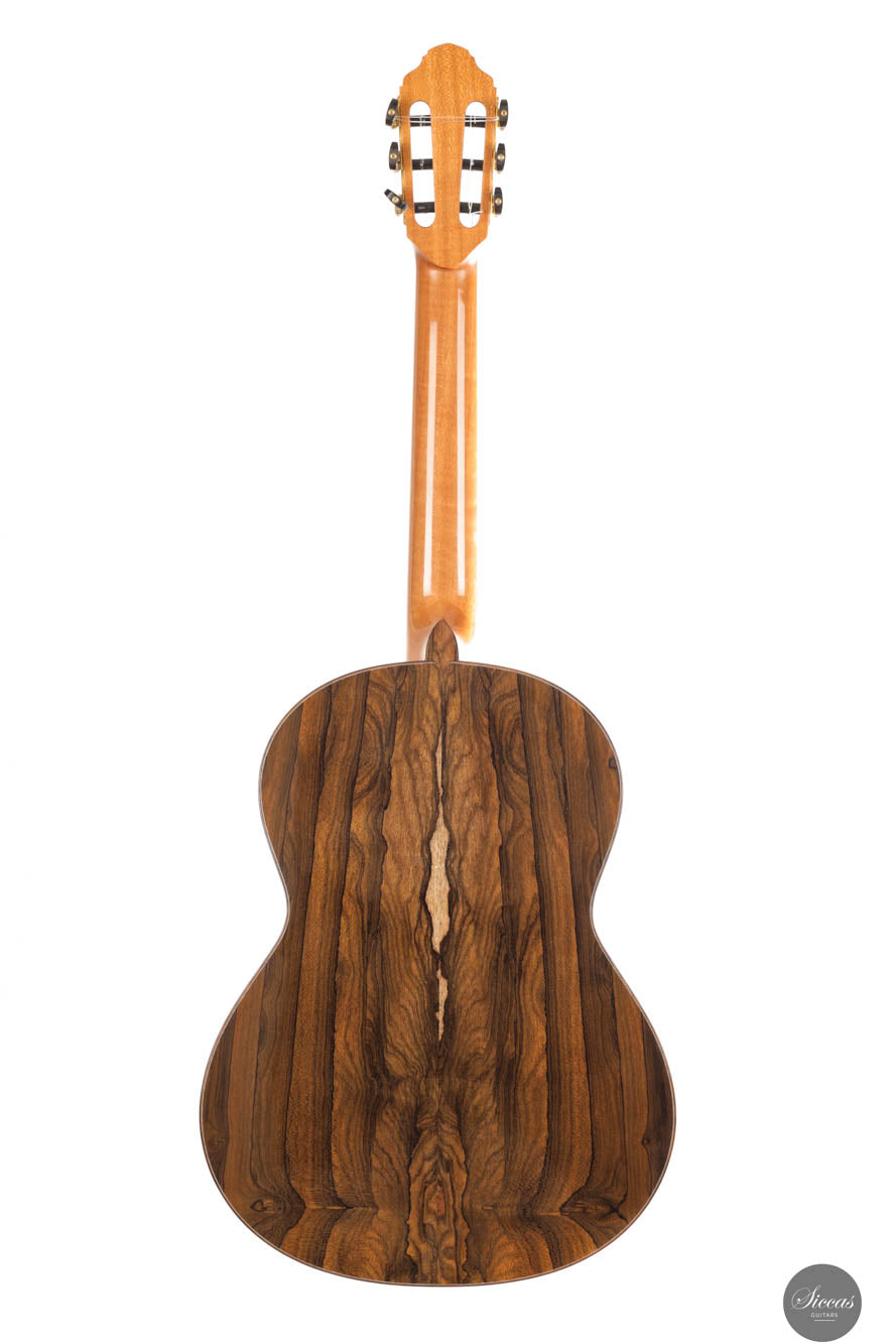 Die Gitarre Nr. 100 markiert einen bedeutenden Meilenstein in der Karriere von François Leonard und demonstriert sein meisterhaftes Können als Gitarrenbauer mit einem wahrhaft herausragenden Konzertinstrument. Dank ihrer Gitterkonstruktion liefert diese Gitarre ein außergewöhnliches Volumen, das die Anforderungen professioneller Musiker in jeder Aufführungssituation erfüllt. Ihre bemerkenswerte Bespielbarkeit ermöglicht eine mühelose Kontrolle, sodass Musiker ihre Kunst vollständig zum Ausdruck bringen können. Die Fichtendecke trägt zu einem wunderschönen Klang der Höhen und reichen Obertönen bei, während die klassische Wahl von indischem Palisander für Boden und Zargen Vielseitigkeit verleiht und sie zu einer idealen Konzertgitarre für eine Vielzahl von Musikstilen macht.