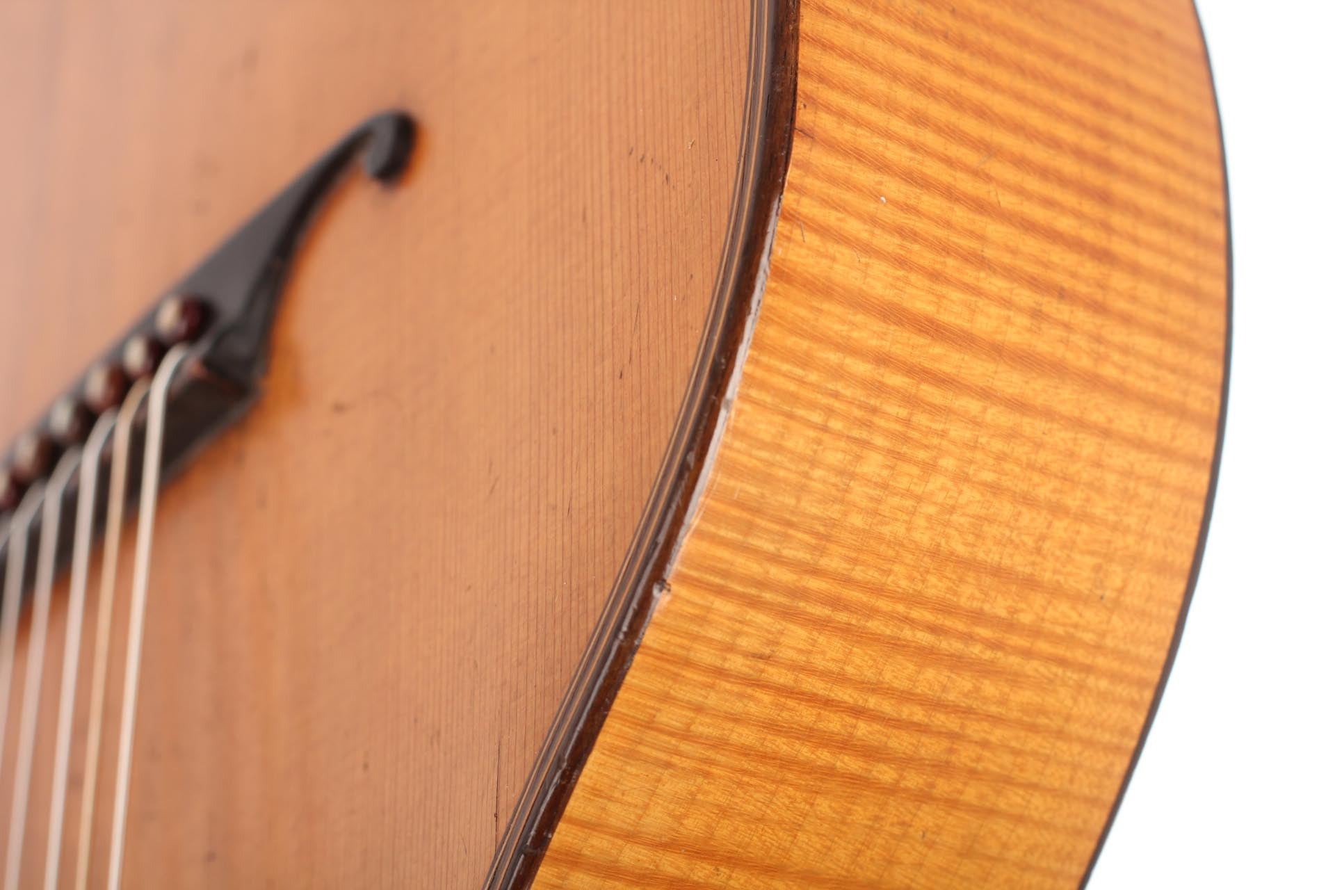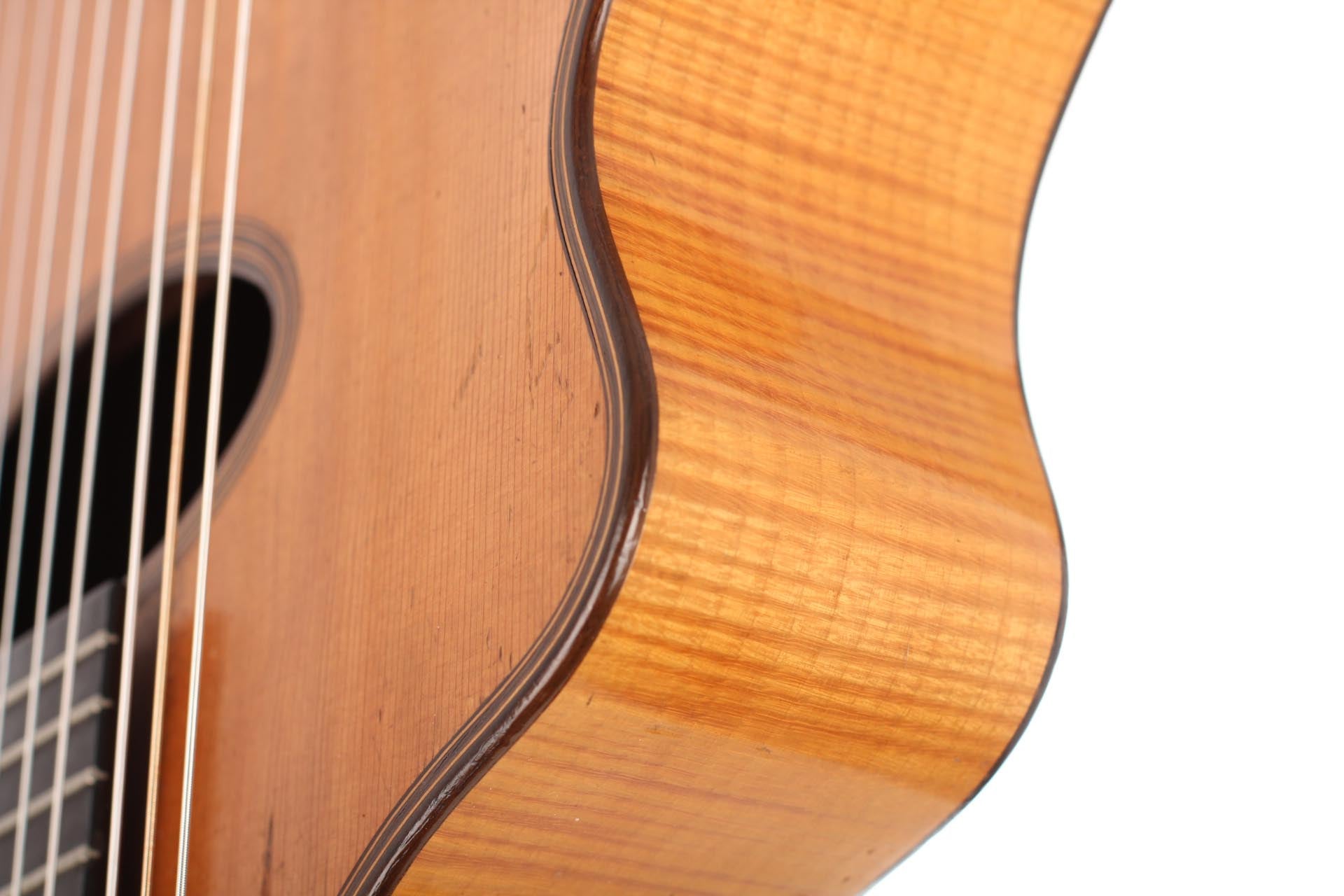Gitarrenbauer: Andrea TacchiBaujahr: 1994Decke: CedarBoden und Zargen: Indian rosewoodDeckenoberfläche: NitrocelluloseKorpusoberfläche: NitrocelluloseLuftresonanz: F sharp / GGewicht (g): 1630Mechaniken: FusteroZustand: Excellent
