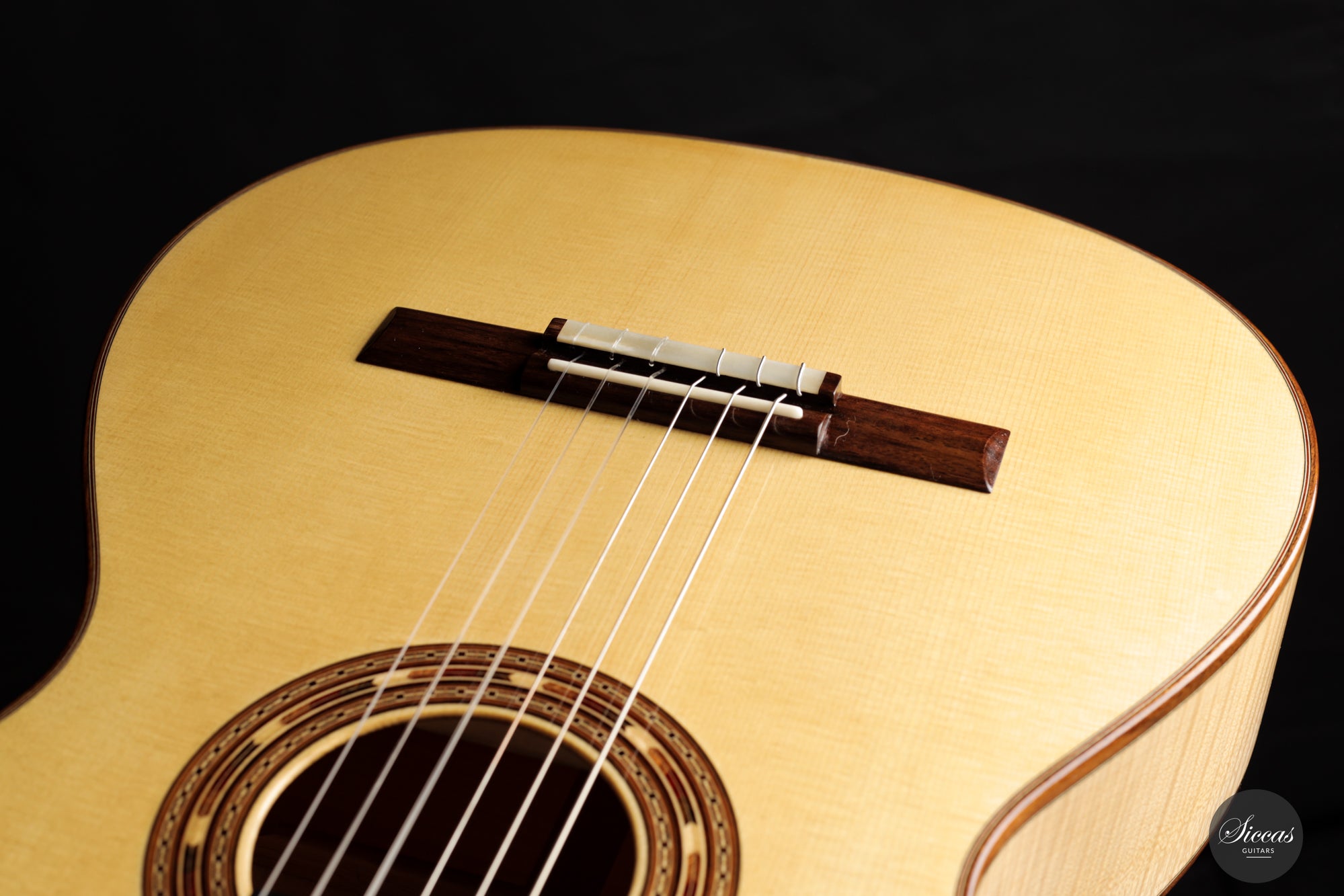 This beautiful instrument not only stands as a testament to exquisite craftsmanship, but also placed 4th in the prestigious Antonio Marin Montero guitar building competition that same year. A testament to the skill and vision of its creator.