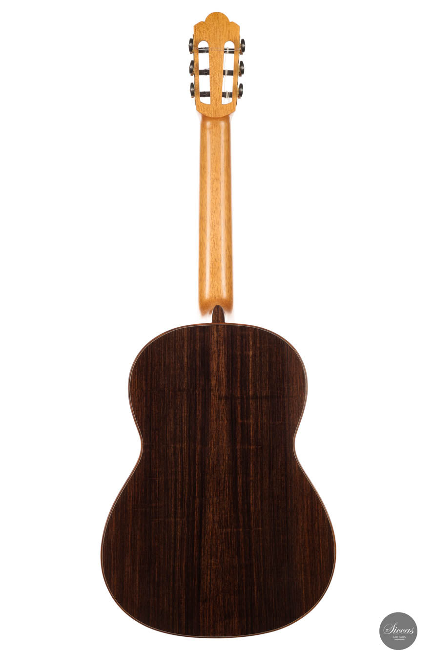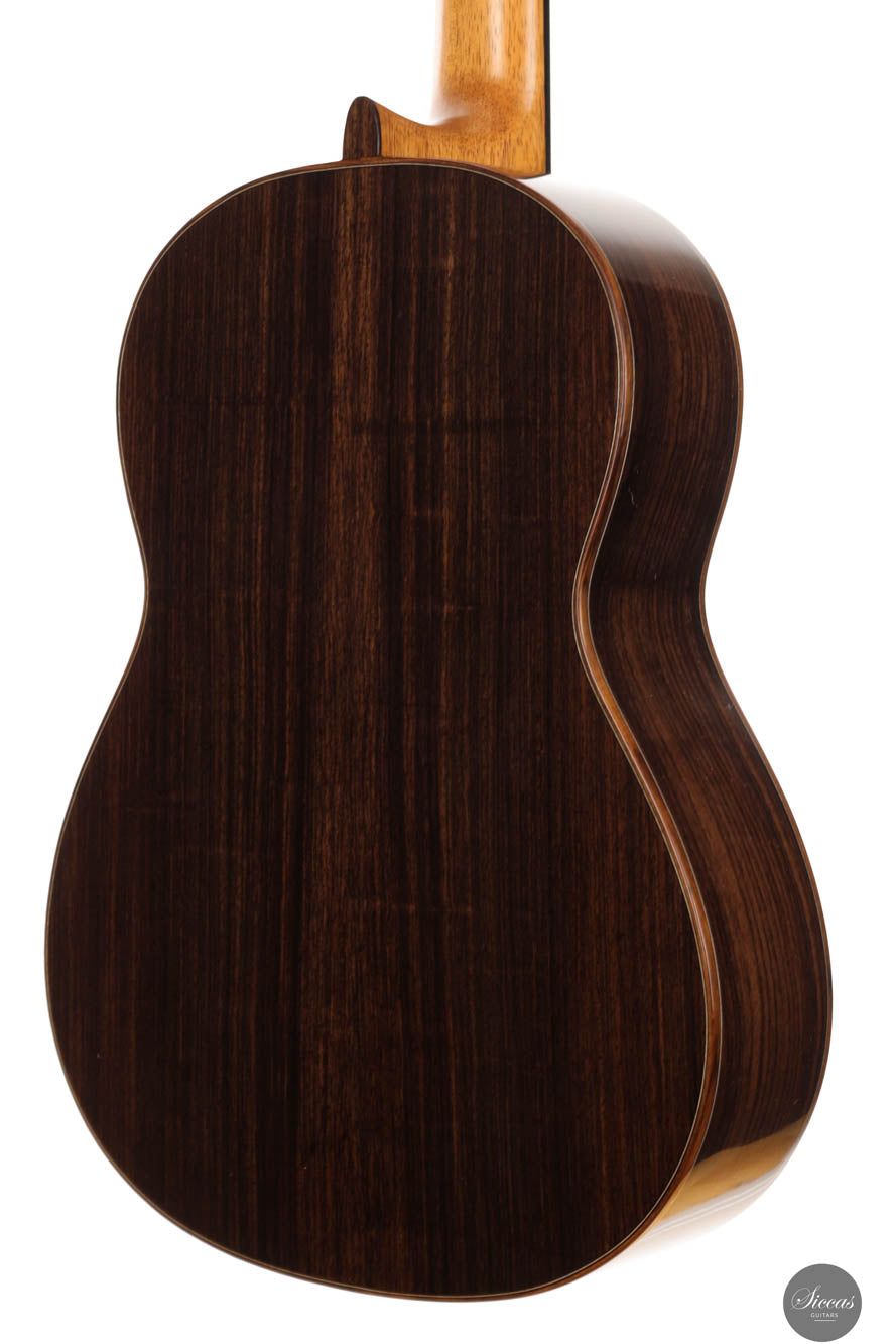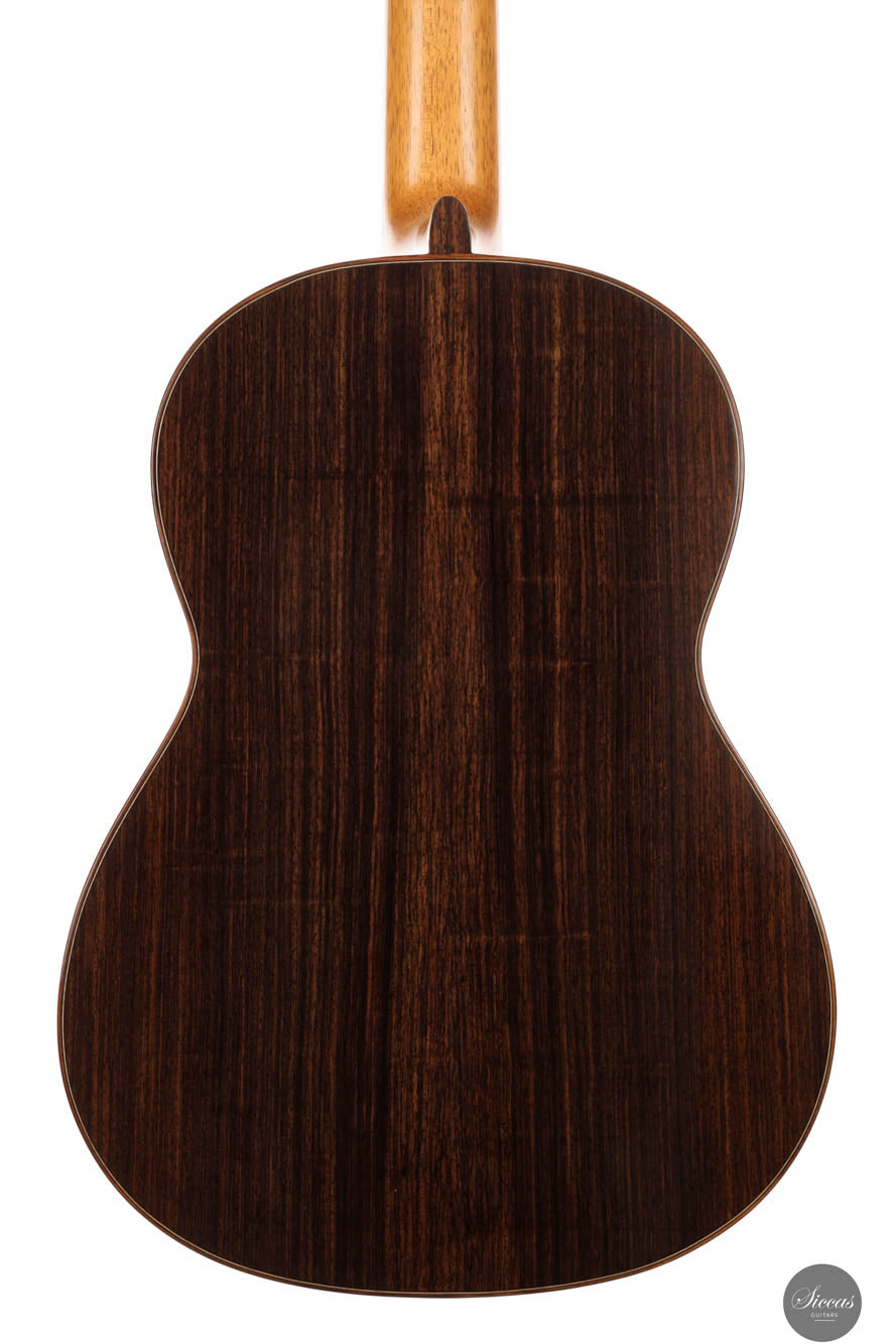 This 2024 model, numbered 08, is made with a gorgeous spruce soundboard that depicts a tight uniform grain, which is elegantly complemented by the mellowly- Indian rosewood back and sides. A generous binding gives way to a beautiful purfling that replicates the accents on the rosette. Augmenting its myriads of features is the ingeniously crafted, slightly-elevated fretboard, catering to the nuanced needs of guitarists; ensuring effortless playability.