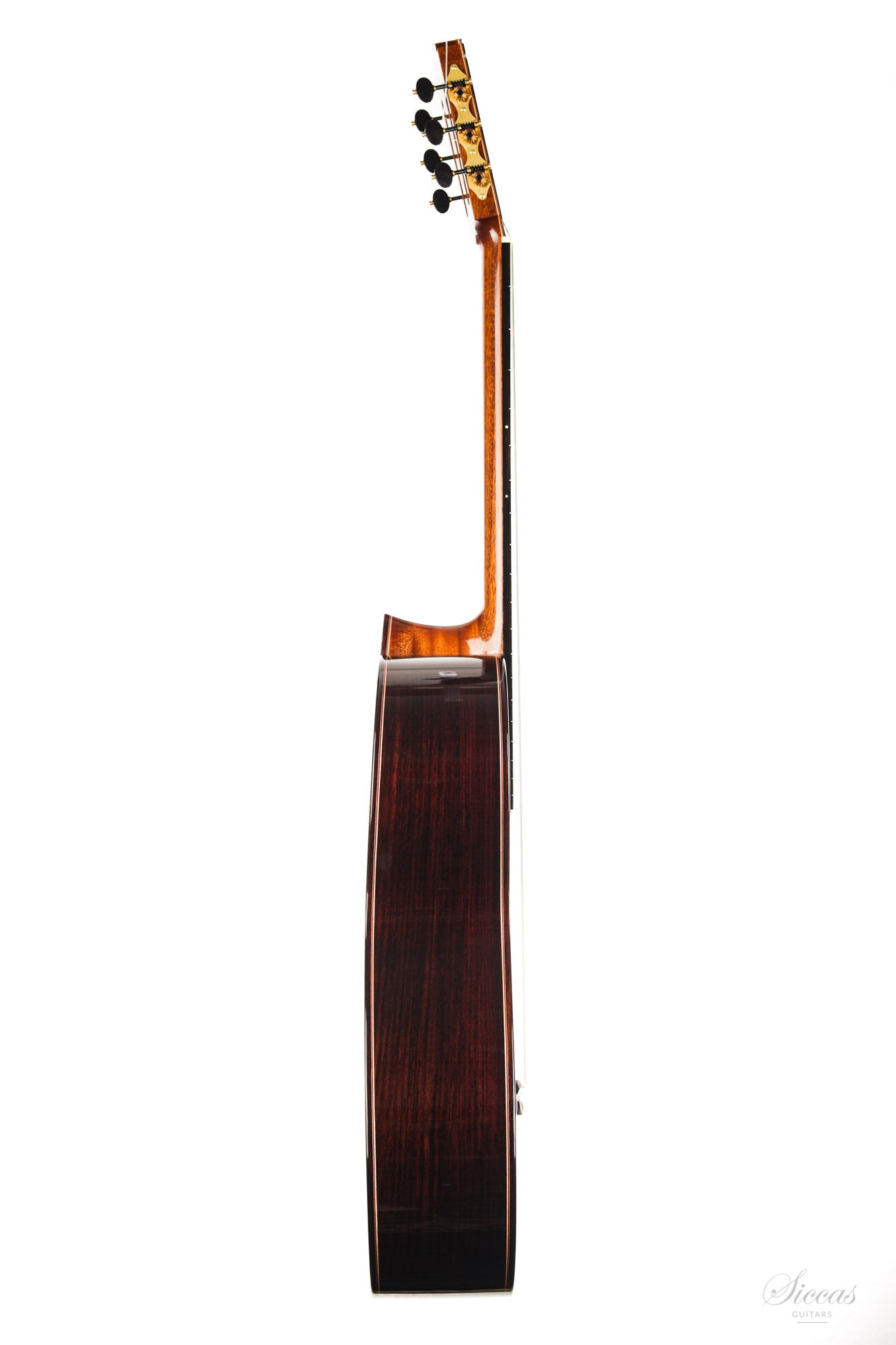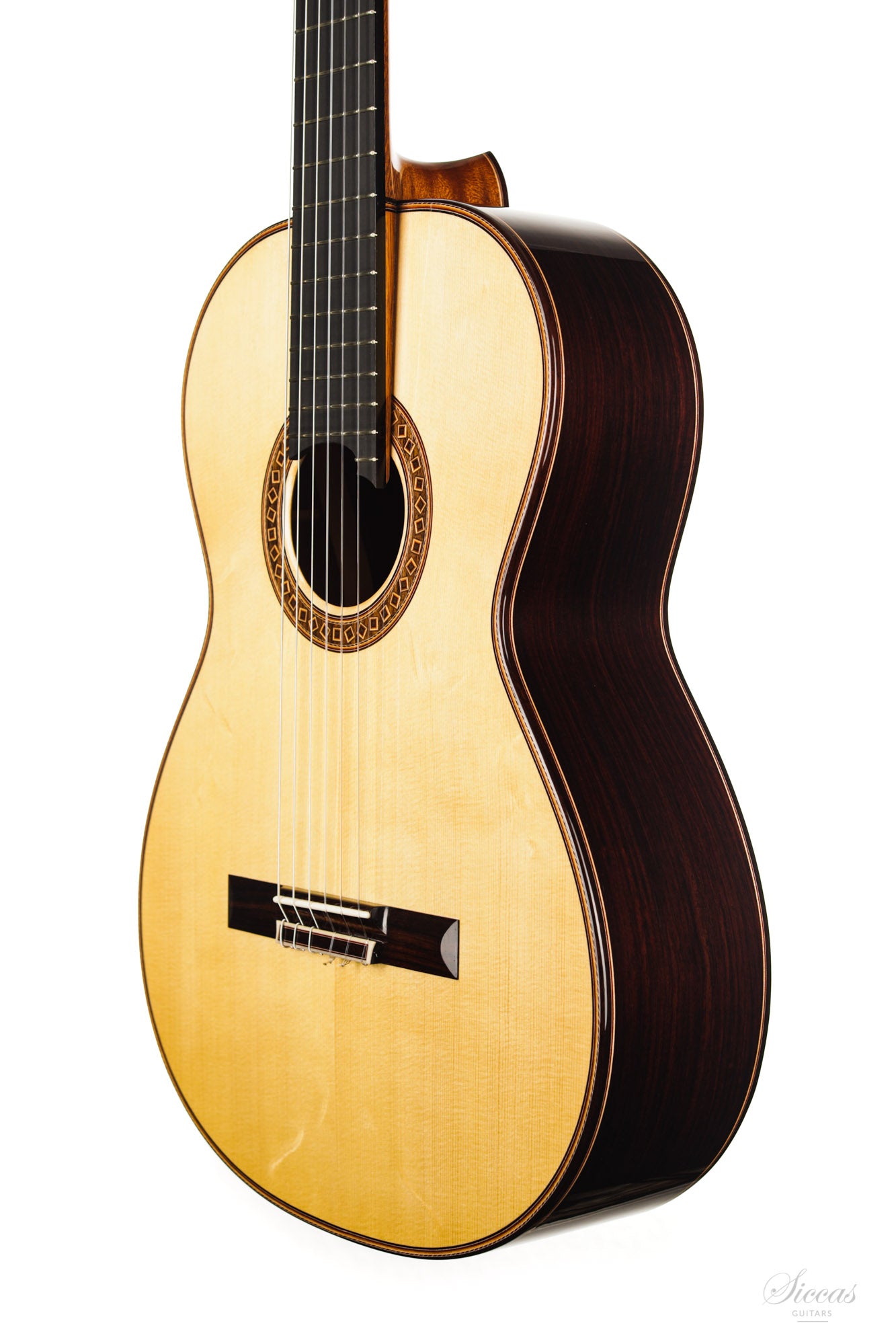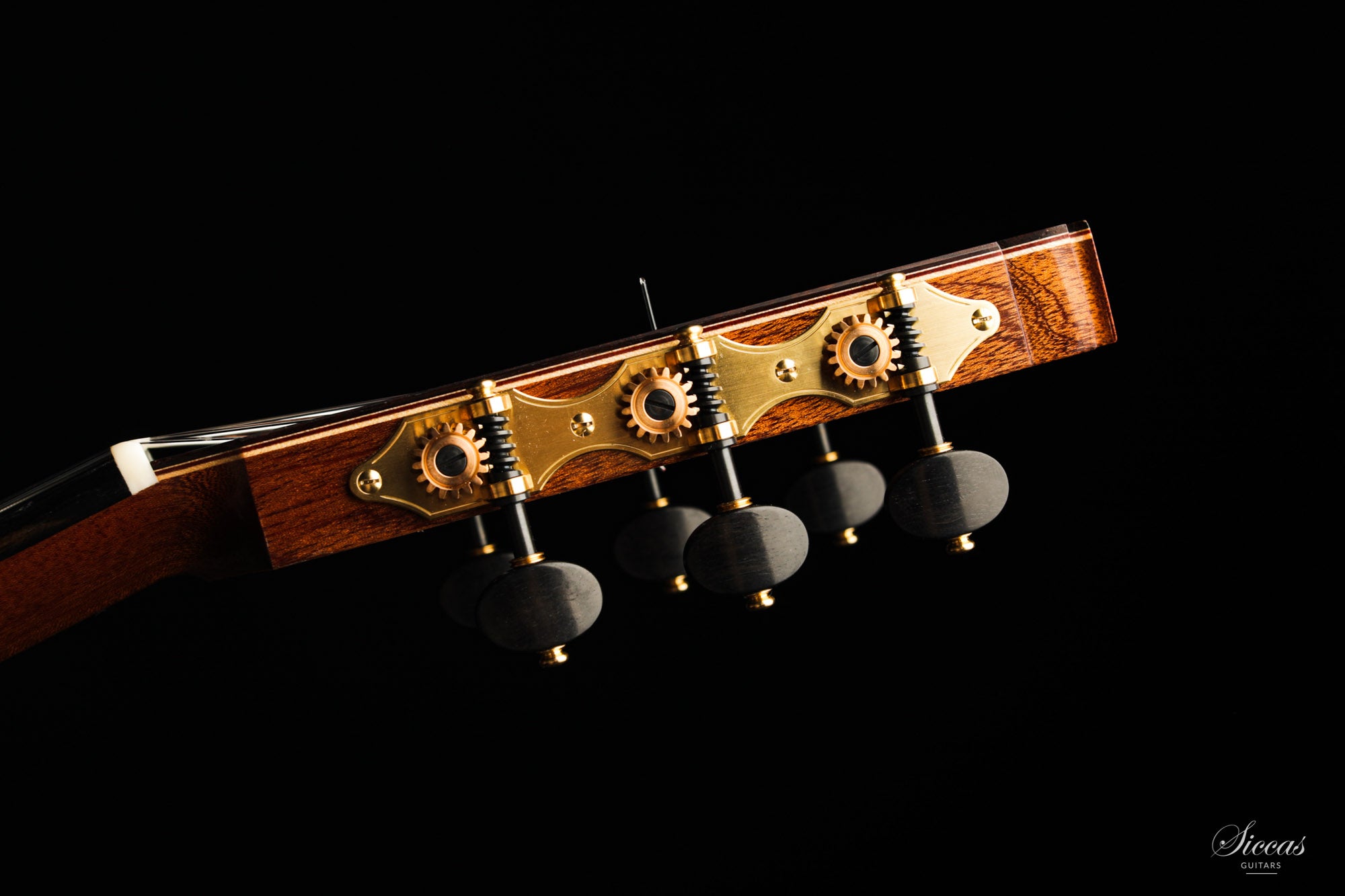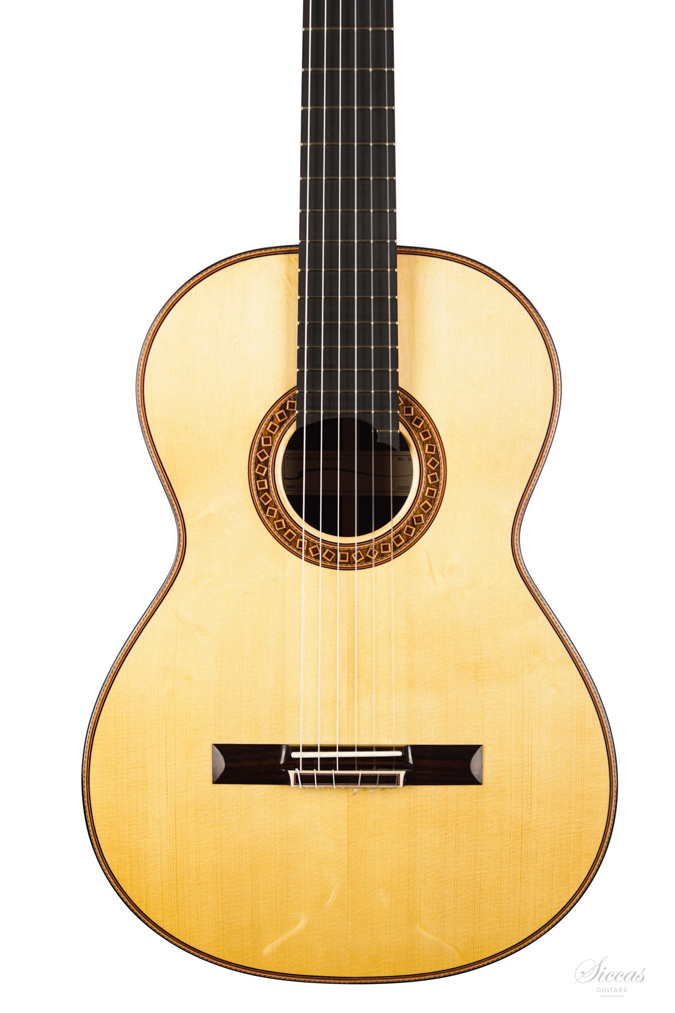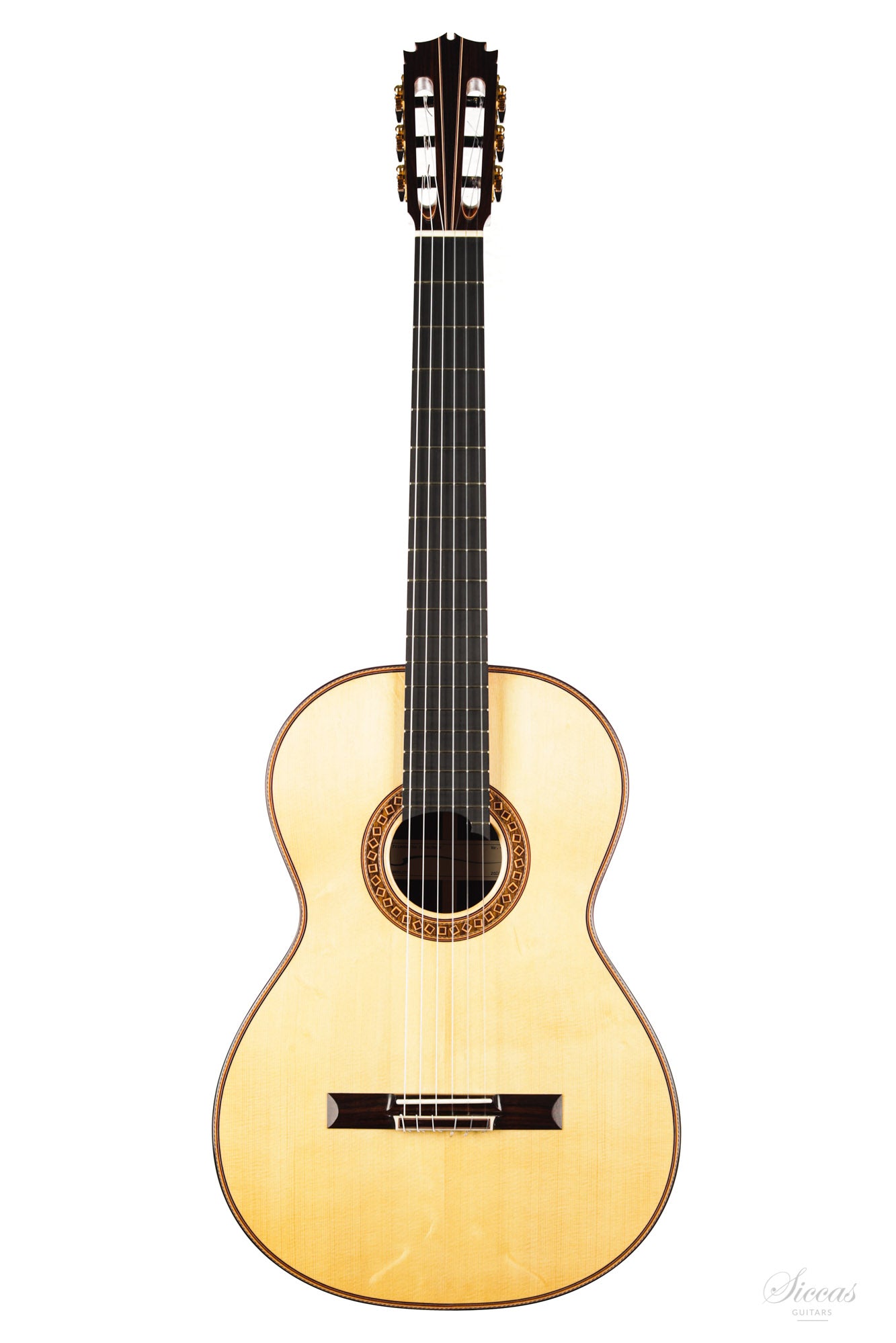 Diese Gitarre ist mit Schelllack veredelt und hat Scheller Mechaniken von höchster Qualität. Sie ist ein absolutes Juwel und auf jeden Fall einen Versuch wert, wenn Sie auf der Suche nach einer äußerst singenden traditionellen Gitarre mit großem Volumen und schöner Handwerkskunst sind.