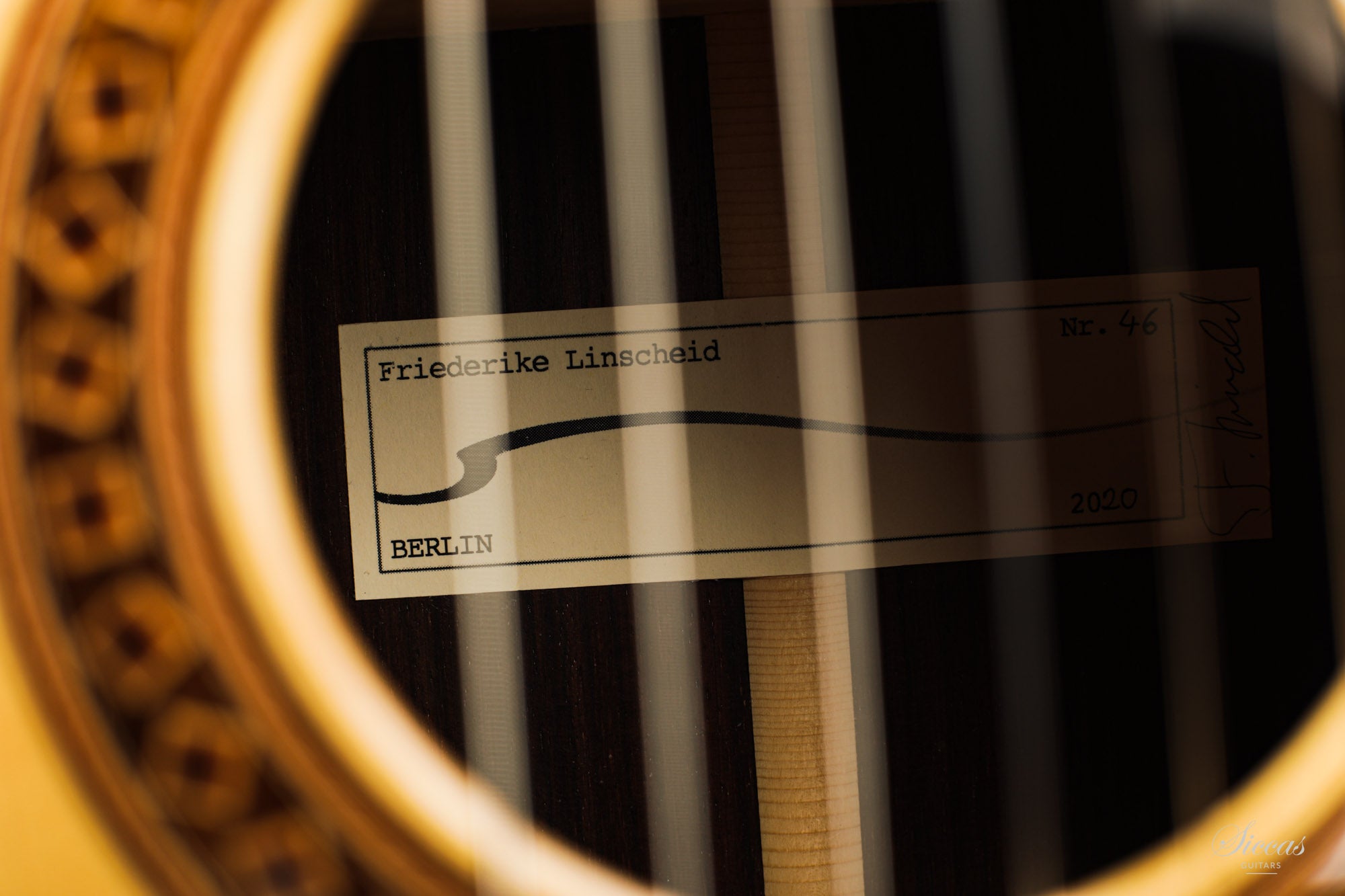 Inspiriert durch ihre Liebe zur Musik und zu kreativen, handwerklichen Tätigkeiten absolvierte Friederike Linscheid ihre Ausbildung zur Gitarrenbauerin an der Instrumentenbauschule in Mittenwald/Deutschland. Seitdem arbeitet sie als Gitarrenbauerin in Berlin (Berlin Luthiers). Der Gitarrenbau verbindet viele ihrer Interessen: Musik, Kunst, Design und wissenschaftliches Arbeiten gleichermaßen. Die präzise handwerkliche Verarbeitung und die sorgfältig ausgewählten Hölzer sind für den Klang und das Aussehen ihrer Gitarren von zentraler Bedeutung.
