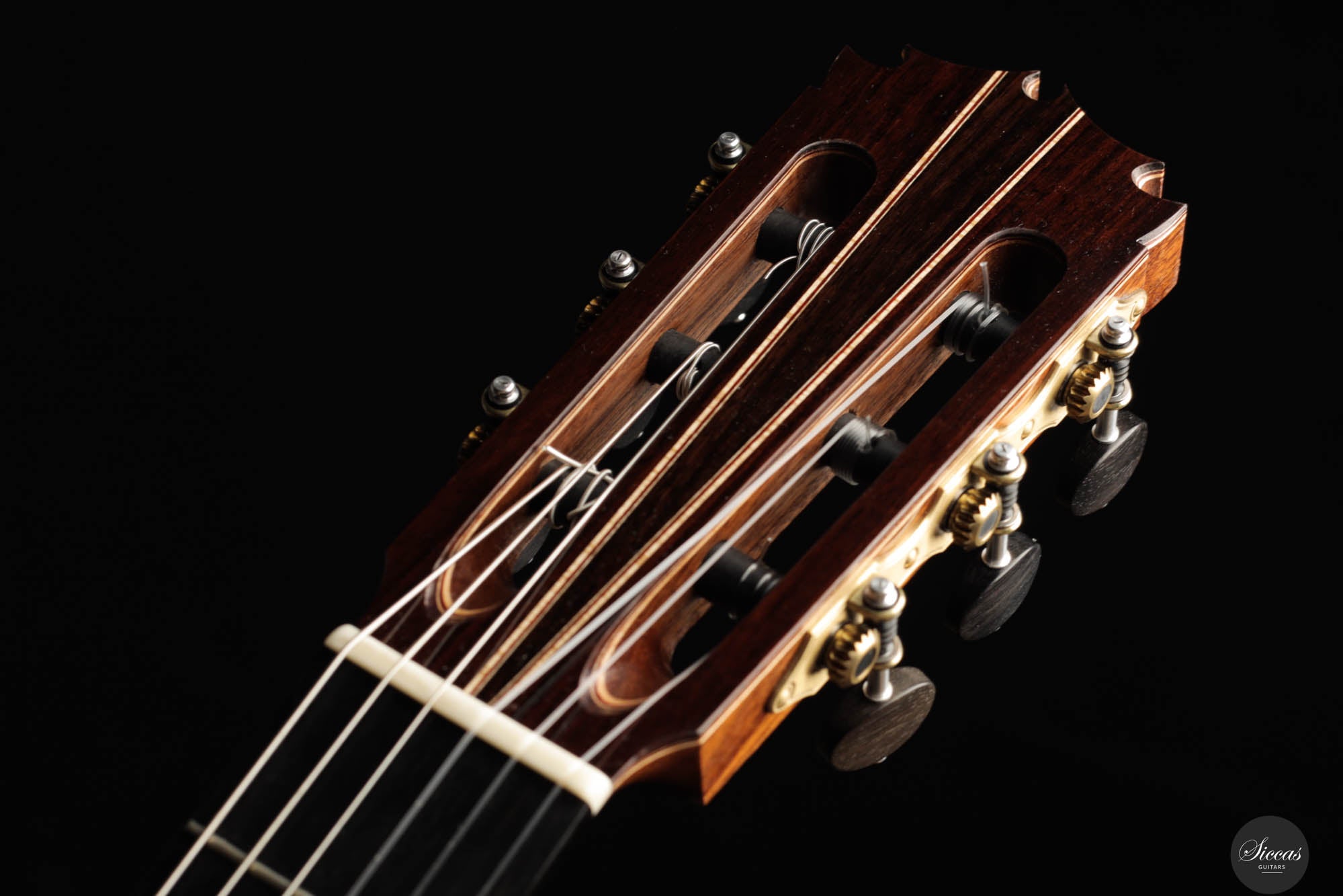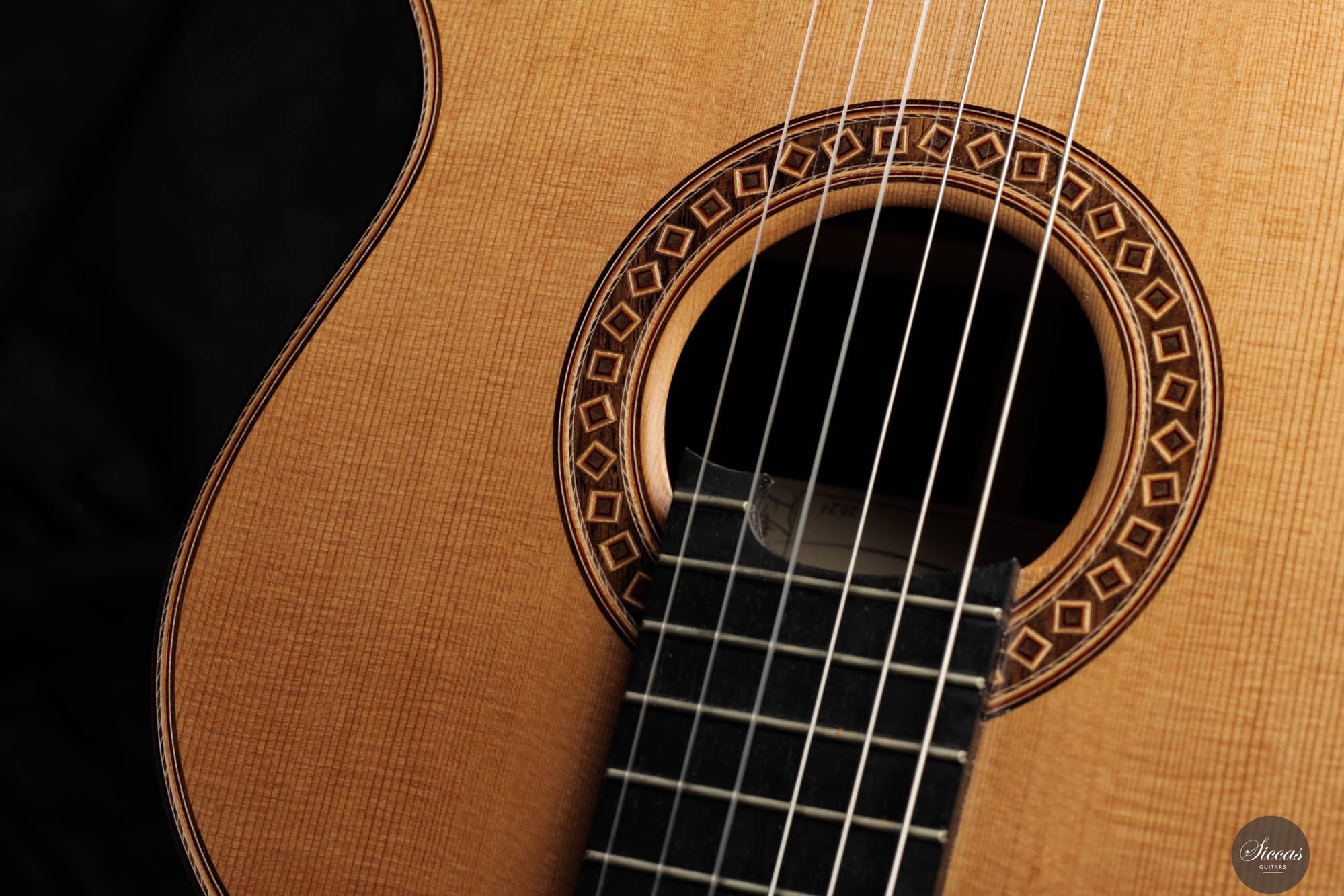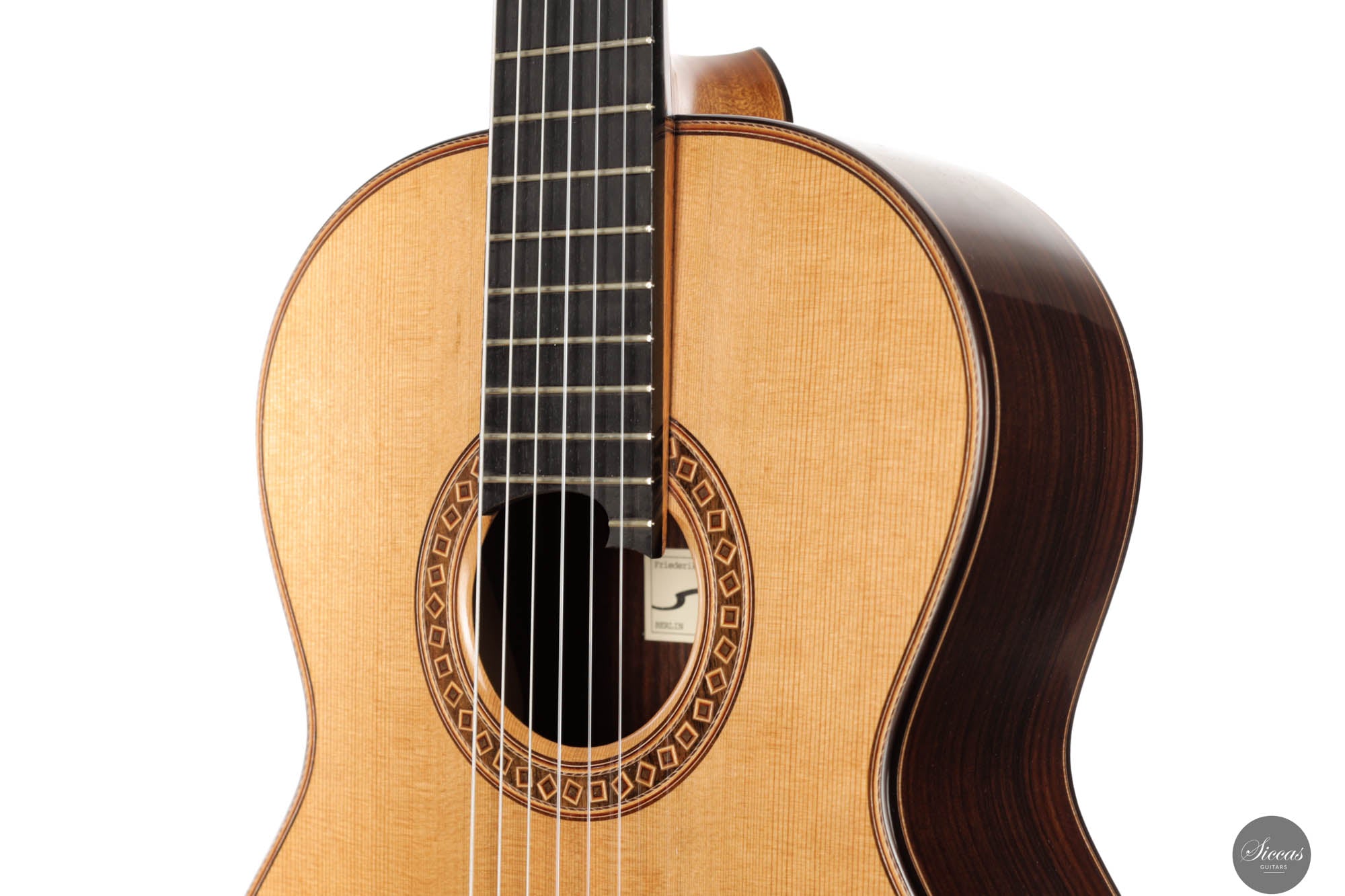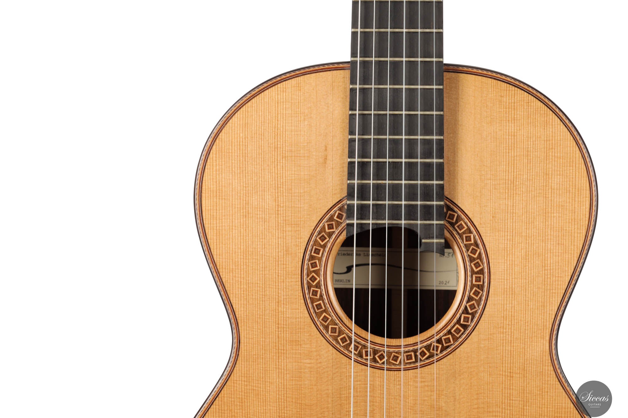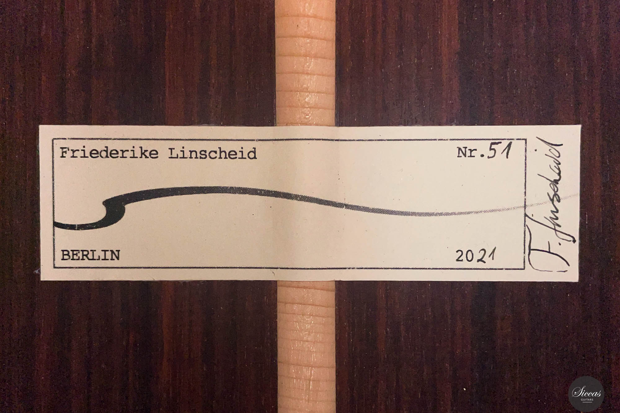 Über ihre klangliche Exzellenz hinaus zeichnet sich diese Gitarre durch hervorragende Spielbarkeit und Vielseitigkeit aus, Eigenschaften, die sie zur perfekten Wahl für den ambitionierten Gitarristen machen, der eine breite Palette an musikalischen Stilen und Techniken erkunden möchte. Friederike Linscheids Aufmerksamkeit für Details sowohl im ästhetischen als auch im akustischen Design der Gitarre Nummer 51 hat zu einem Instrument geführt, das ebenso erfreulich zu spielen wie zu hören ist. Ihre Fähigkeit, eine Vielzahl musikalischer Ausdrücke mit Klarheit und Tiefe zu artikulieren, stellt sicher, dass sie als ideale Wahl für Performer und Enthusiasten gleichermaßen hervorsticht und eine nahtlose Verbindung zwischen traditionellem Handwerk und moderner Spielbarkeit bietet.