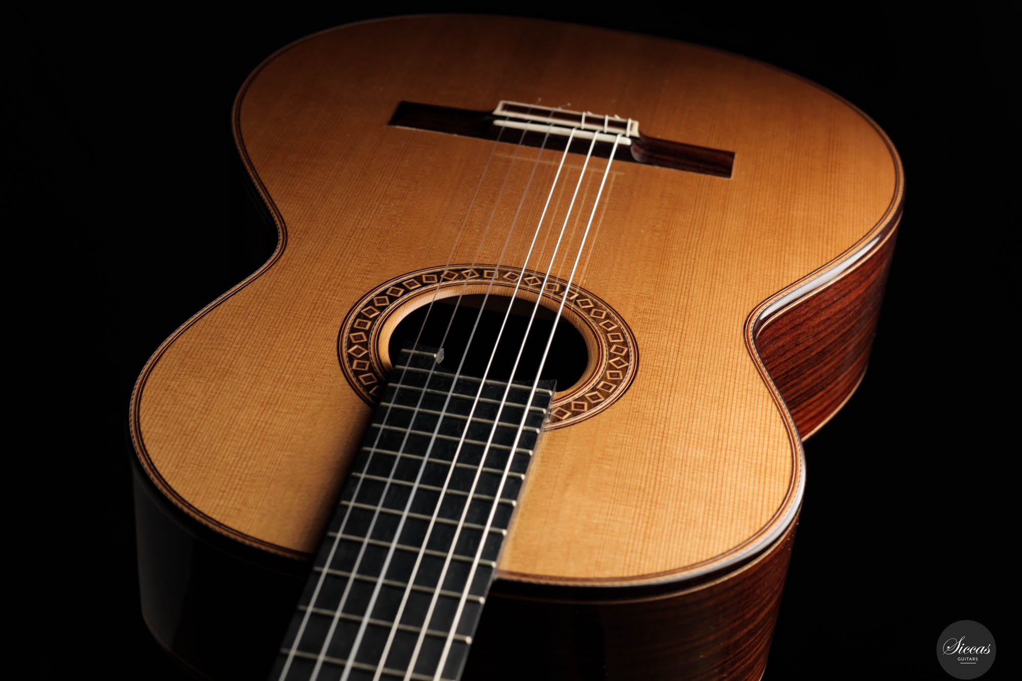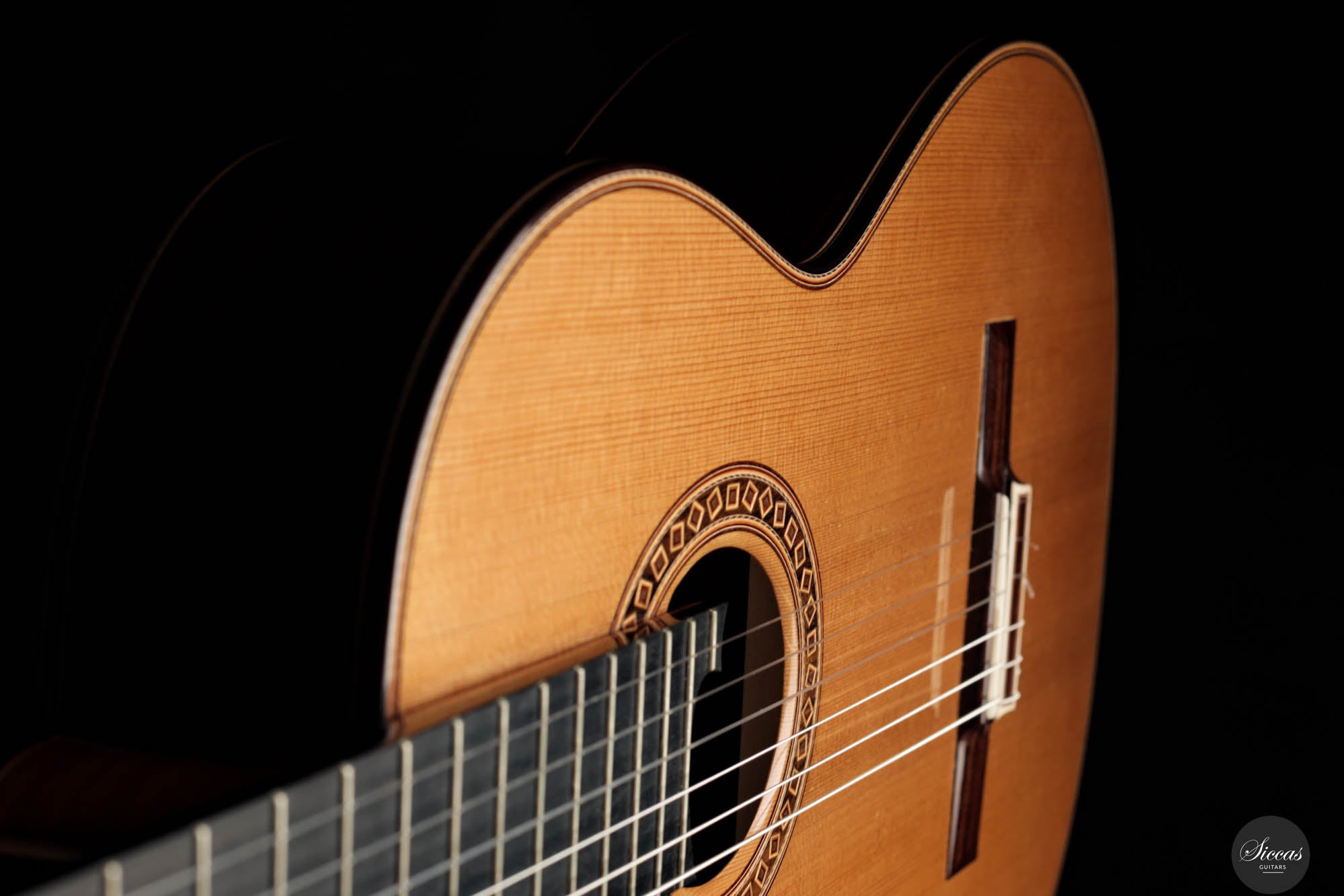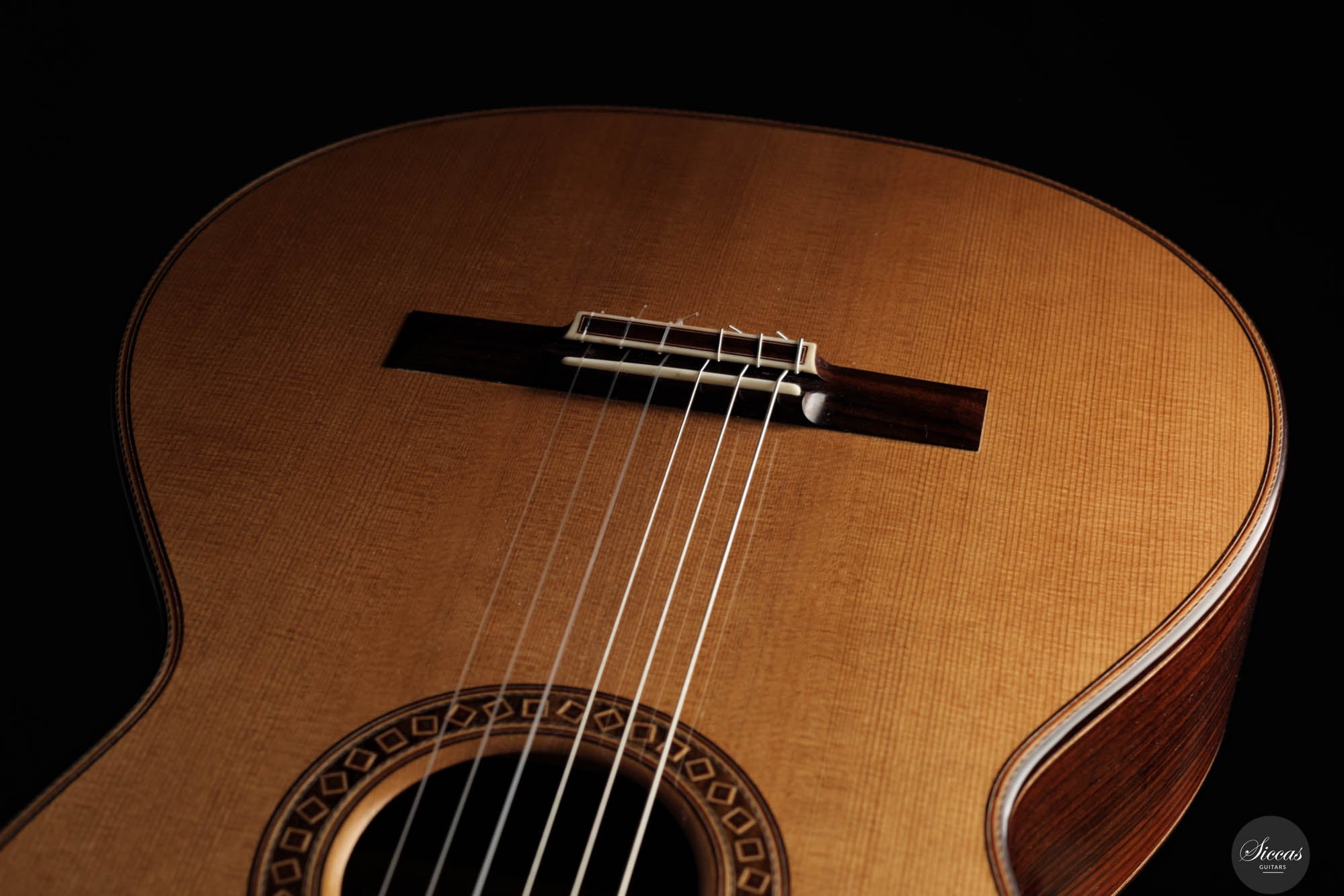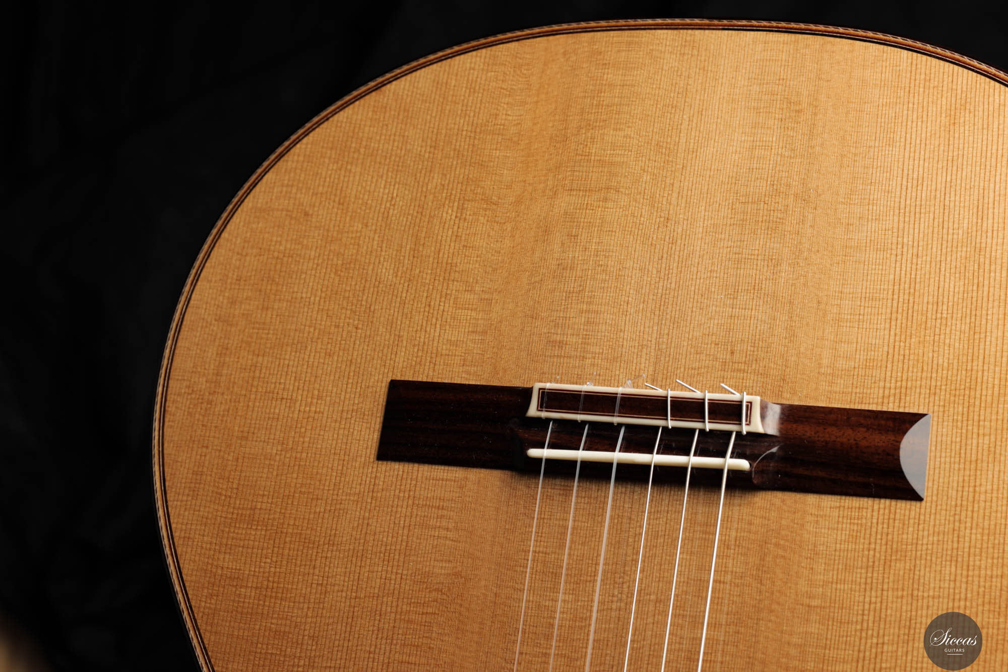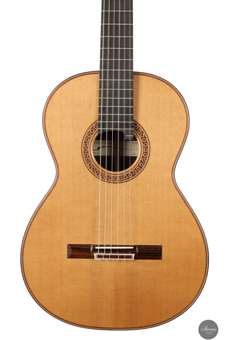 Die klassische Gitarre mit ihren weichen Nylonsaiten und ihrem charakteristischen Timbre ist zum Symbol der Kammermusik, der spanischen Tradition und des Konzertrepertoires geworden. Ihre moderne Form prägte Antonio de Torres im 19. Jahrhundert, indem er den Standard für Korpus, Fächerbeleistung und die 65-Zentimeter-Mensur setzte, die bis heute verwendet werden. Instrumente dieser Kategorie eröffnen eine reiche Palette von den feinen romantischen Miniaturen Tárregas bis zu den majestätischen Konzerten Rodrigos. Hier finden Sie Gitarren, die historische Kontinuität bewahren und zugleich zu neuen Interpretationen anregen.
