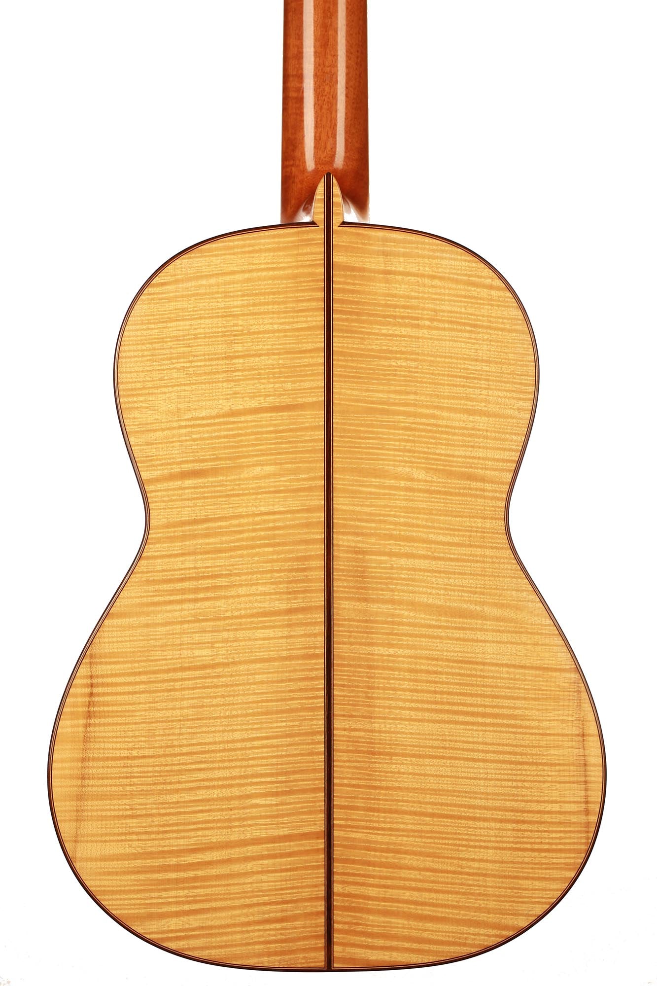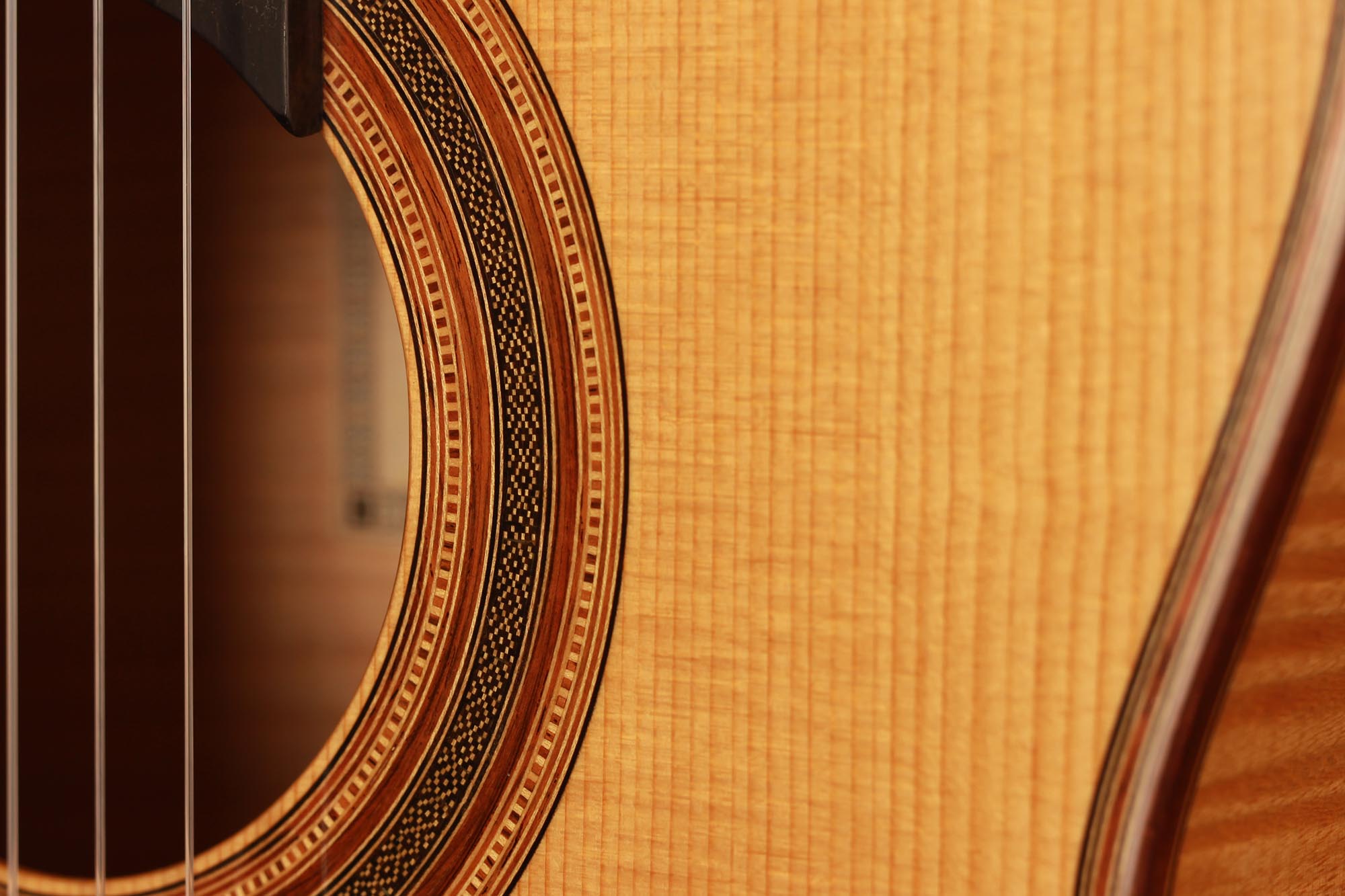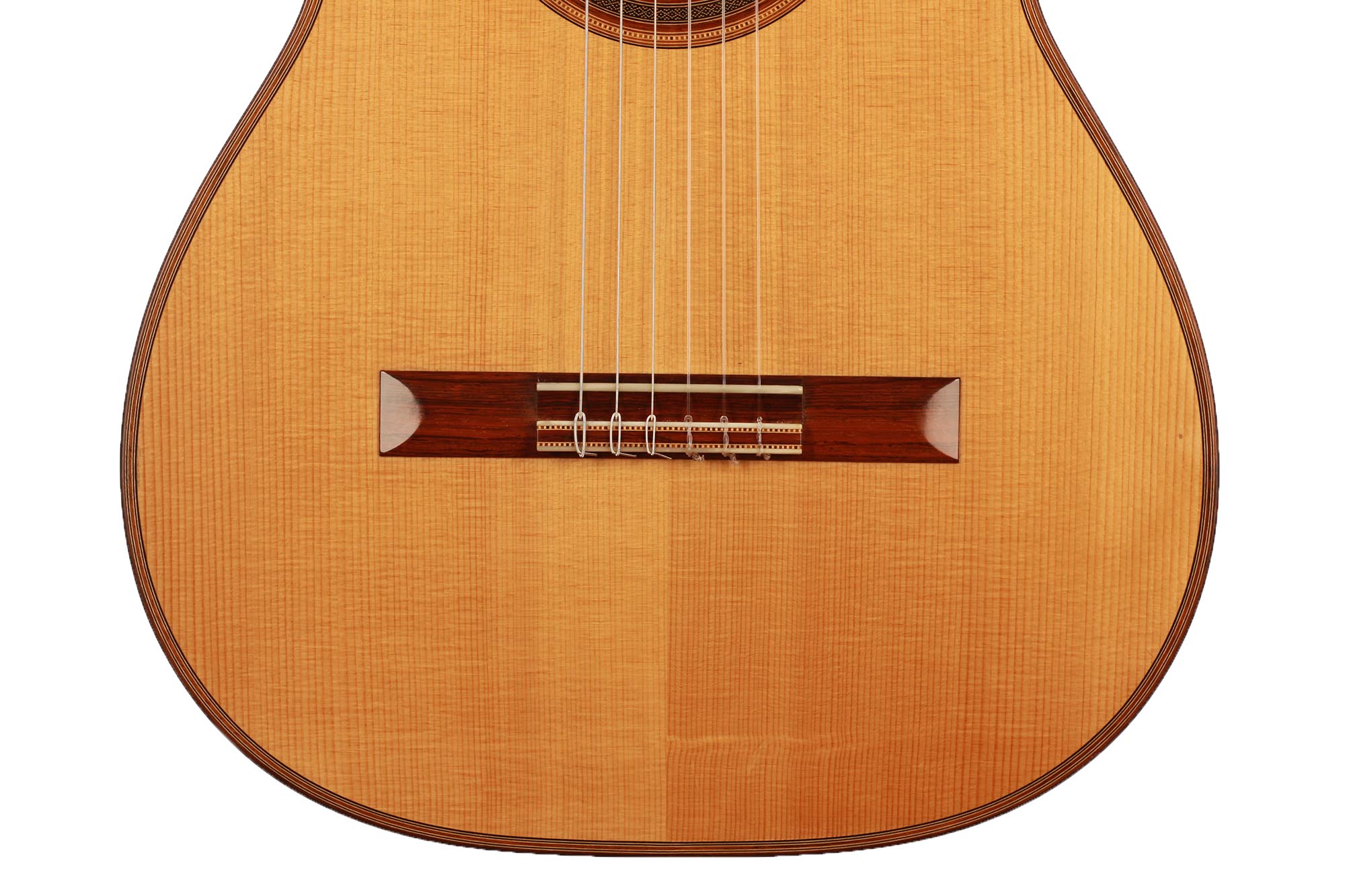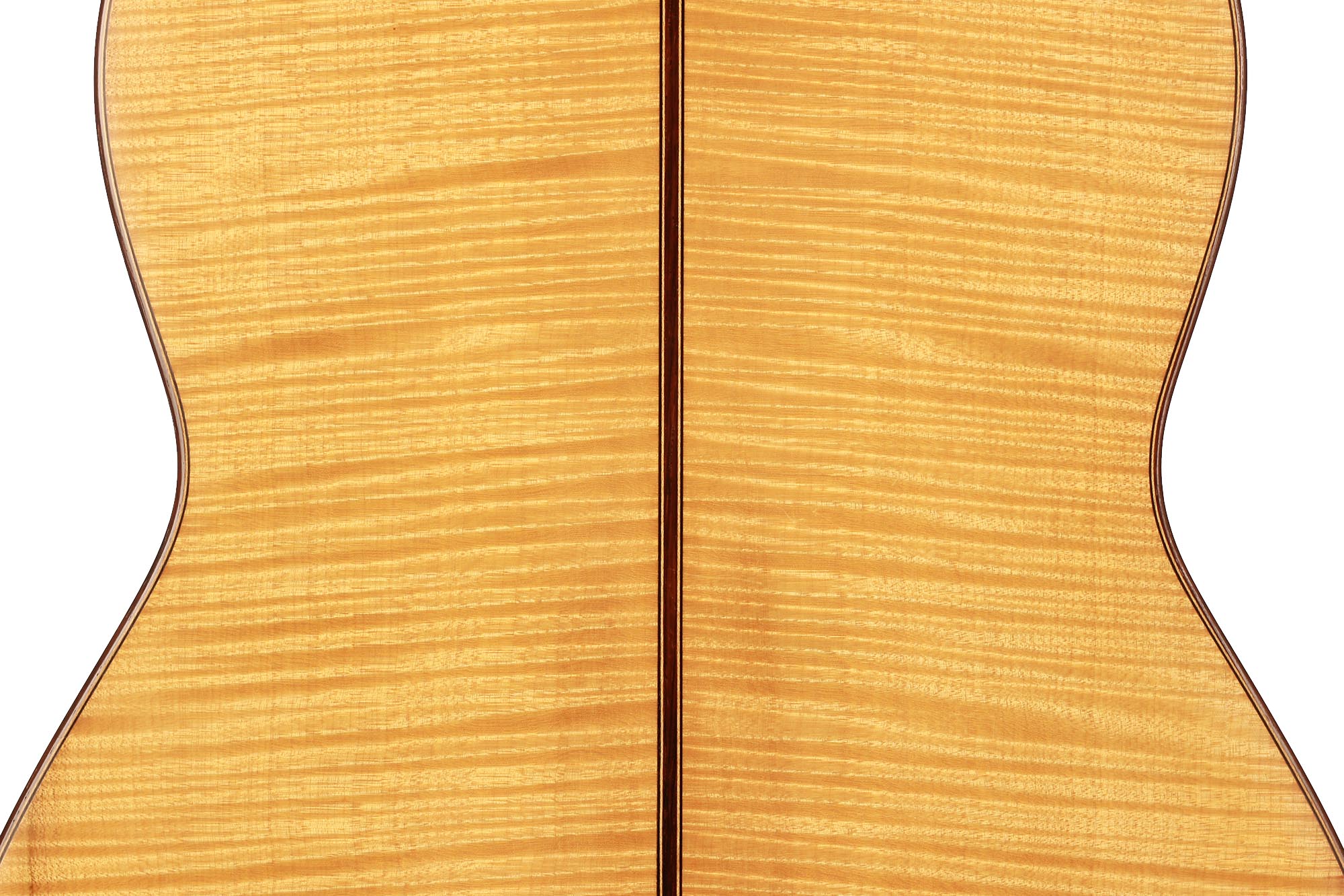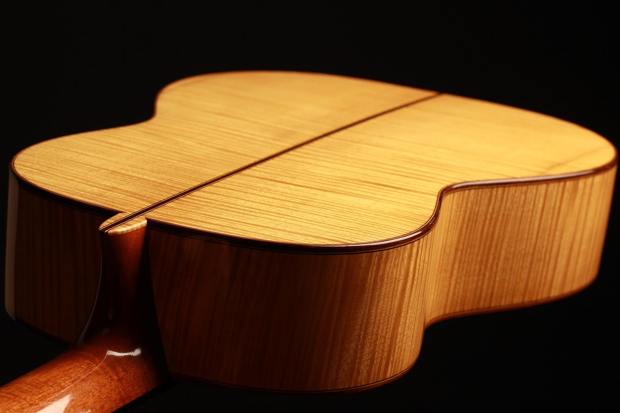 Dieses Instrument von 2003 ist ein wunderbares Beispiel, für eine in sich bestens ausgewogene Gitarre. Die Auswahl des Riegel-Ahorns für Boden und Zargen ist hervorragend und harmoniert wunderbar mit der Fichtendecke. Mit seinen 1347 Gramm ist das Instrument schön leicht und hat eine sehr gute und direkte Ansprache. Der Klang ist harmonisch und farbenreich und entwickelt sich sowohl bei leisem als auch bei lautem Spiel optimal. Die Gitarre ist in einem sehr guten Zustand und hat lediglich Spielspuren auf der Decke und dem Boden.